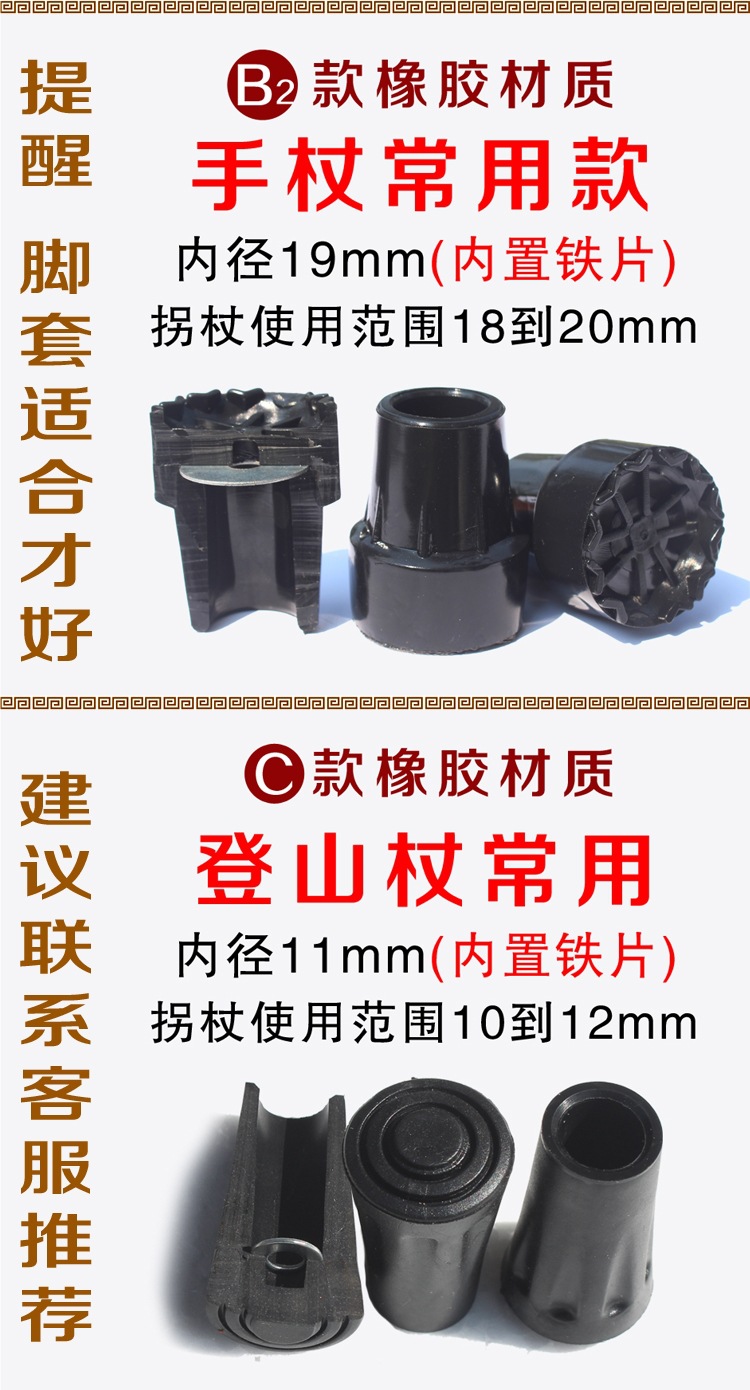 노인용 싱글 및 더블 지팡이, 미끄럼 방지 발 패드, 나무 지팡이, 4개의 발 커버, 고무 헤드, 등산용 지팡이, 무음 베이스