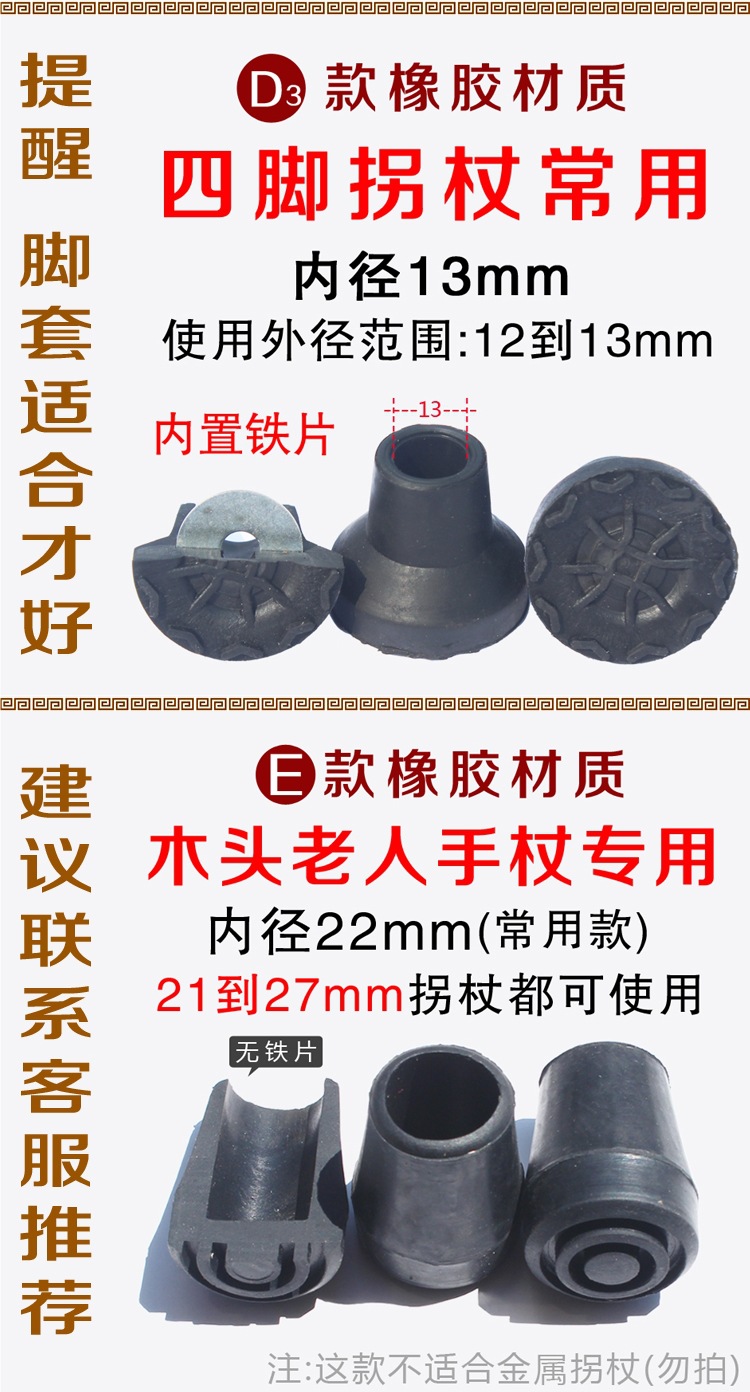 노인용 싱글 및 더블 지팡이, 미끄럼 방지 발 패드, 나무 지팡이, 4개의 발 커버, 고무 헤드, 등산용 지팡이, 무음 베이스스토어 가기