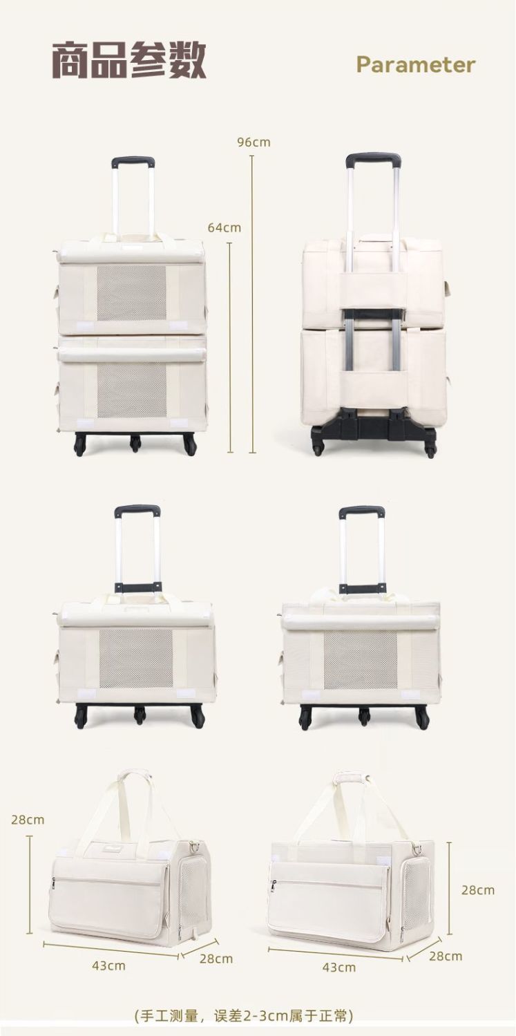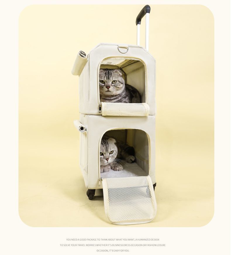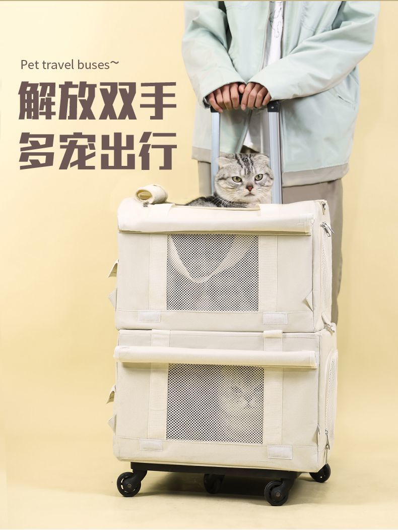 애완동물 트롤리 케이스, 이중 여행가방, 휴대용 고양이 2마리, 다묘 대용량 통기성 개 배낭스토어 가기