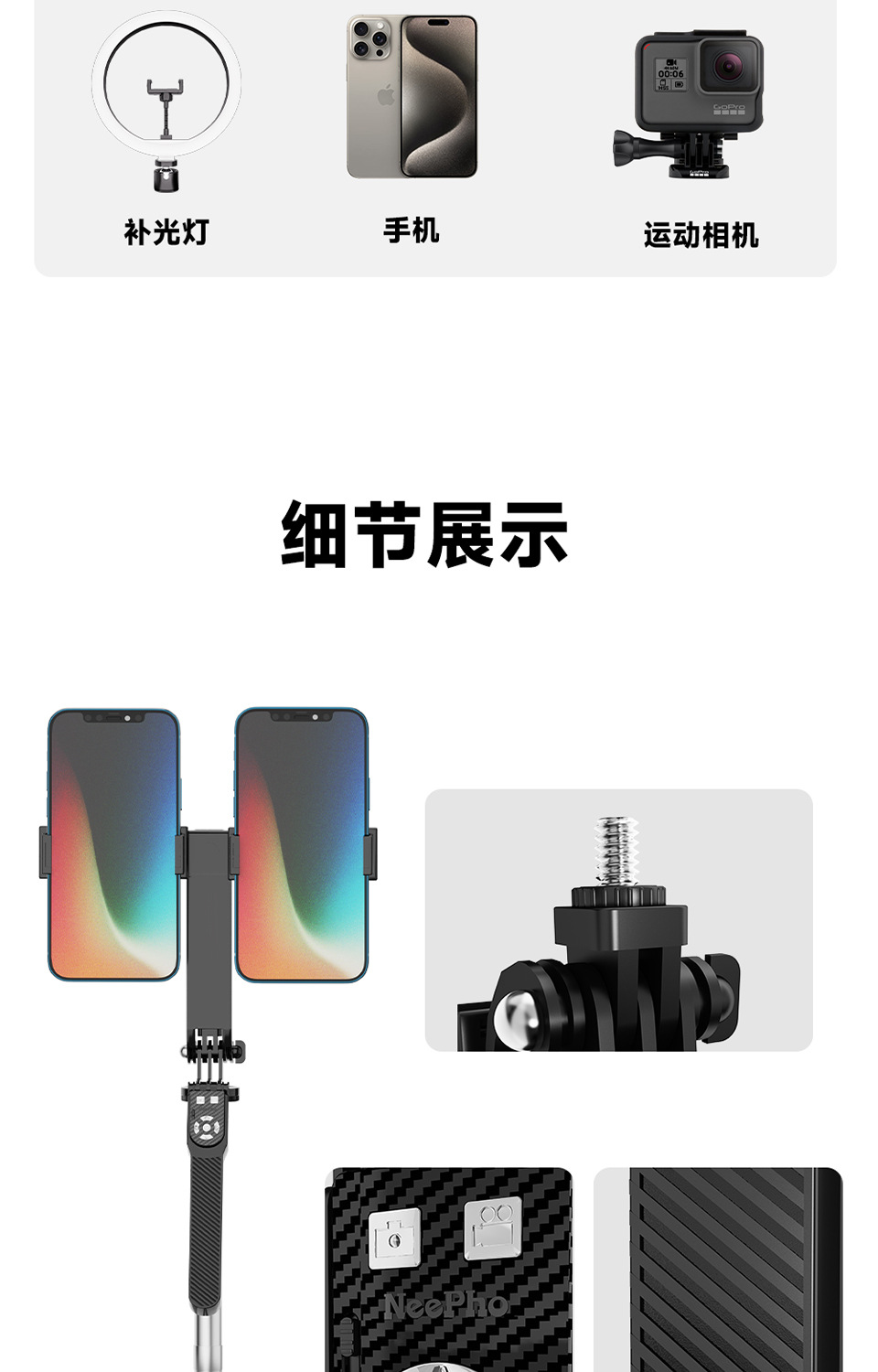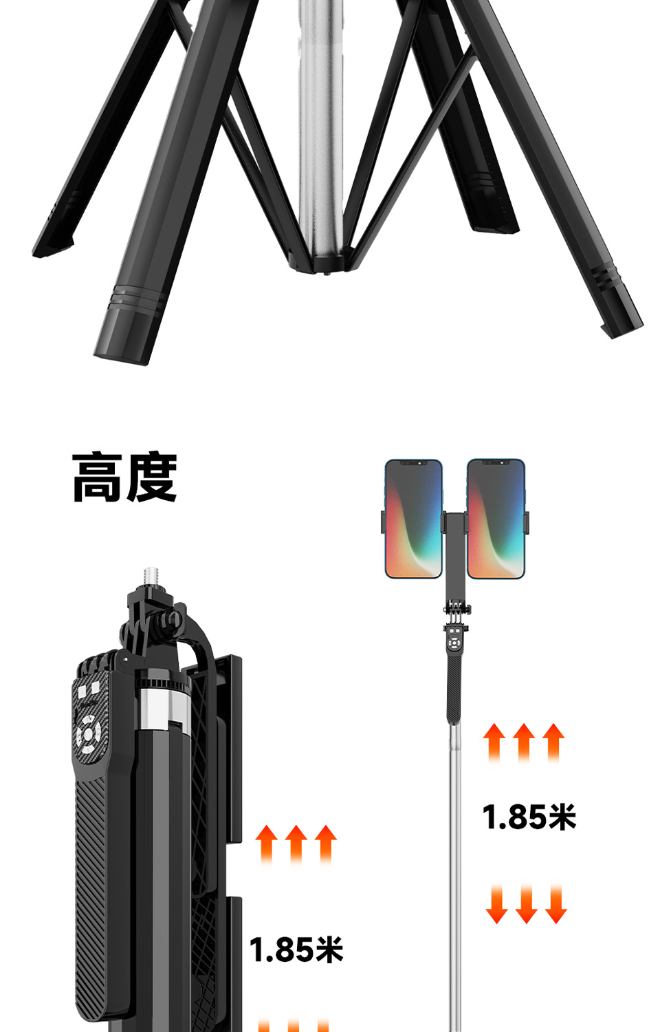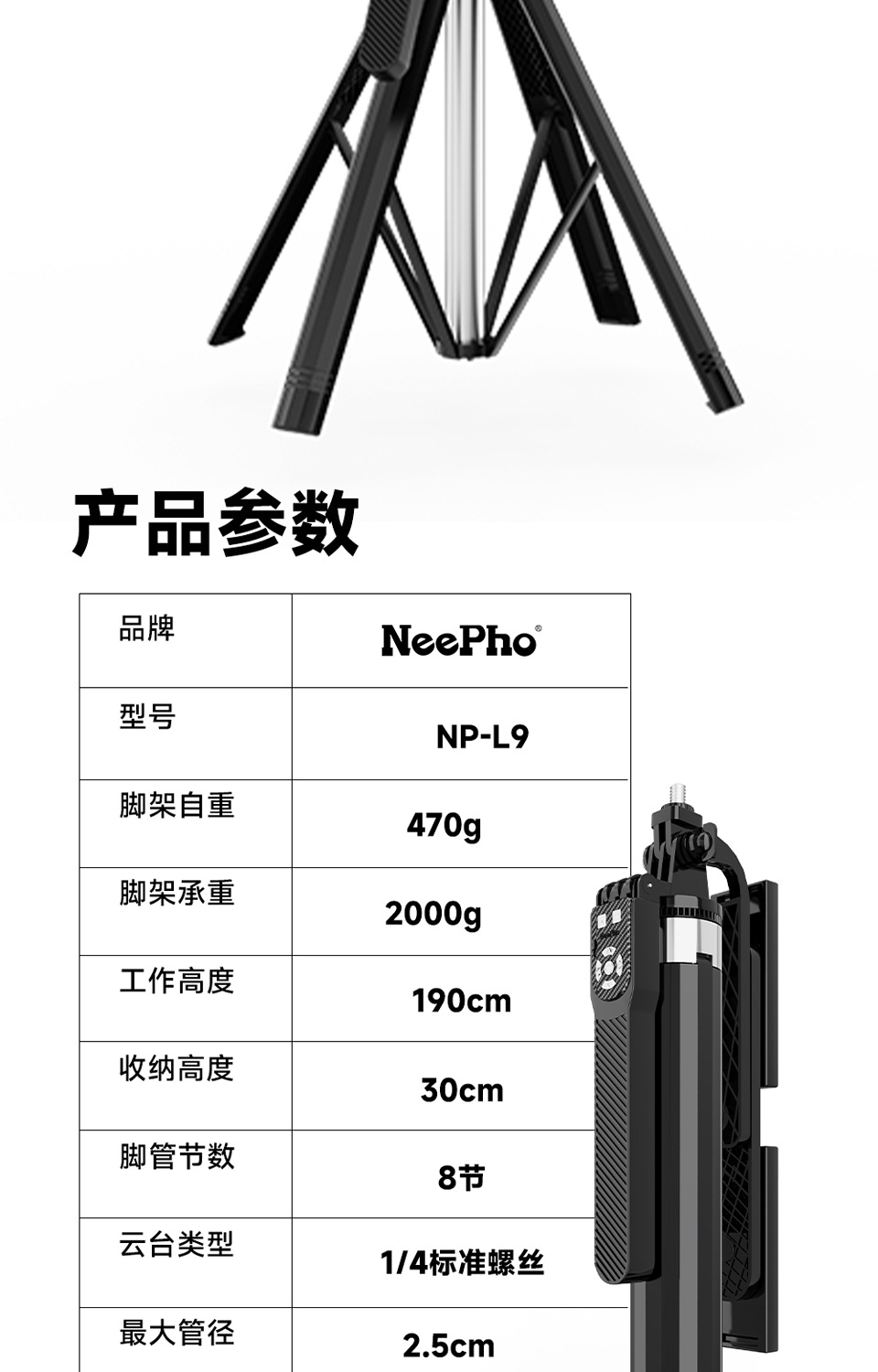 니파 휴대폰 확장형 안정 셀카봉 360 ° 밸런스 핸들 다기능 2.2m 발 스탠드 플로어 스탠드스토어 가기