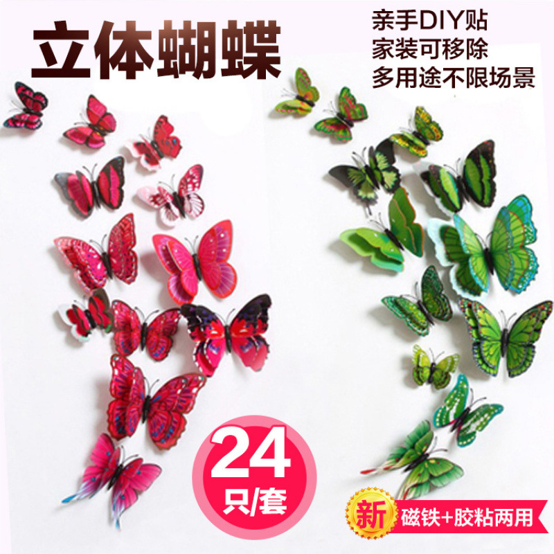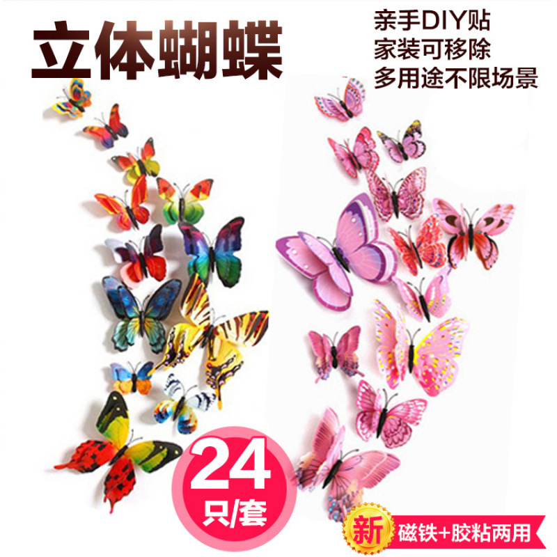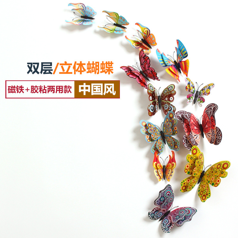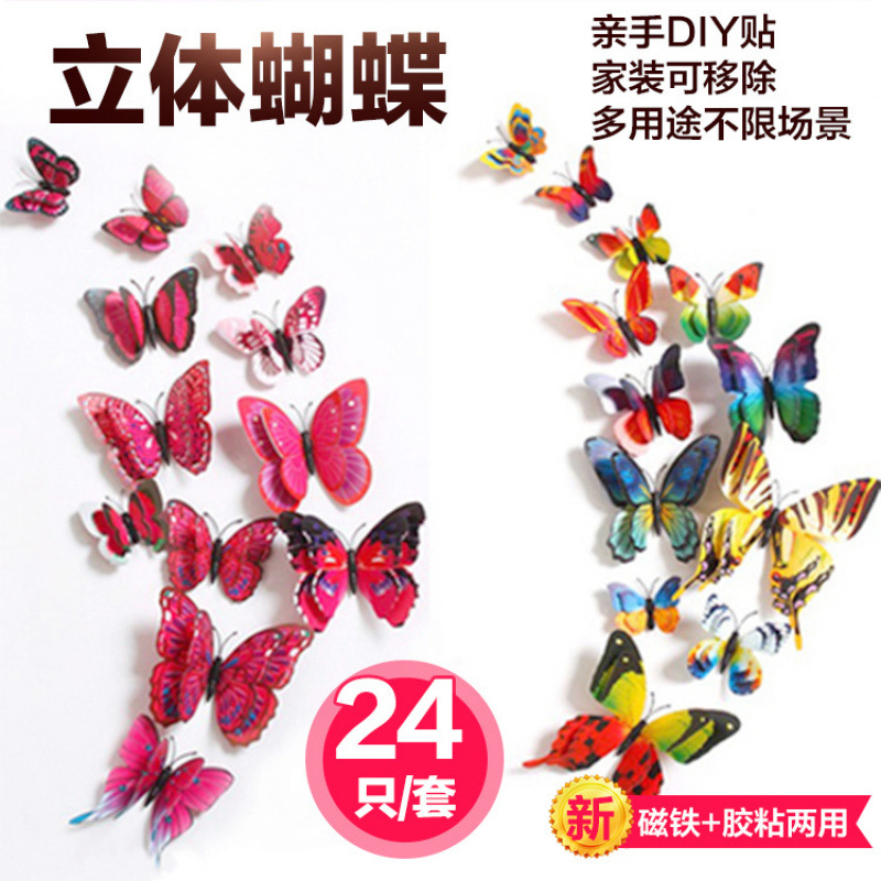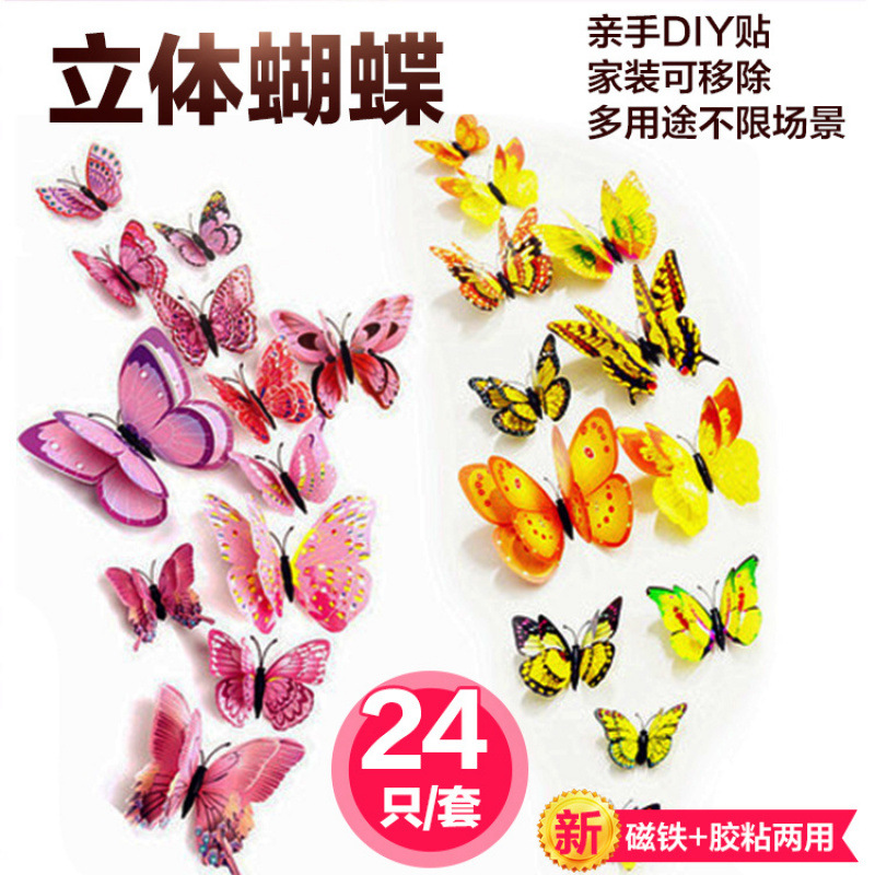 3D 입체 시뮬레이션 나비 벽 스티커, 거실 벽 장식 스티커, 따뜻한 침실 벽 스티커, 창의적인 냉장고 스티커