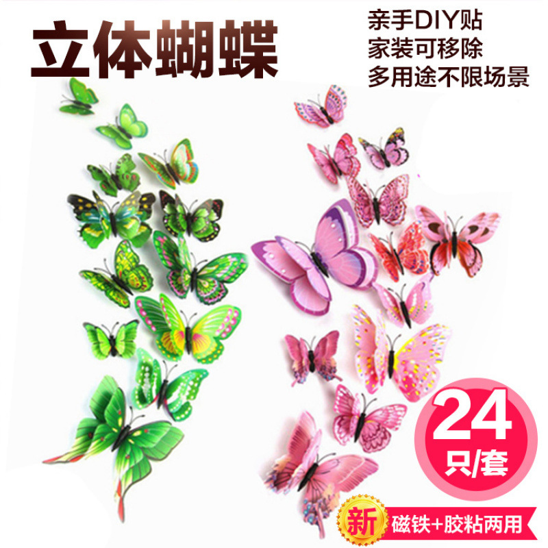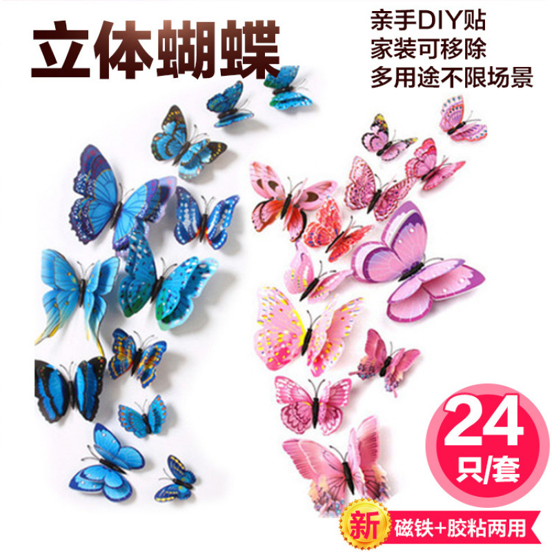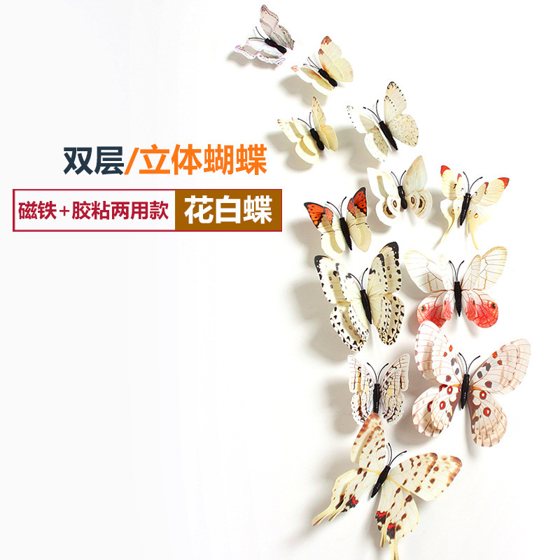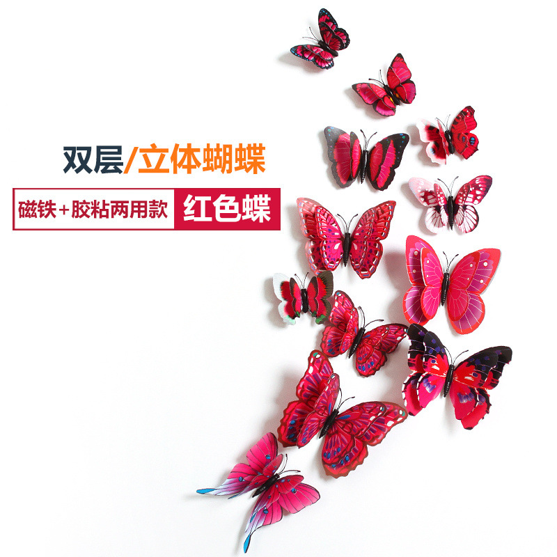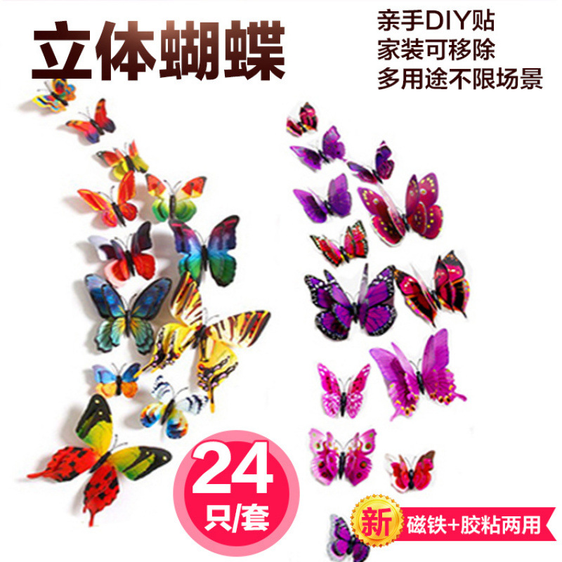 3D 입체 시뮬레이션 나비 벽 스티커, 거실 벽 장식 스티커, 따뜻한 침실 벽 스티커, 창의적인 냉장고 스티커