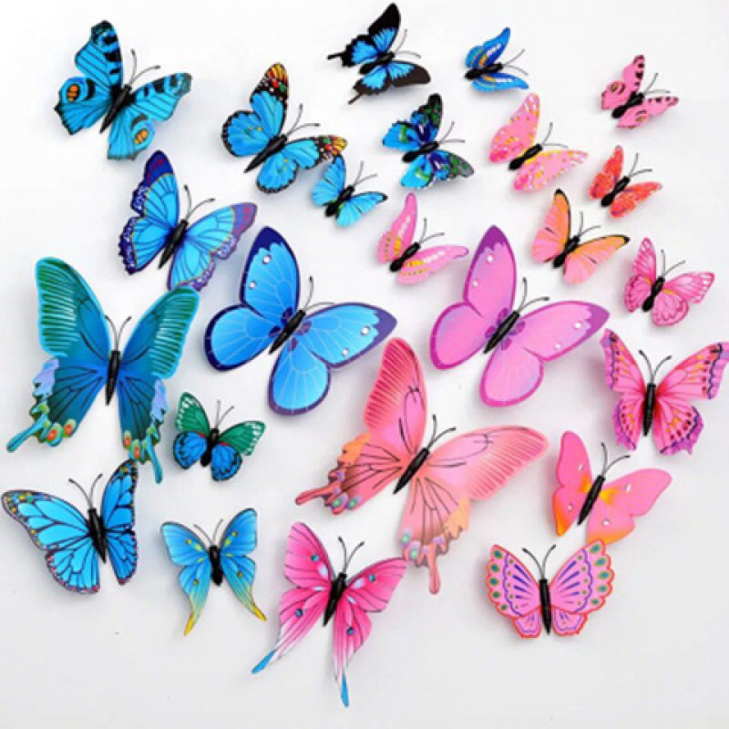 3D 입체 시뮬레이션 나비 벽 스티커, 거실 벽 장식 스티커, 따뜻한 침실 벽 스티커, 창의적인 냉장고 스티커스토어 가기