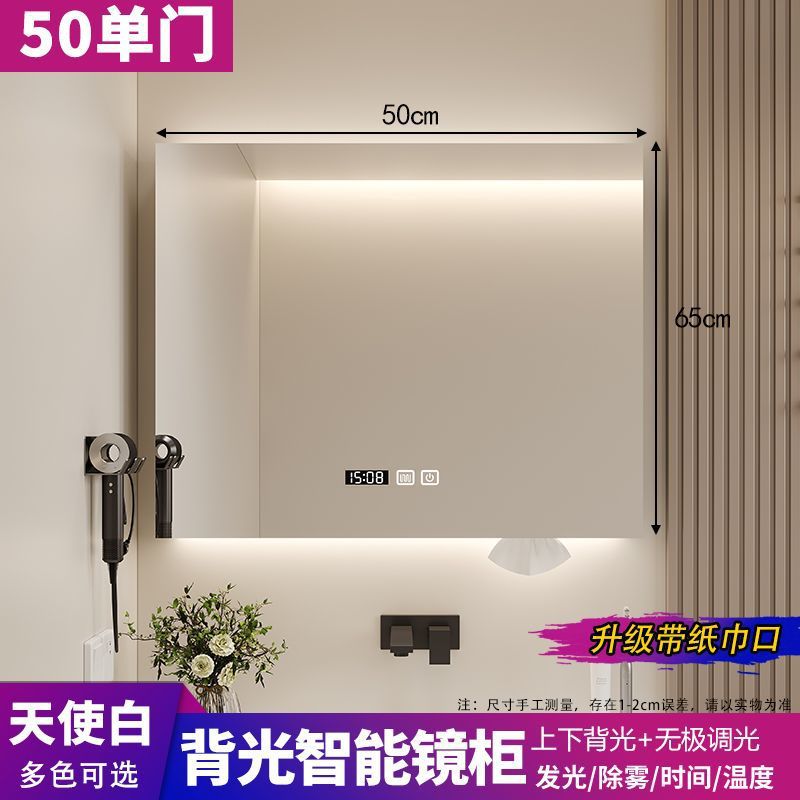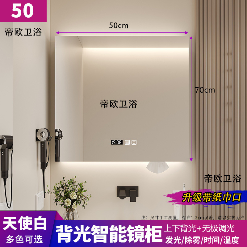 욕실 거울 조명이 있는 단단한 나무 스마트 욕실 거울 캐비닛 김서림 방지 욕실 거울 벽걸이형 욕실 선반이 있는 욕실스토어 가기