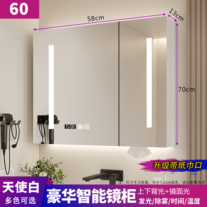 욕실 거울 조명이 있는 단단한 나무 스마트 욕실 거울 캐비닛 김서림 방지 욕실 거울 벽걸이형 욕실 선반이 있는 욕실