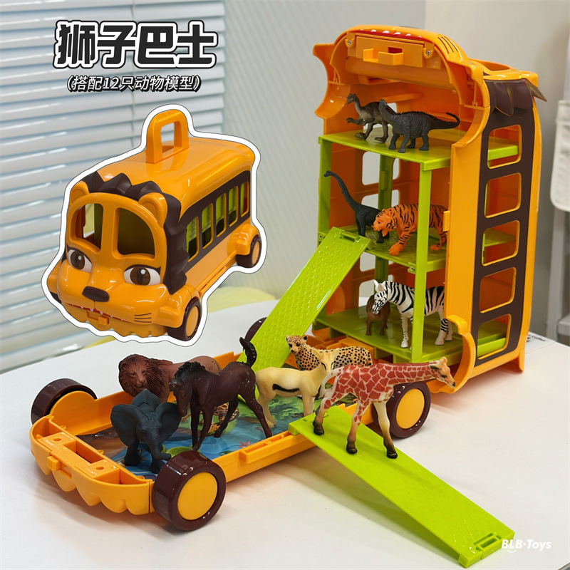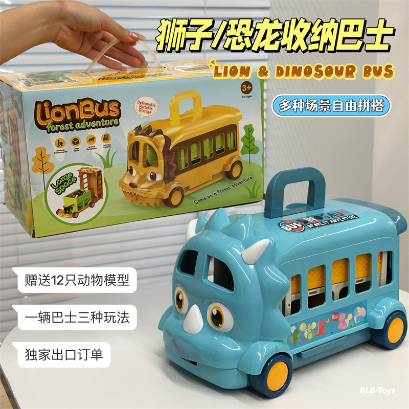 어린이 사자 공룡 자동차 버스 장난감 동물 모델 장면 게임 저장 상자는 다양한 작은 동물을 포함합니다