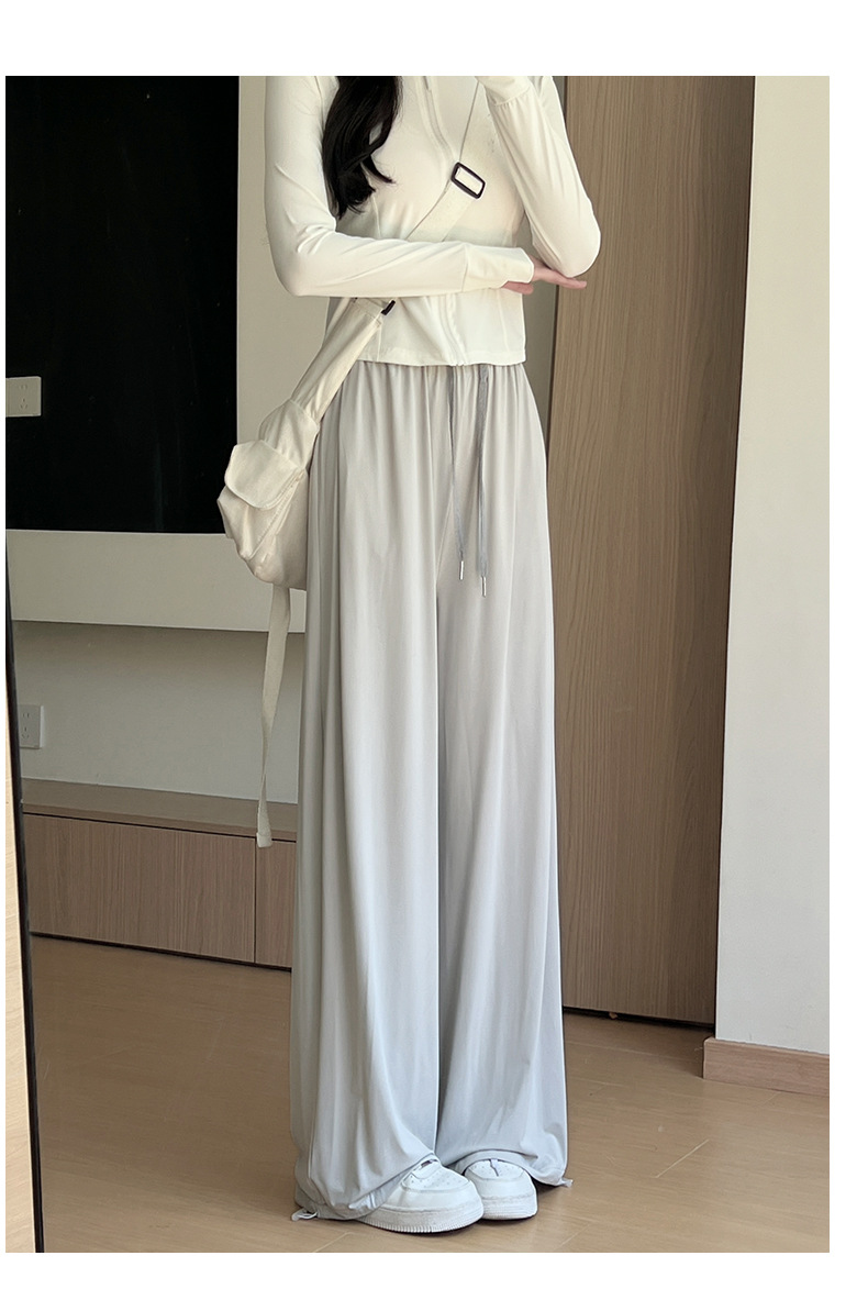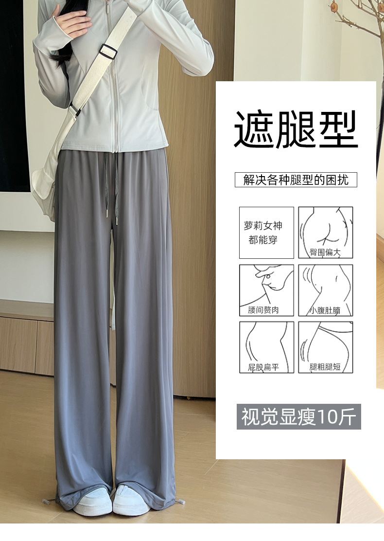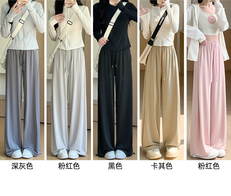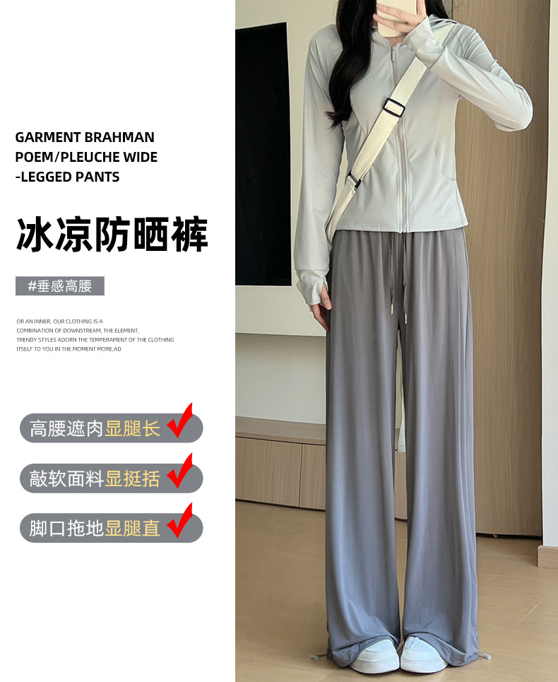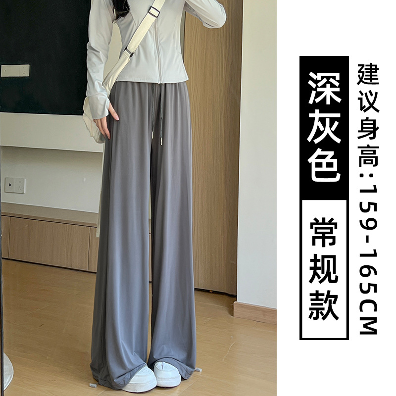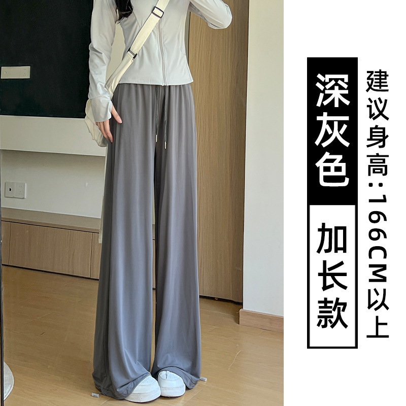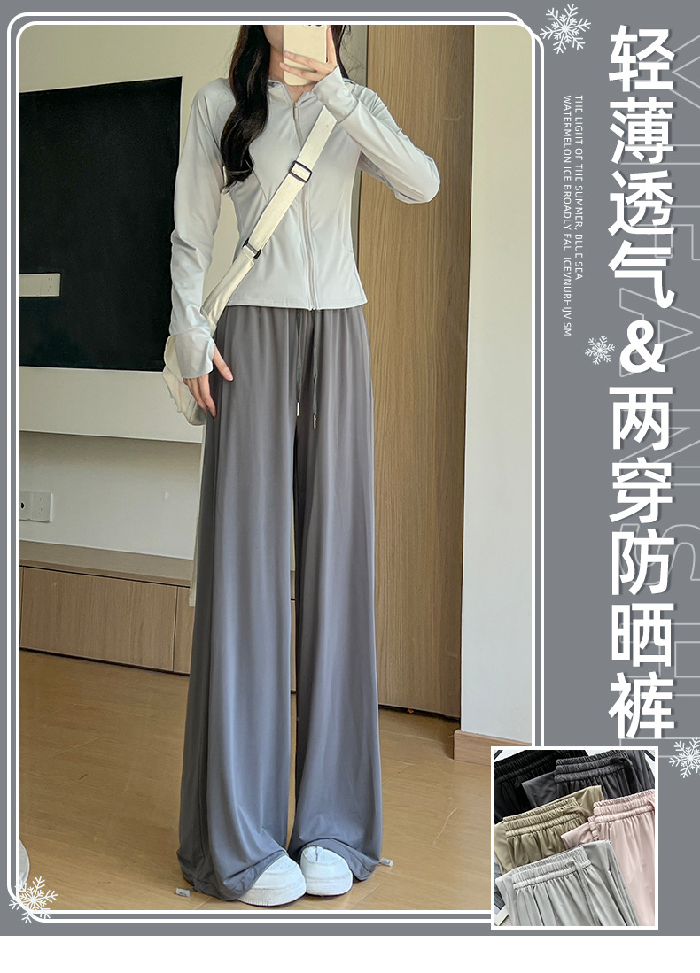 회색 얼음 실크 태양 보호 바지 여성의 여름 얇은 2025 새로운 휴식 높은 허리 느슨한 캐주얼 빠른 건조 와이드 레그 바지