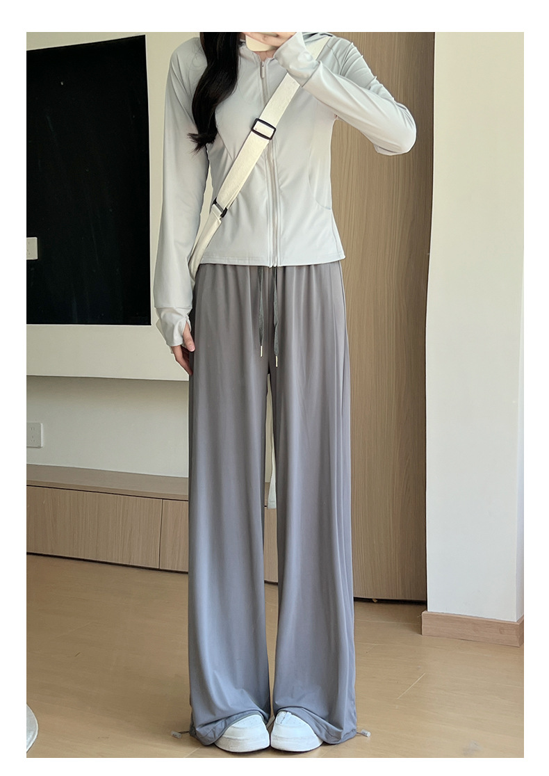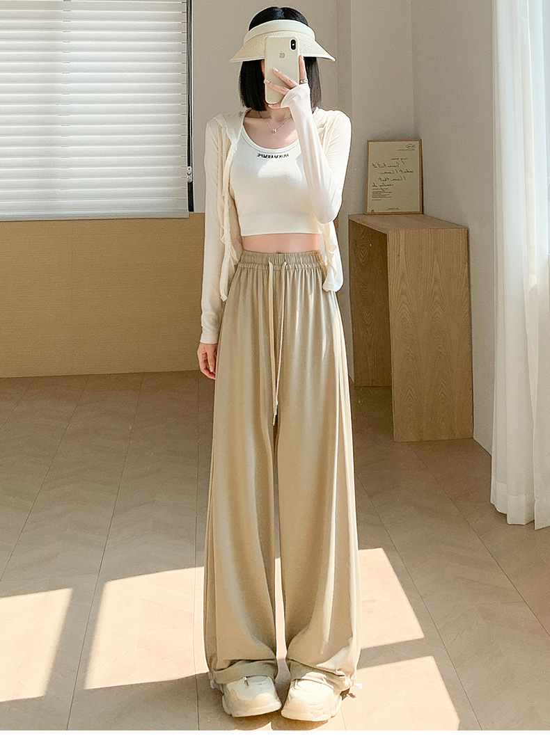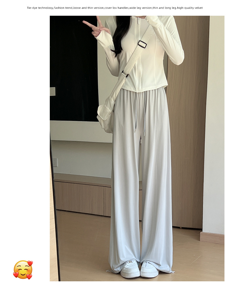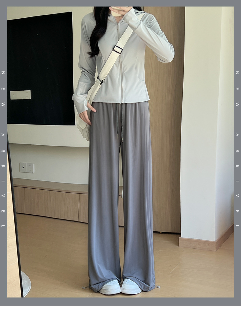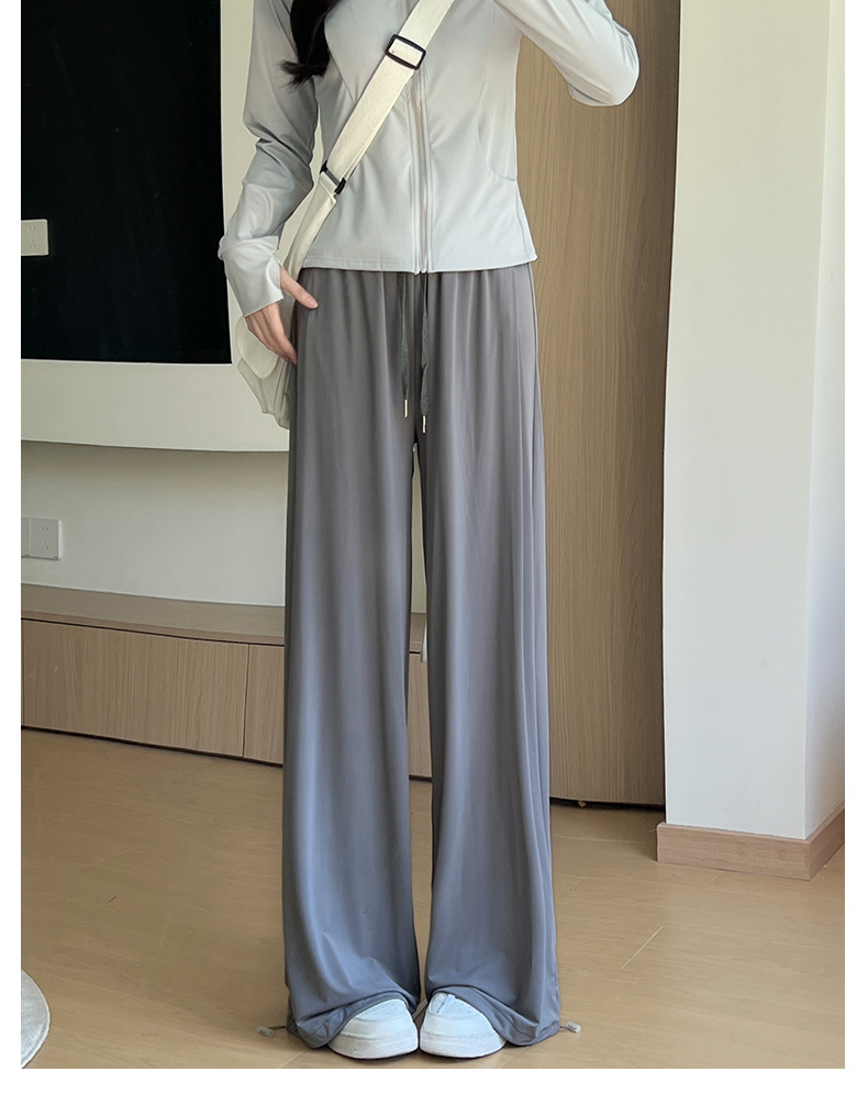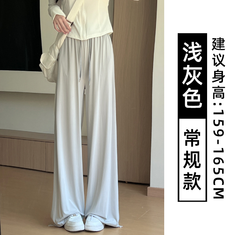 회색 얼음 실크 태양 보호 바지 여성의 여름 얇은 2025 새로운 휴식 높은 허리 느슨한 캐주얼 빠른 건조 와이드 레그 바지