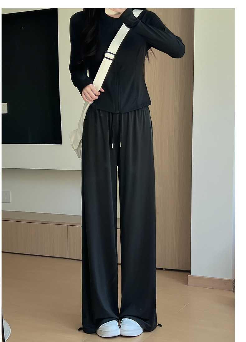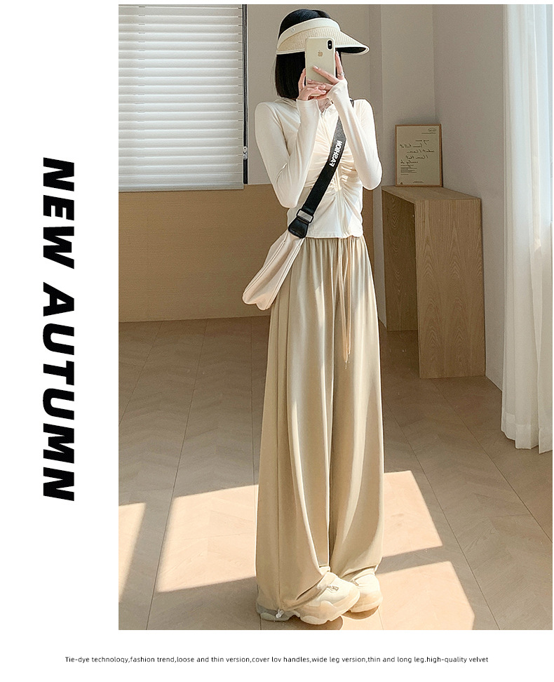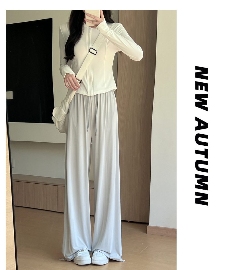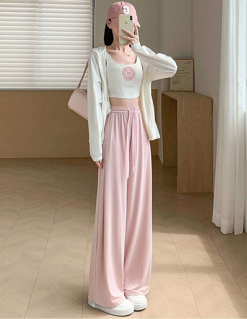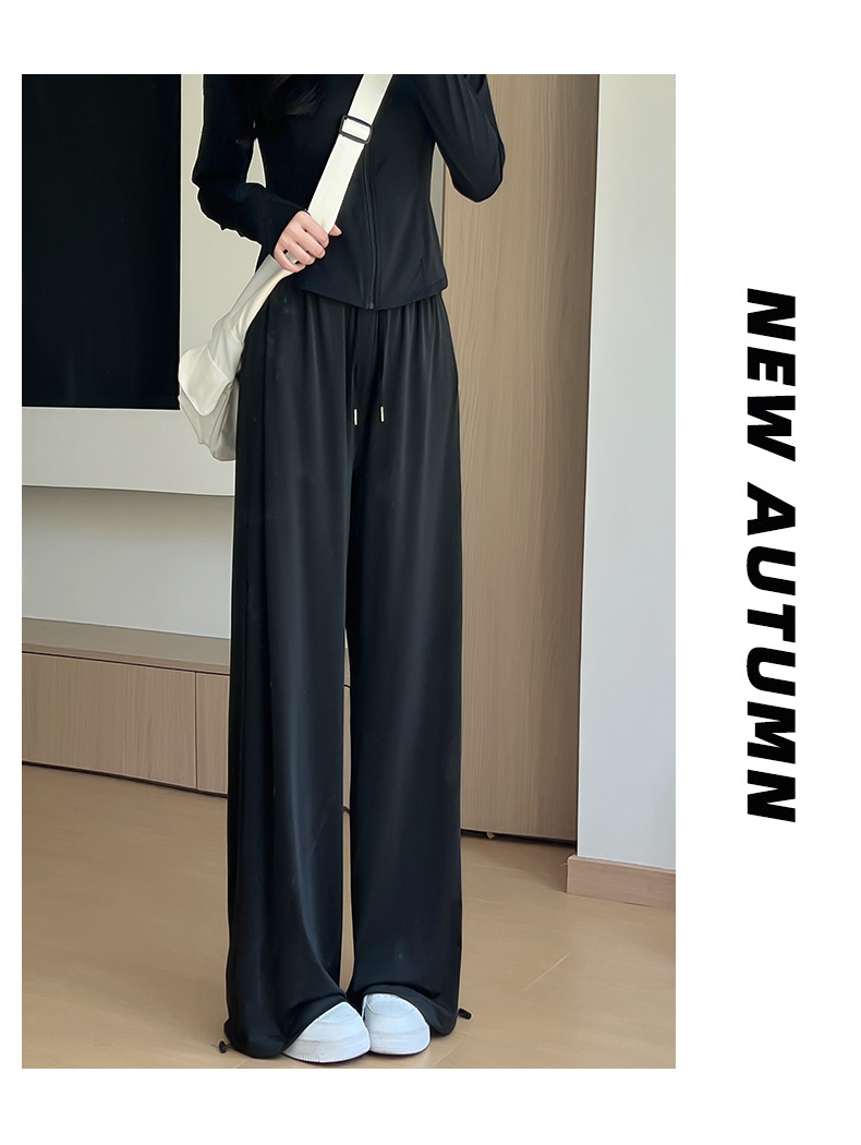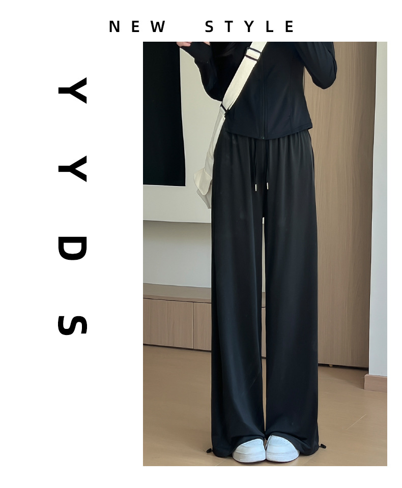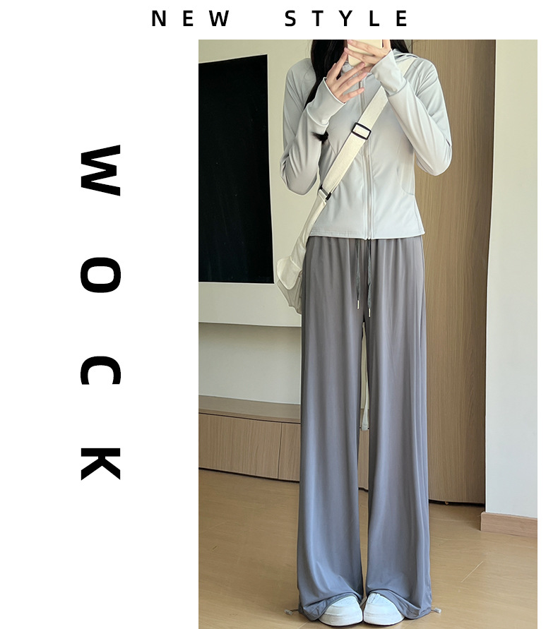 회색 얼음 실크 태양 보호 바지 여성의 여름 얇은 2025 새로운 휴식 높은 허리 느슨한 캐주얼 빠른 건조 와이드 레그 바지