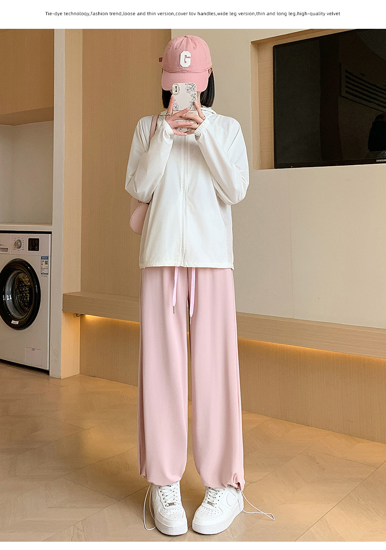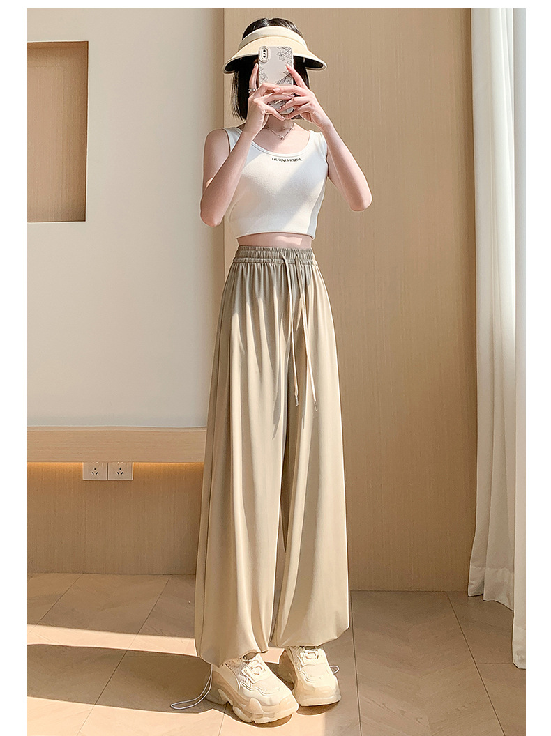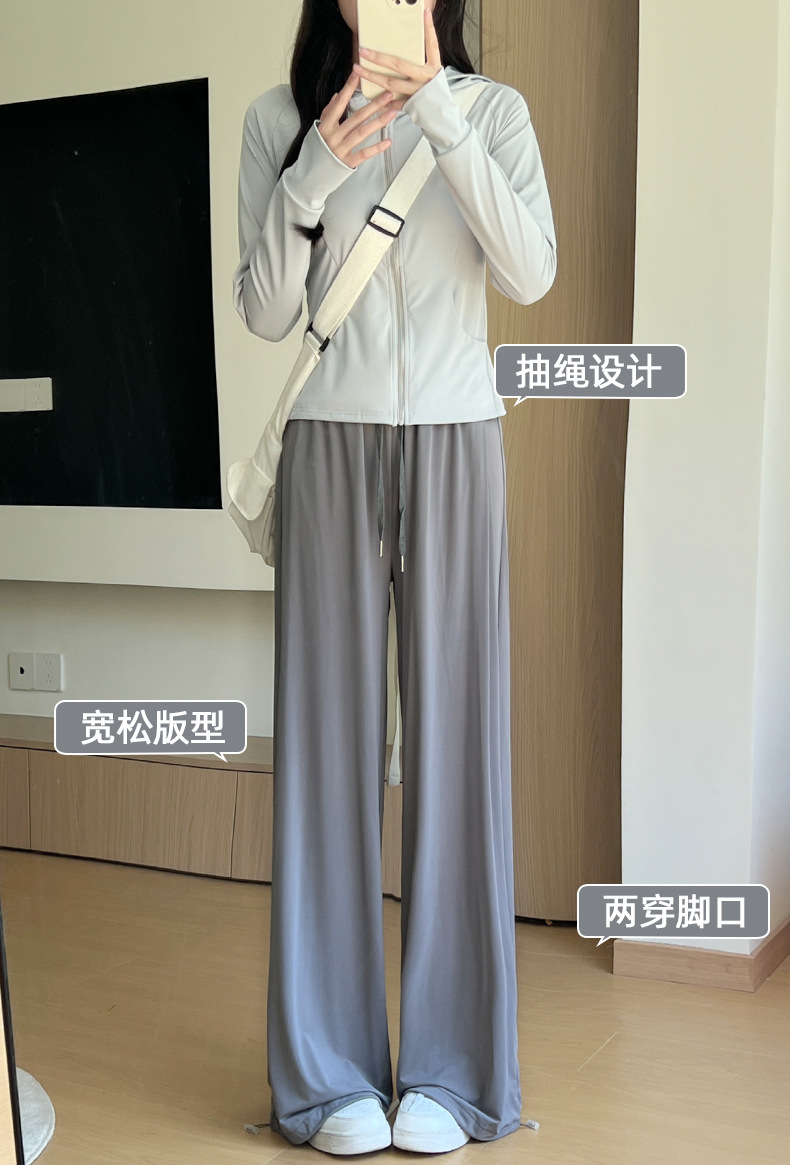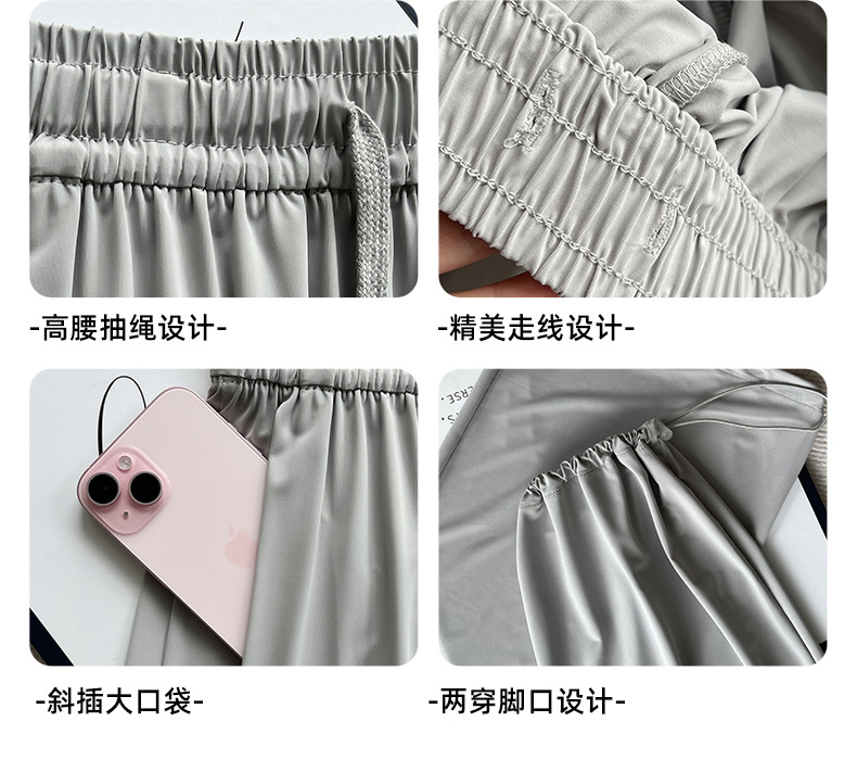 회색 얼음 실크 태양 보호 바지 여성의 여름 얇은 2025 새로운 휴식 높은 허리 느슨한 캐주얼 빠른 건조 와이드 레그 바지스토어 가기