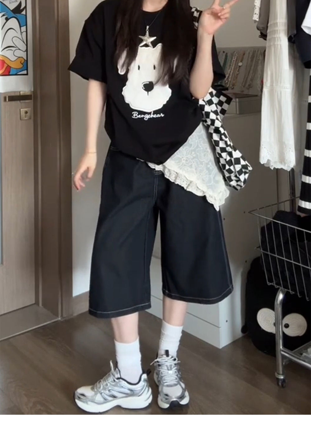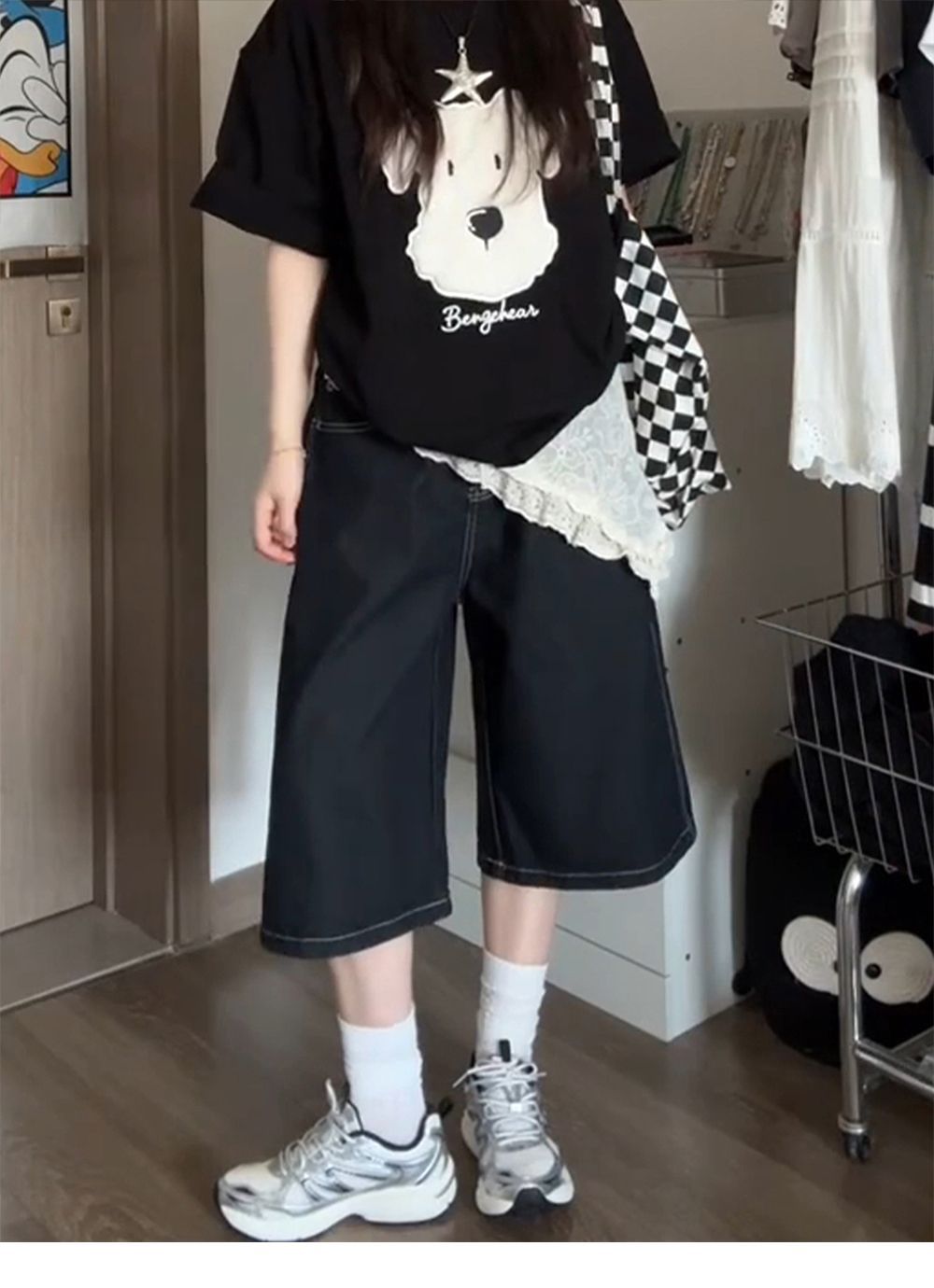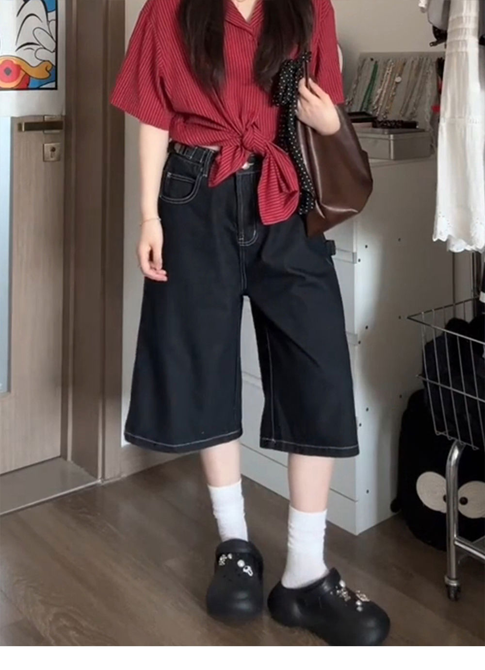 여성용 크롭 팬츠 여름 얇은 2025 신상 다크 블루 청바지 플러스 사이즈 뚱뚱한 mm 슬리밍 루즈 스트레이트 5부 중간 길이 바지스토어 가기