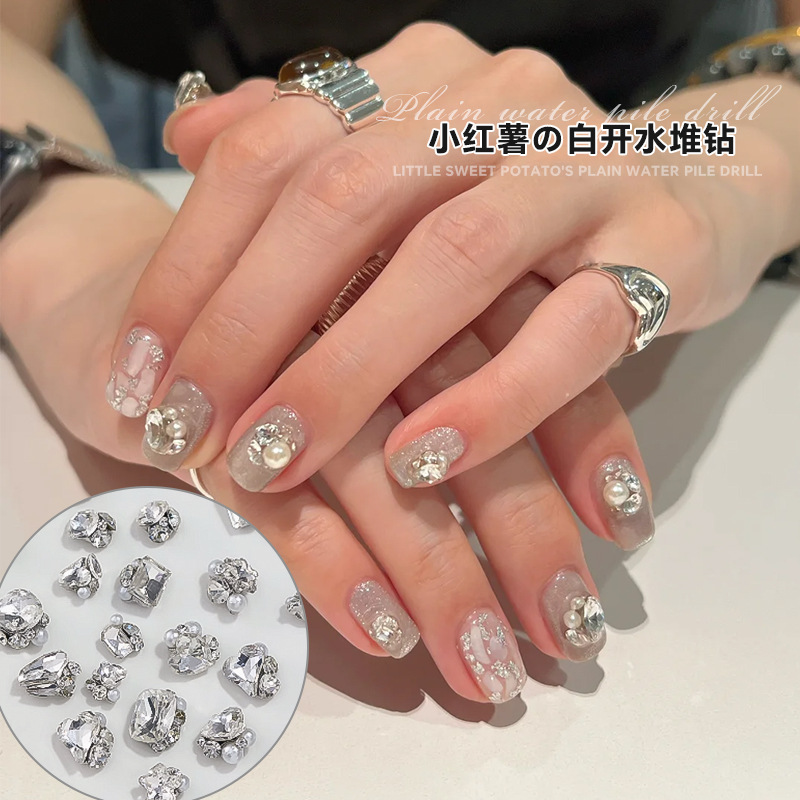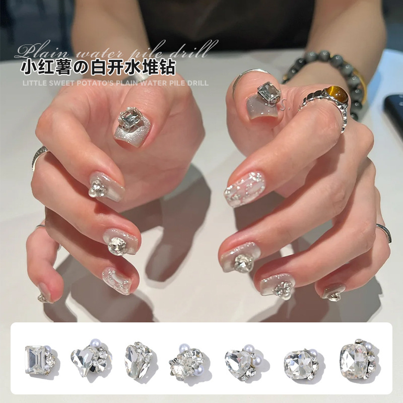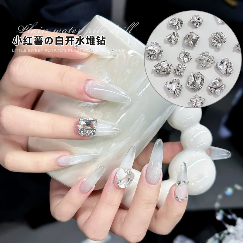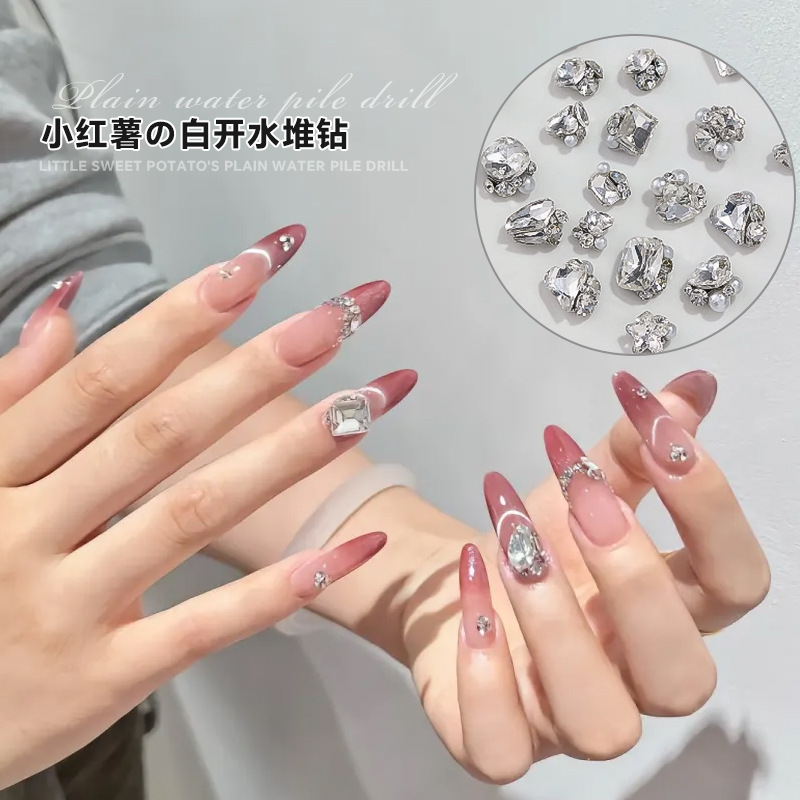 작은 빨간 책 폭발 흰 물 더미 다이아몬드 보석 플래시 큰 스몰 사이즈 사랑 긴 오른쪽 각도 네일 아트 다이아몬드 볼 장식스토어 가기