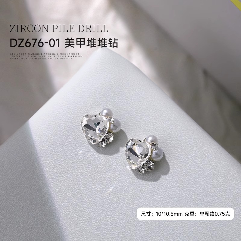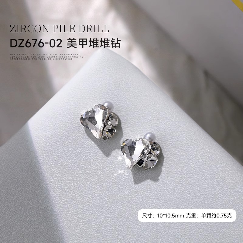 작은 빨간 책 폭발 흰 물 더미 다이아몬드 보석 플래시 큰 스몰 사이즈 사랑 긴 오른쪽 각도 네일 아트 다이아몬드 볼 장식