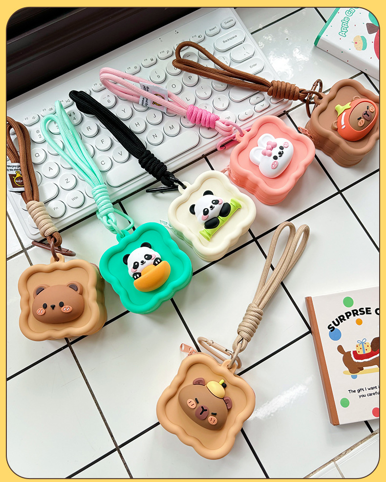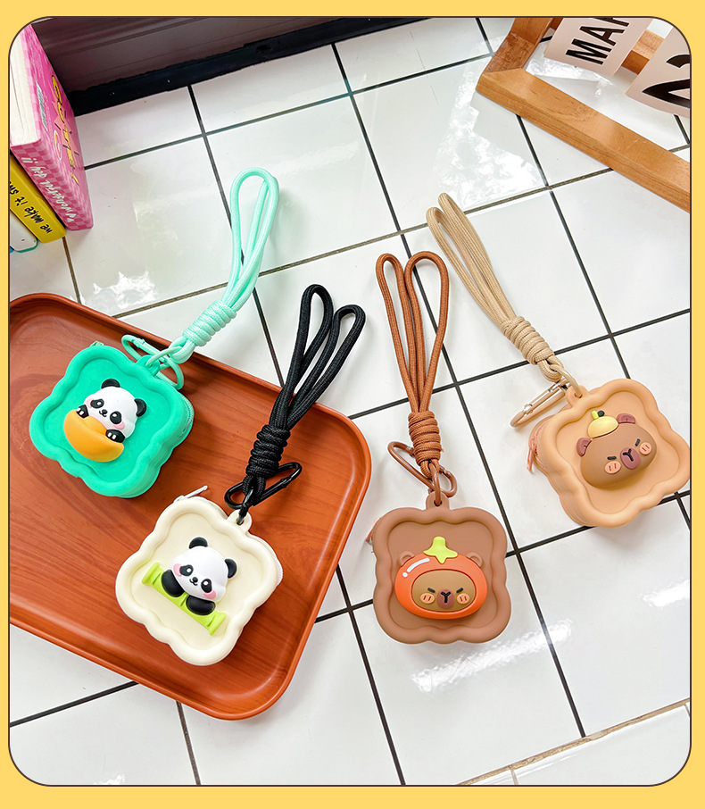 귀여운 실리콘 동전 지갑 팬더 미니 헤드셋 스토리지 보호 케이스 인터넷-레드 카피 바라 작은 지갑 펜던트