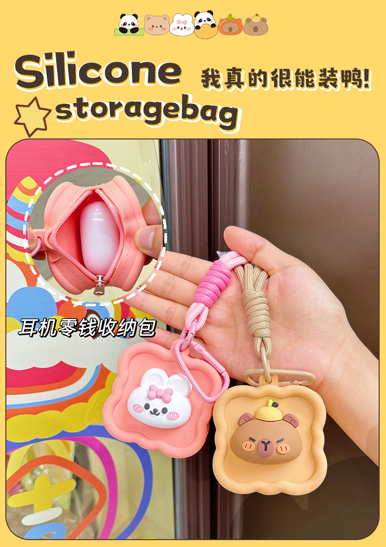 귀여운 실리콘 동전 지갑 팬더 미니 헤드셋 스토리지 보호 케이스 인터넷-레드 카피 바라 작은 지갑 펜던트스토어 가기