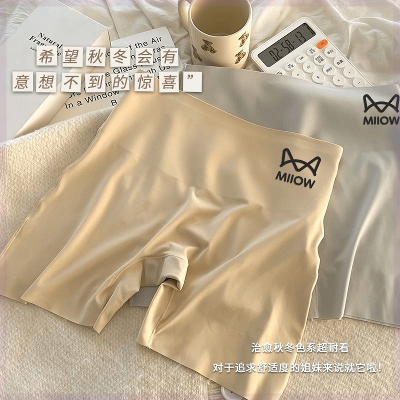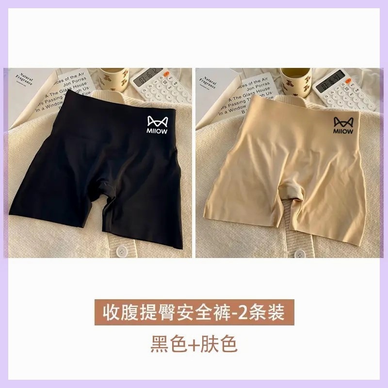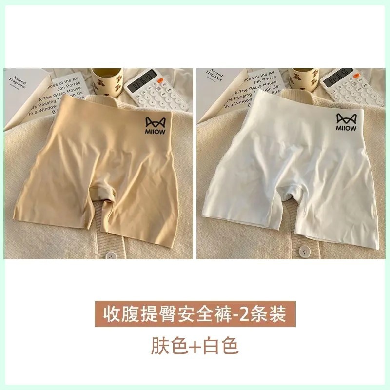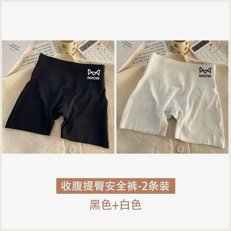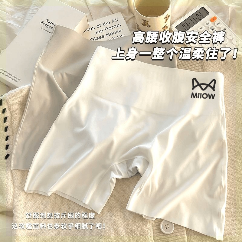 여성용 캣맨팬츠, 노출방지, 컬링되지 않는 얇은 아이스실크 심리스 레깅스, 하이웨이스트와 뱃살 조절 기능이 있는 투인원 속옷