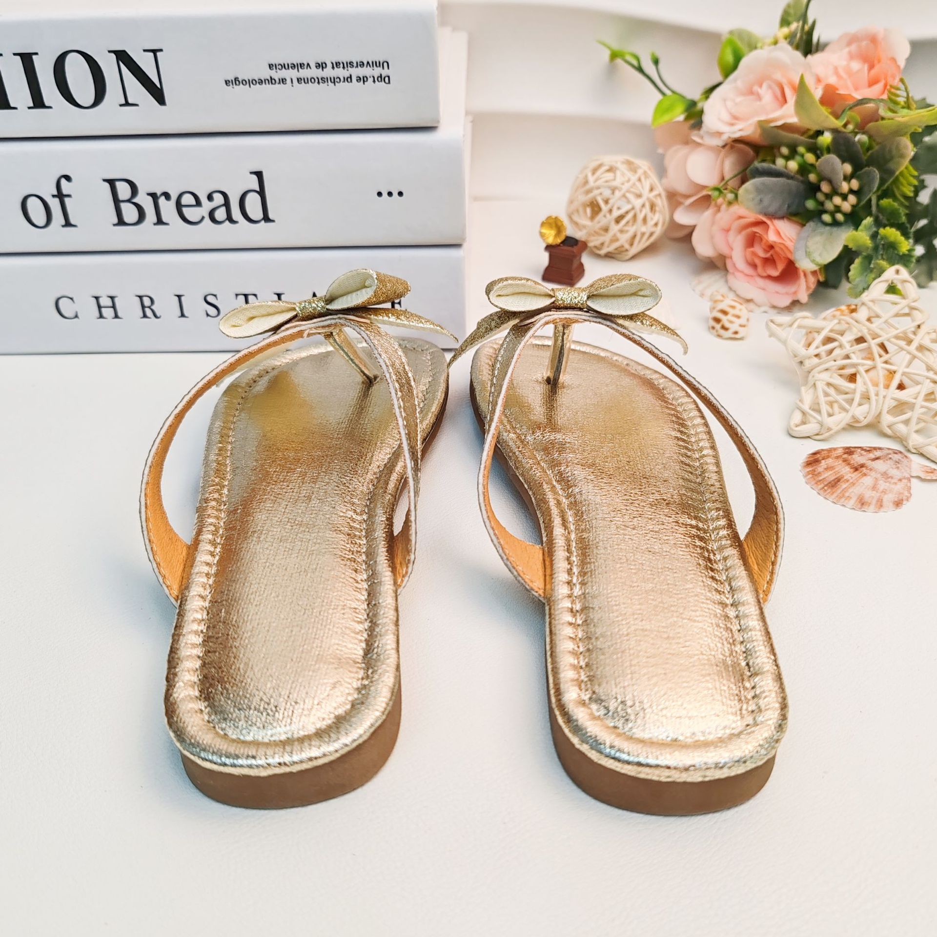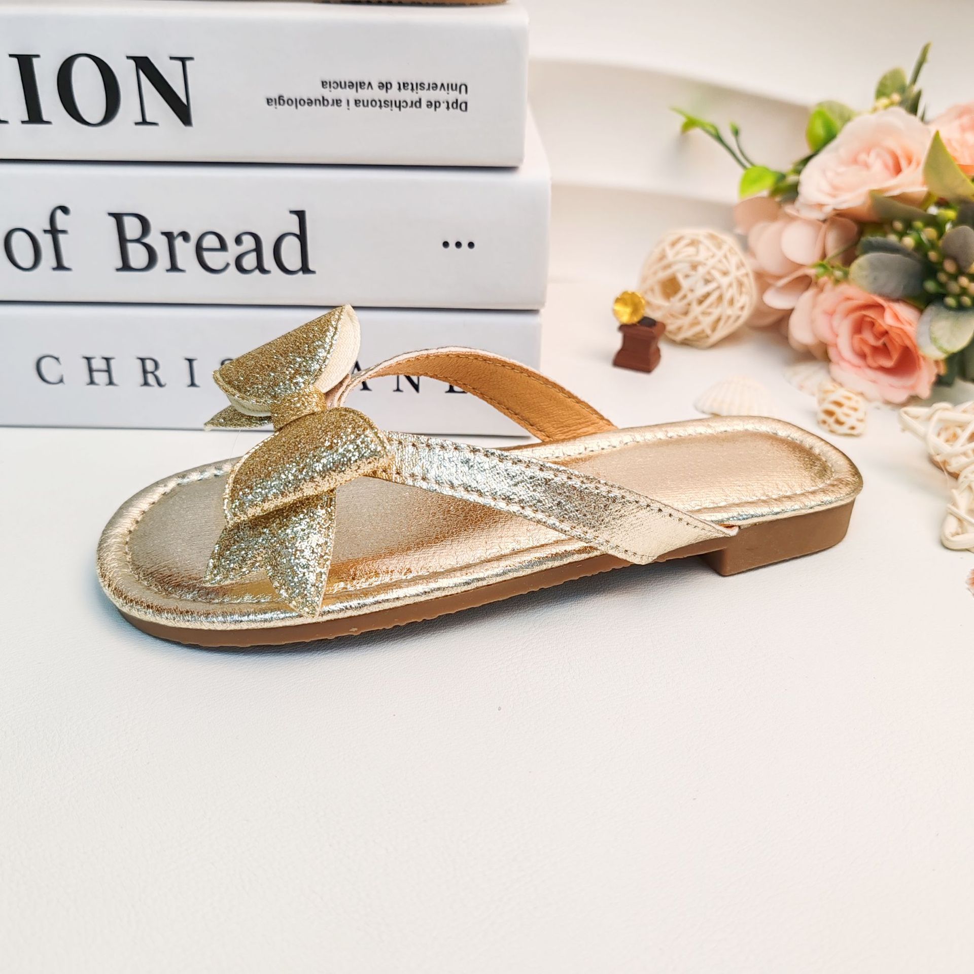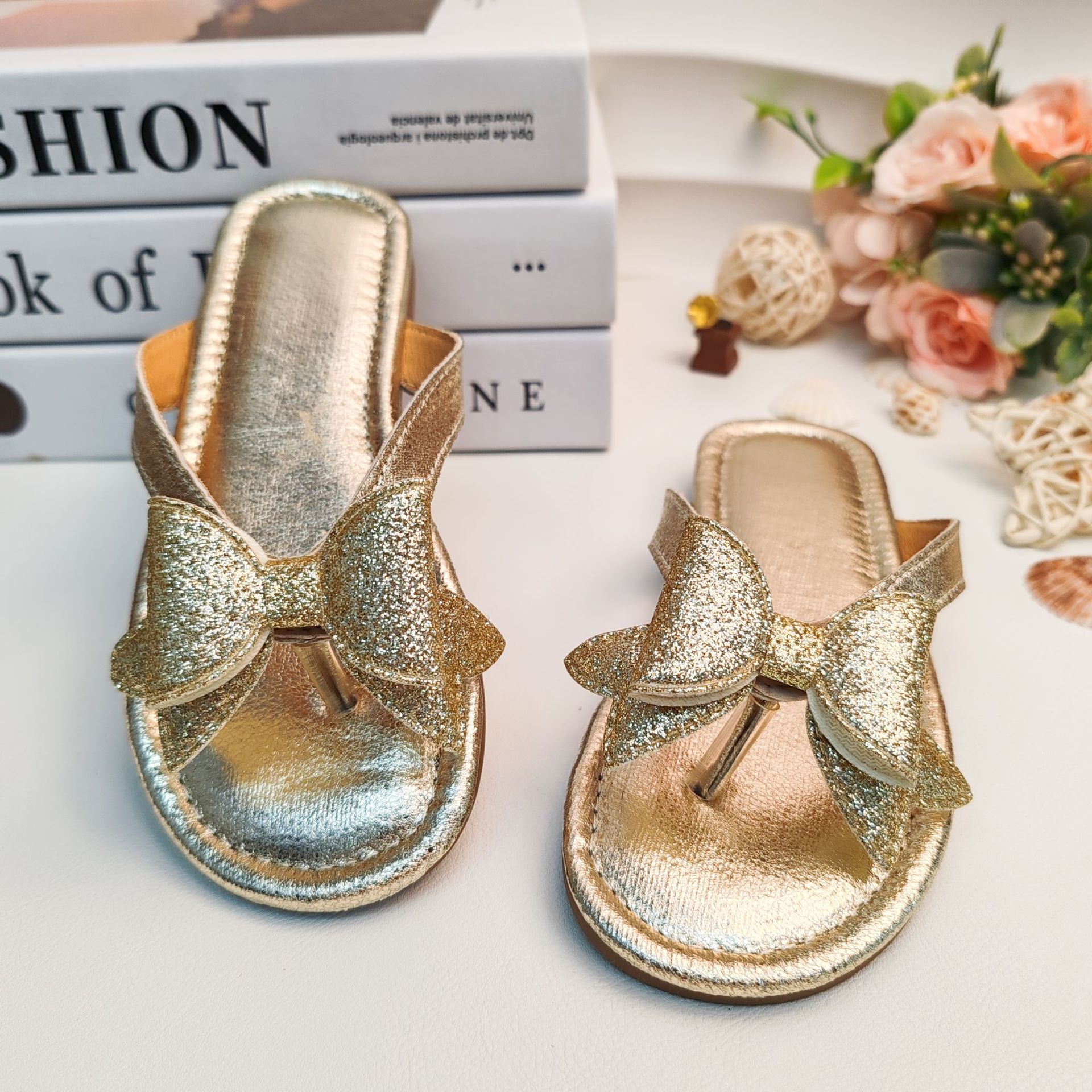 국경 간 여름 슬리퍼 2025 새로운 황금 소녀 공주 스타일 플랫 미끄럼 방지 비치 샌들 외부