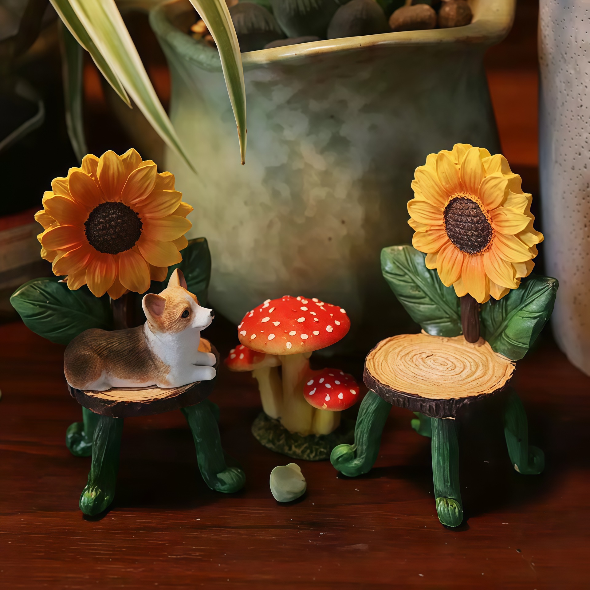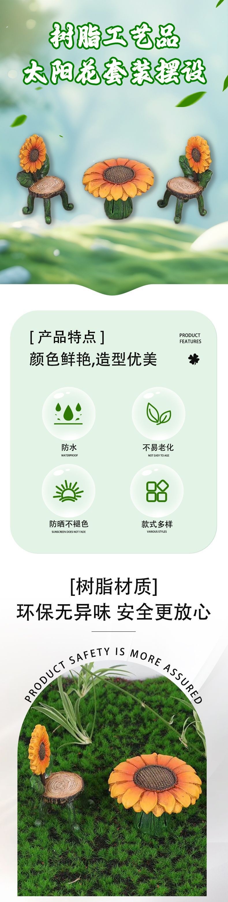 수제 해바라기 레진 테이블과 의자 세트 비밀 정원 미니어처 수족관 조경 공장 직판 창의적 장식품