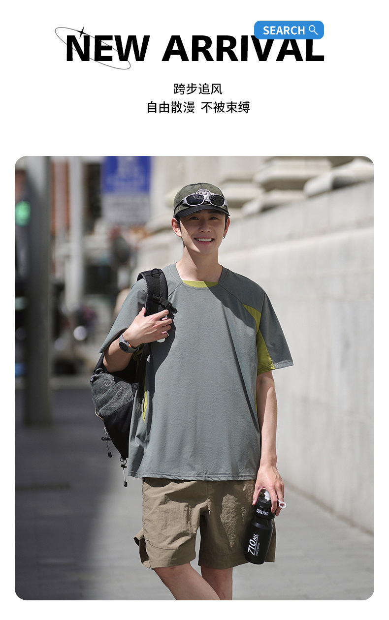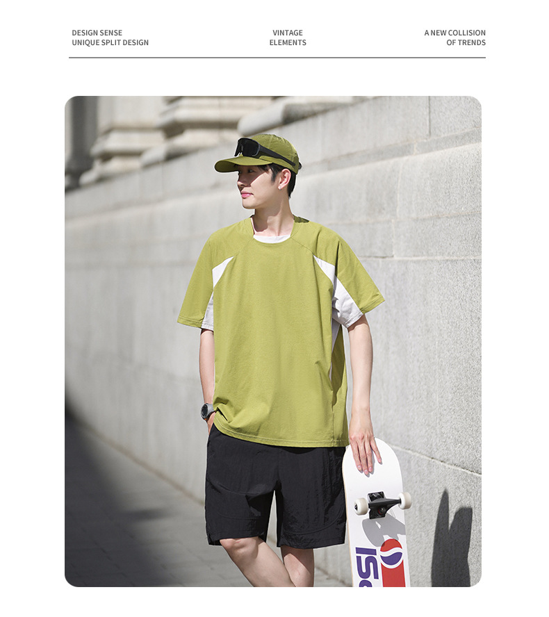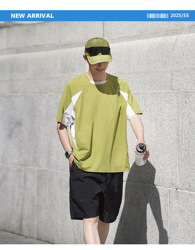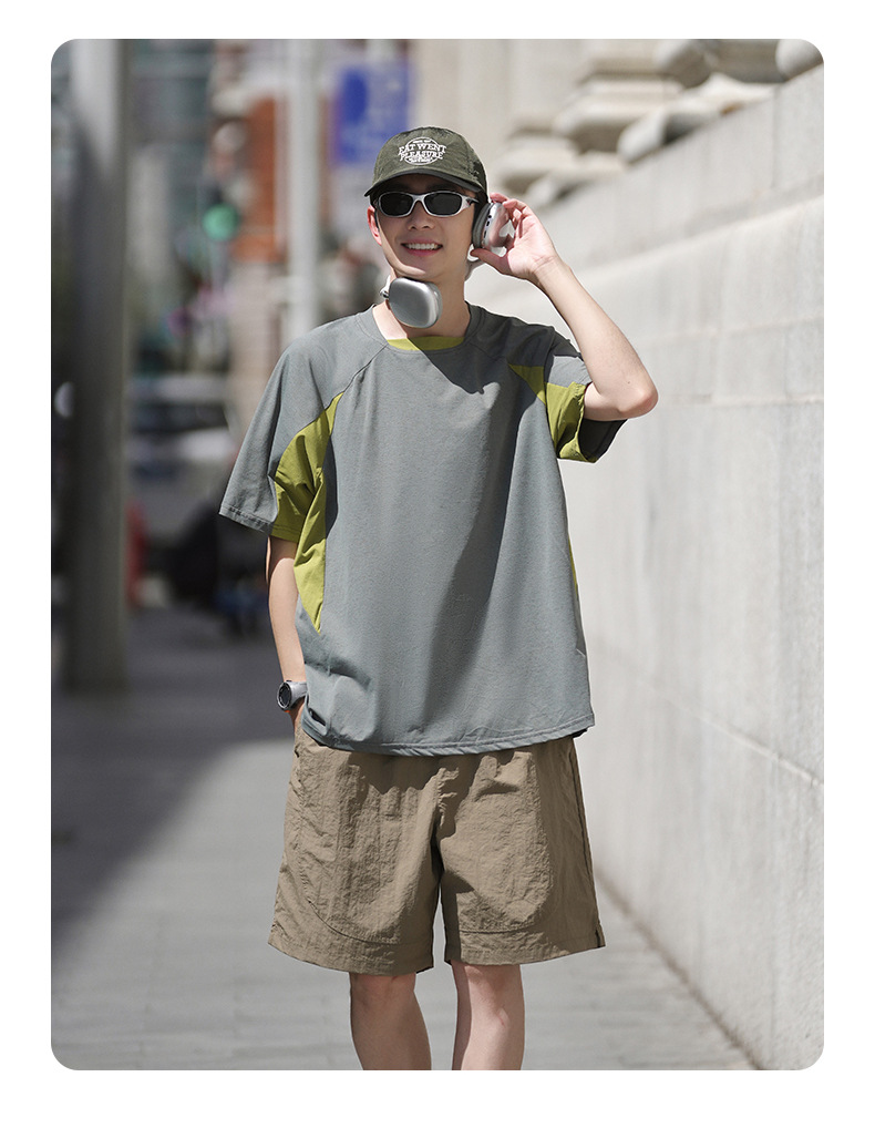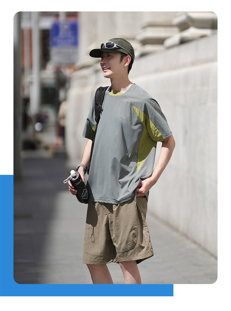 OOTD 국경 동남 아시아 반팔 남성 티셔츠 여름 컬러 매칭 올 매치 패셔너블 야외 하이 스트리트 루즈 캐주얼 빠른 건조