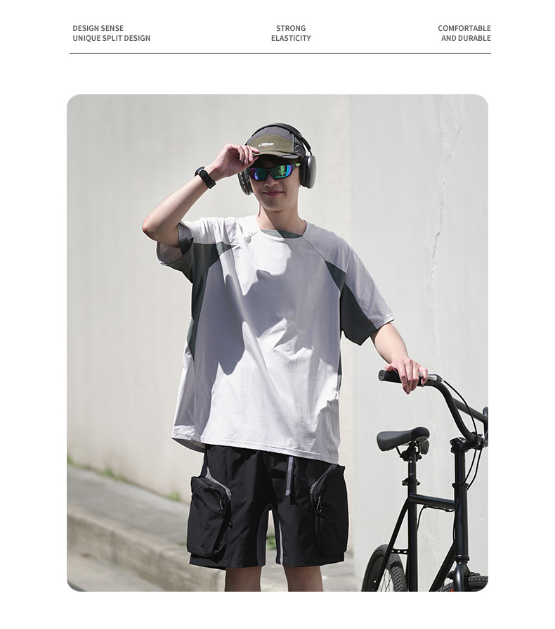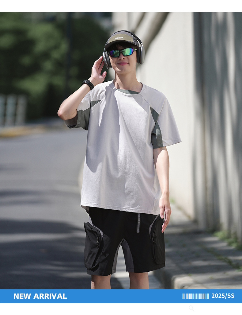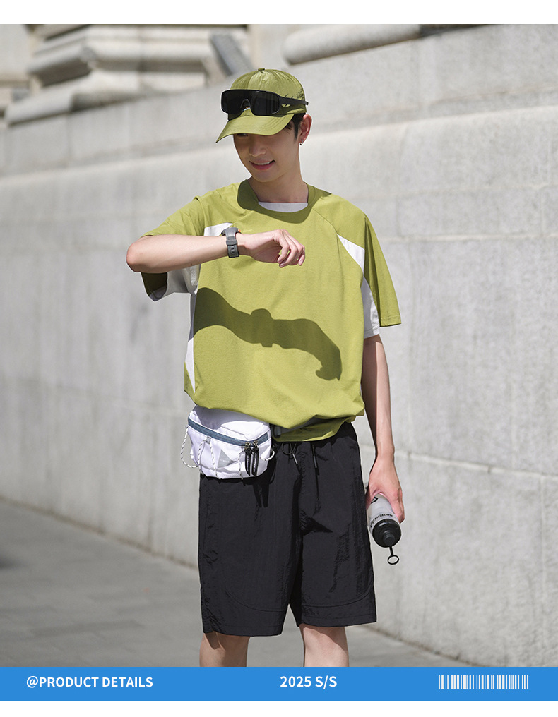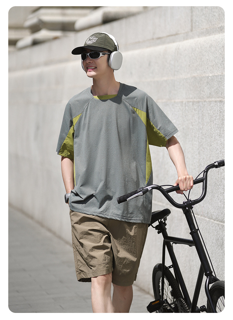 OOTD 국경 동남 아시아 반팔 남성 티셔츠 여름 컬러 매칭 올 매치 패셔너블 야외 하이 스트리트 루즈 캐주얼 빠른 건조