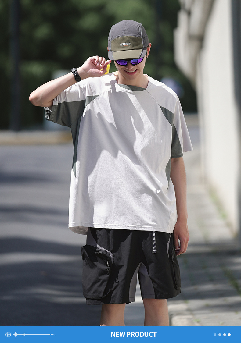 OOTD 국경 동남 아시아 반팔 남성 티셔츠 여름 컬러 매칭 올 매치 패셔너블 야외 하이 스트리트 루즈 캐주얼 빠른 건조스토어 가기