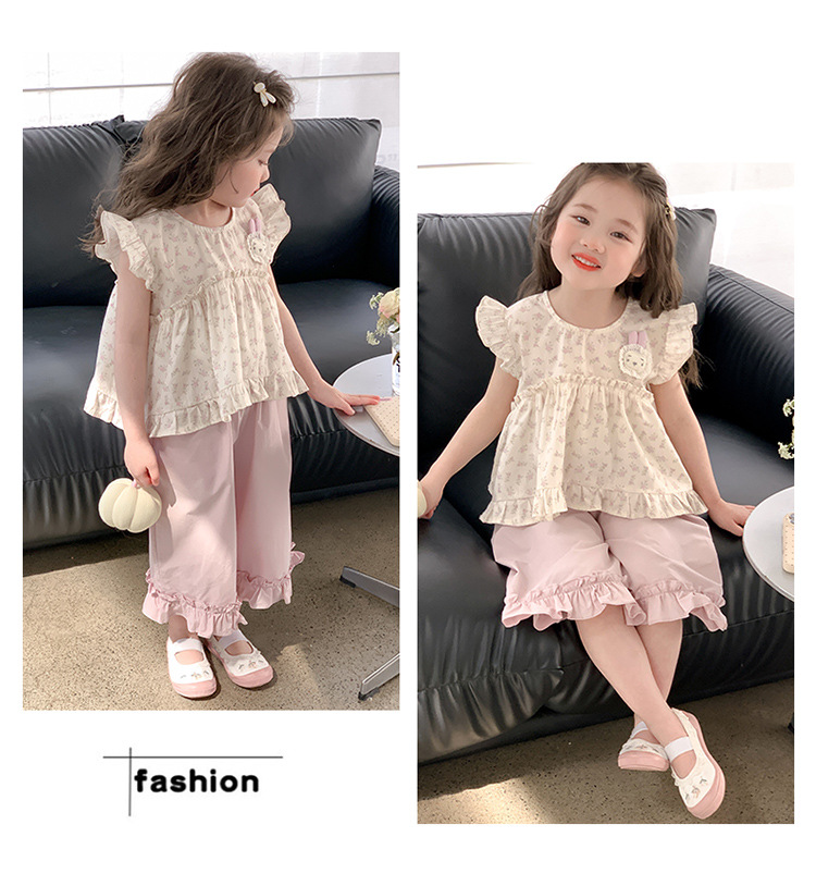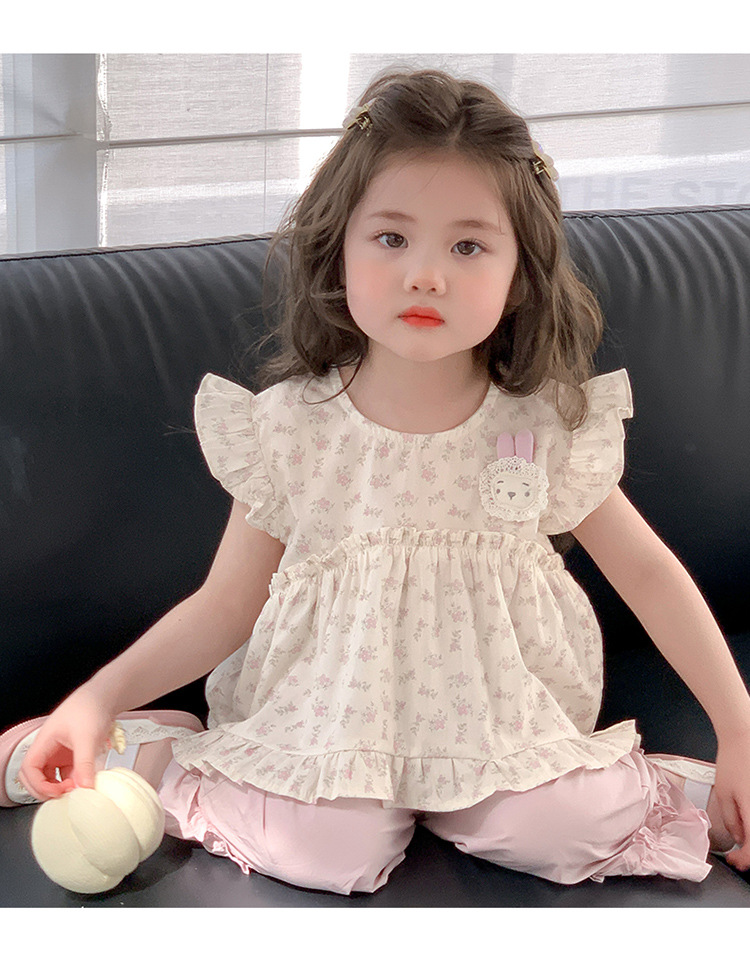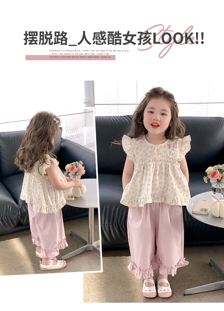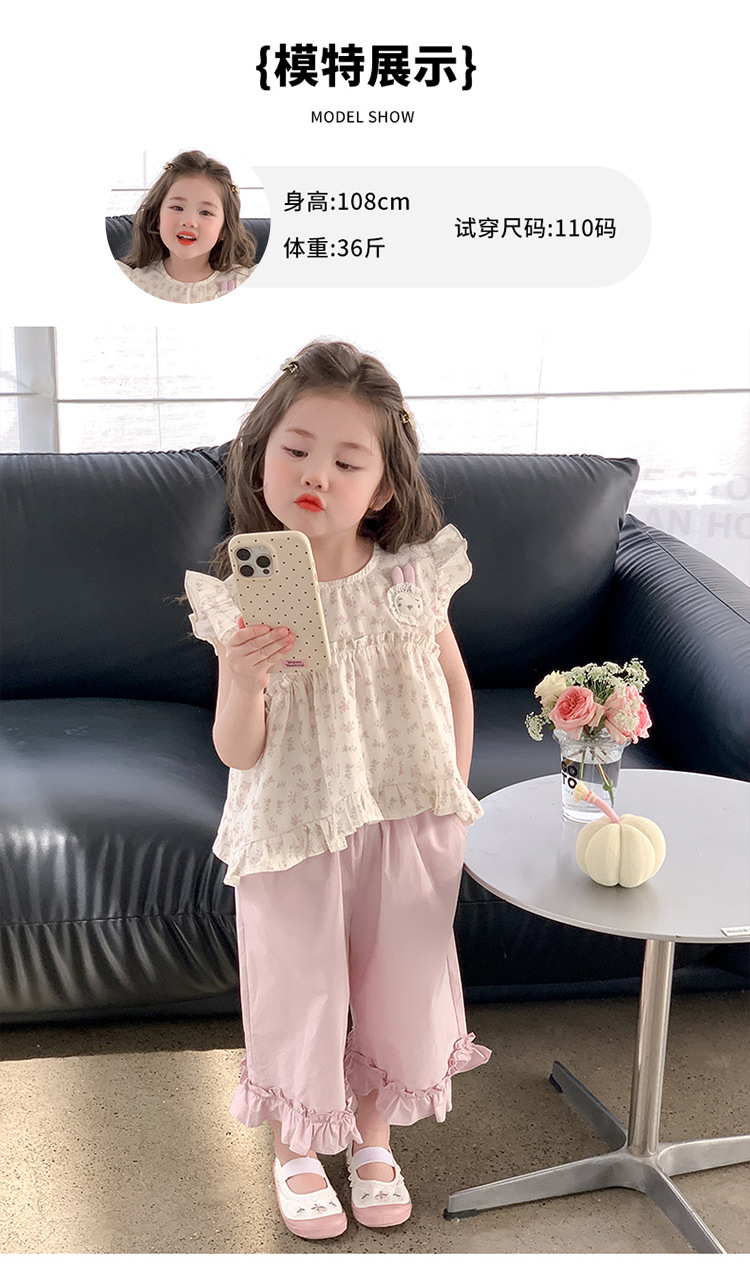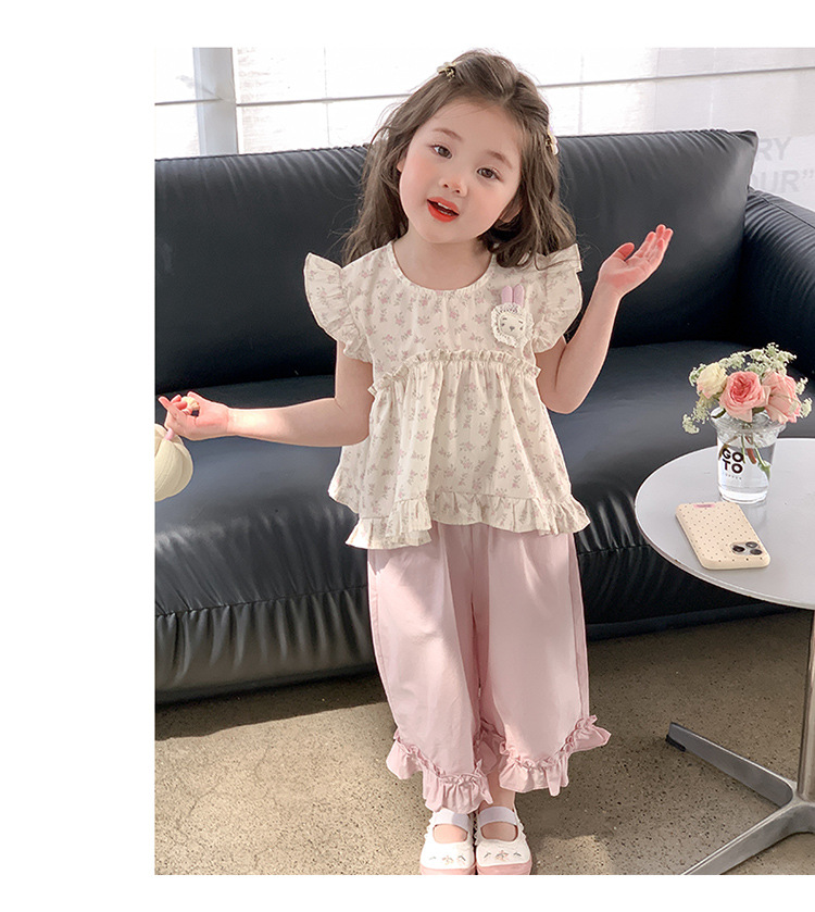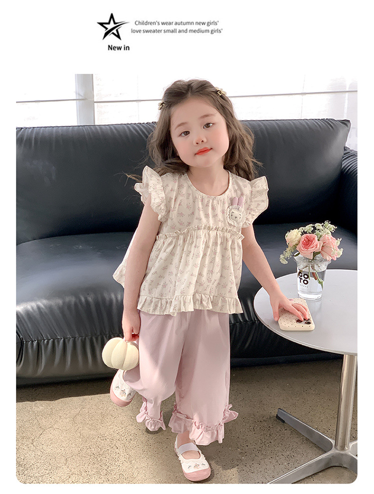 여자 토끼 꽃 세트 2025 여름 새로운 패션 소녀 세련된 두 조각 세트 어린이 여름 원피스스토어 가기