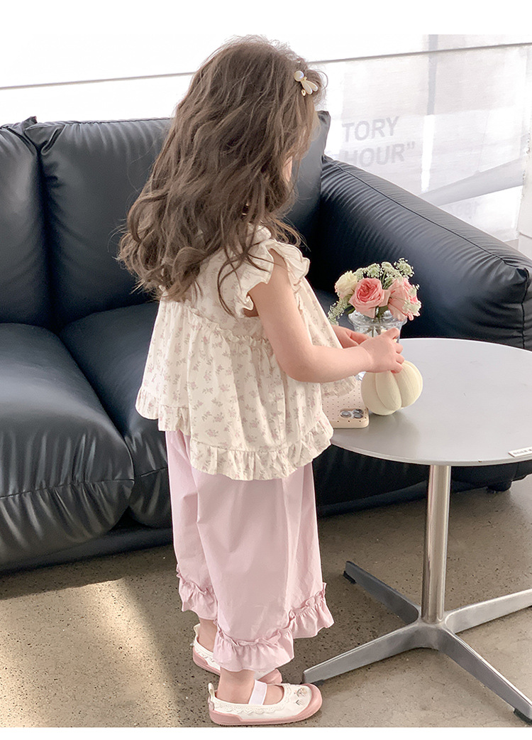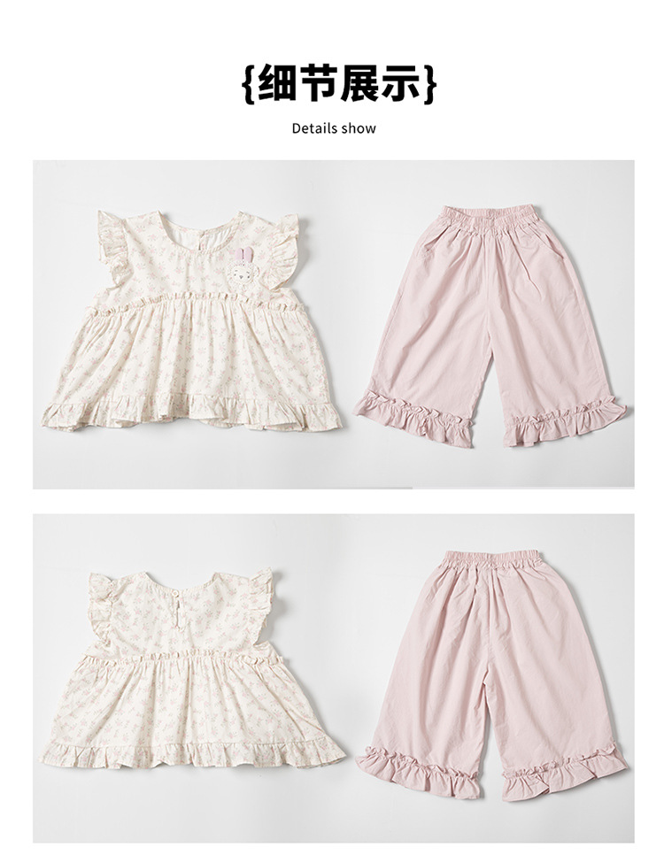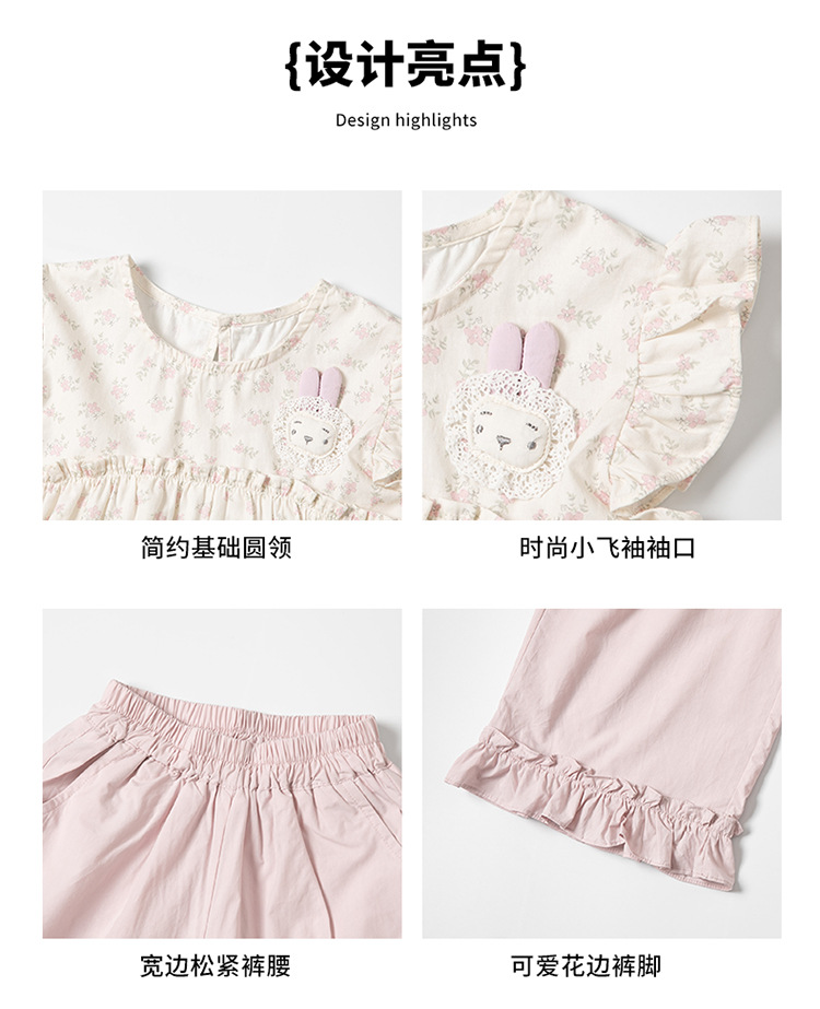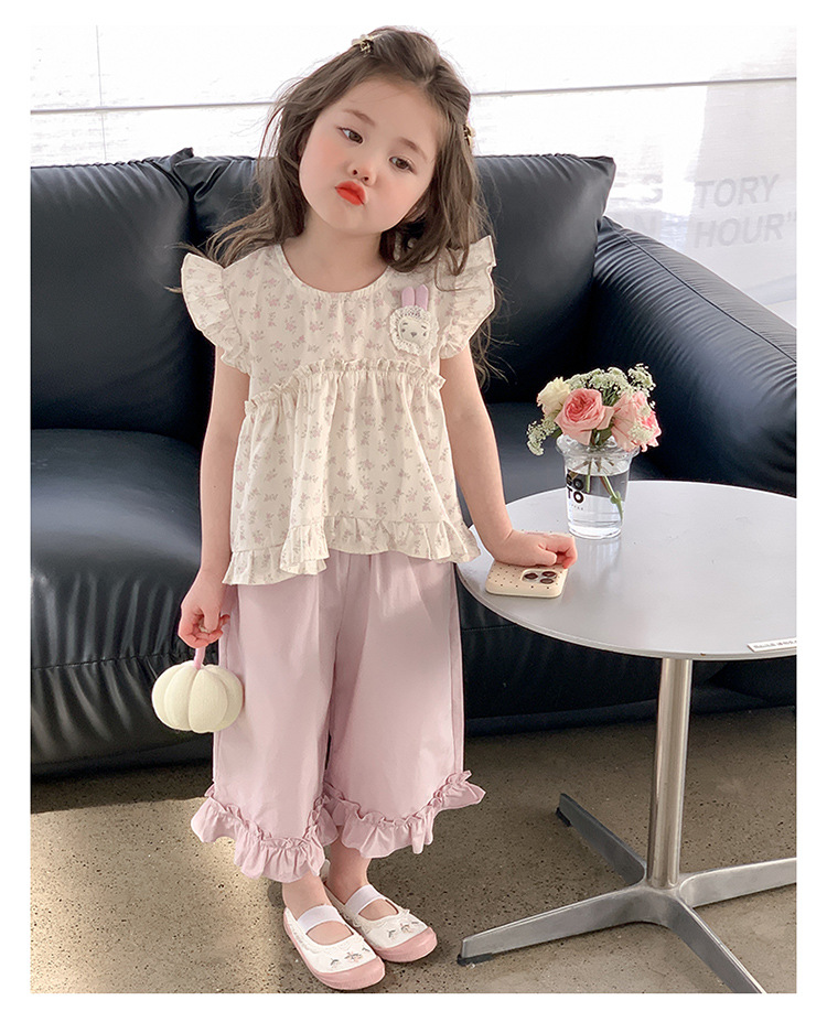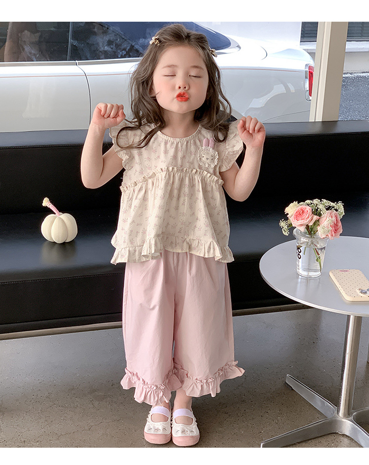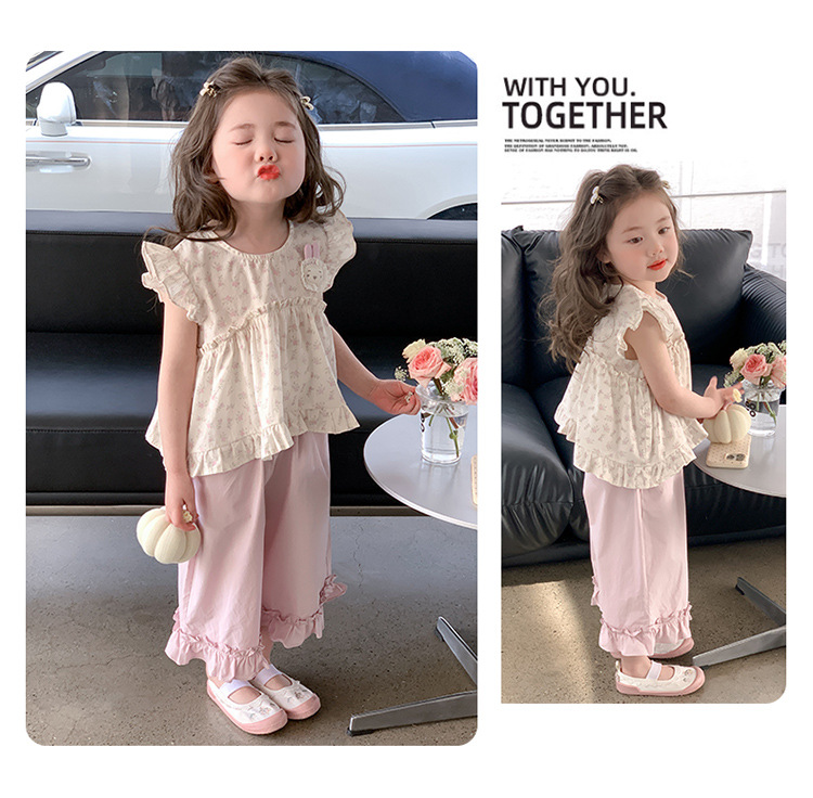여자 토끼 꽃 세트 2025 여름 새로운 패션 소녀 세련된 두 조각 세트 어린이 여름 원피스스토어 가기