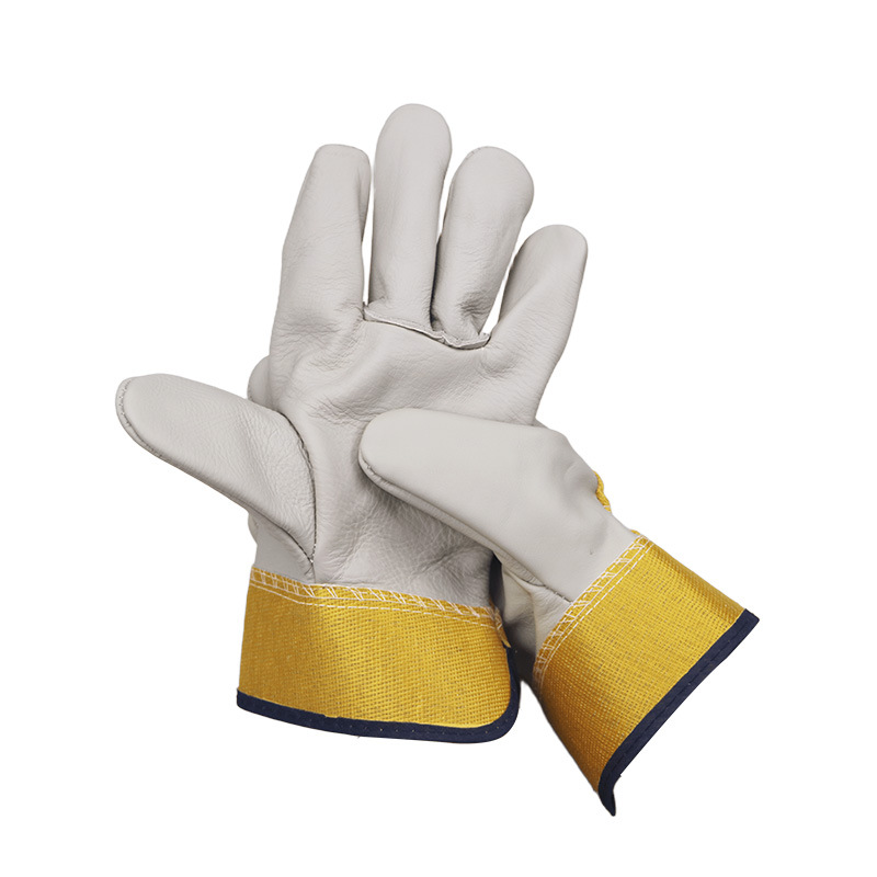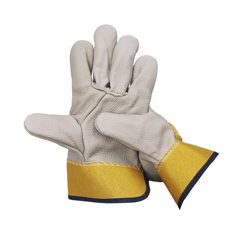 Zhongtian Dingsheng 노란색 천 1층 밝은 색상의 전체 손가락 1층 소가죽 편안하고 통기성이 뛰어난 소가죽 용접 보호 장갑