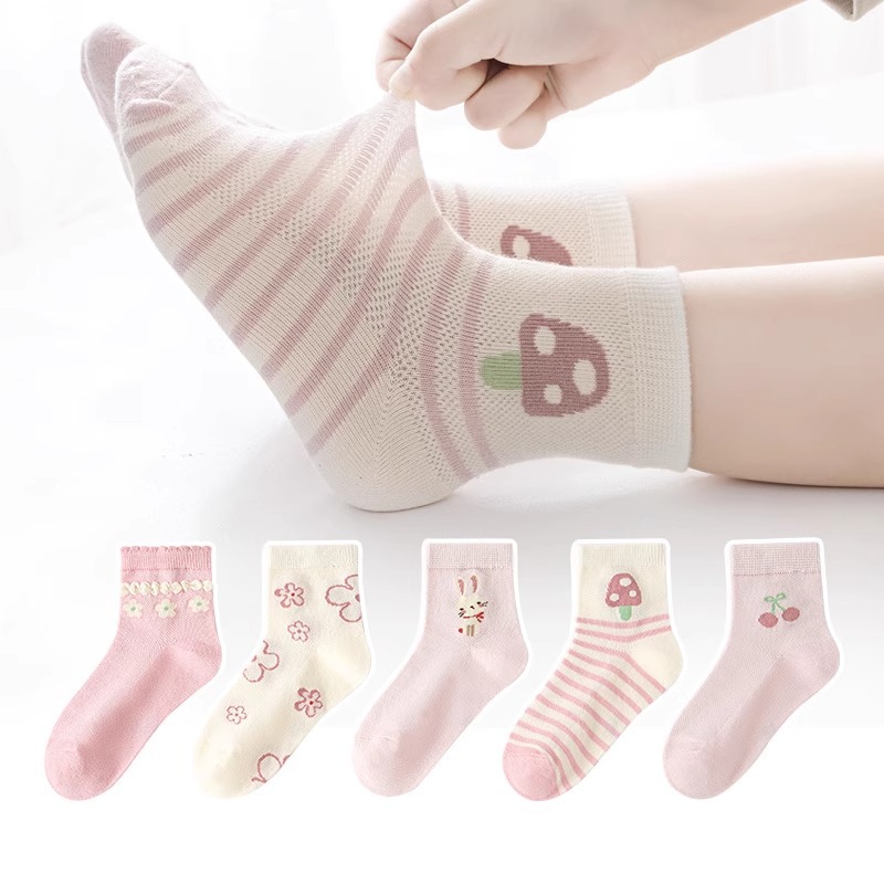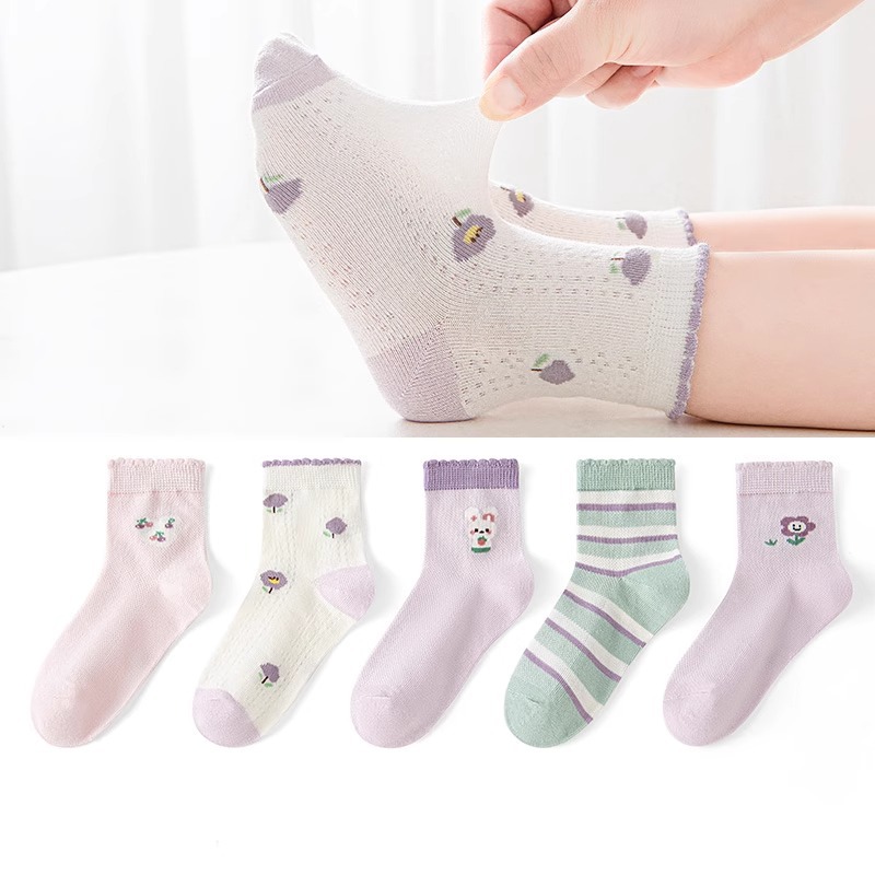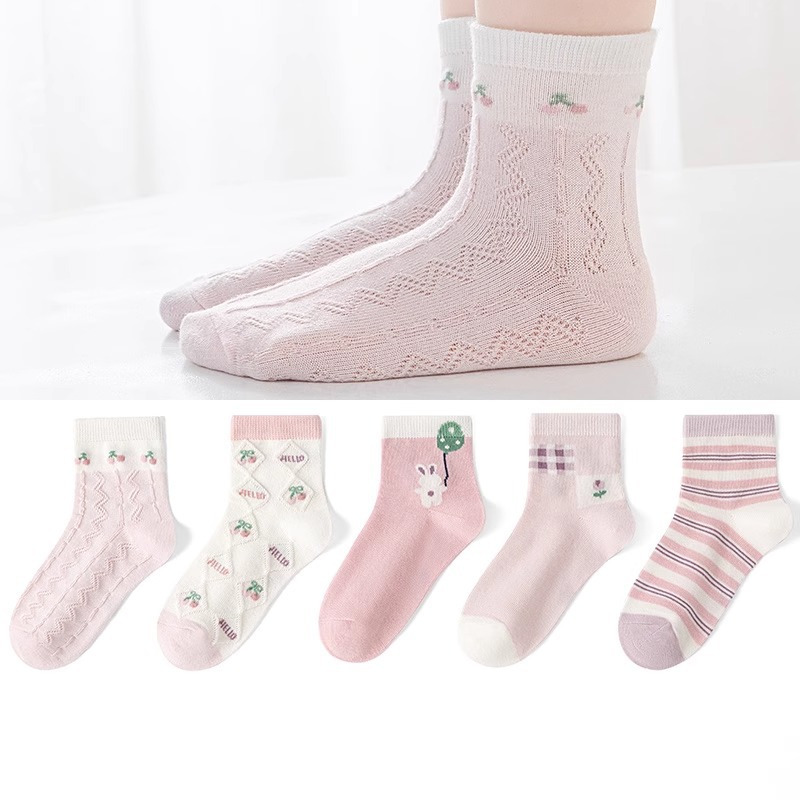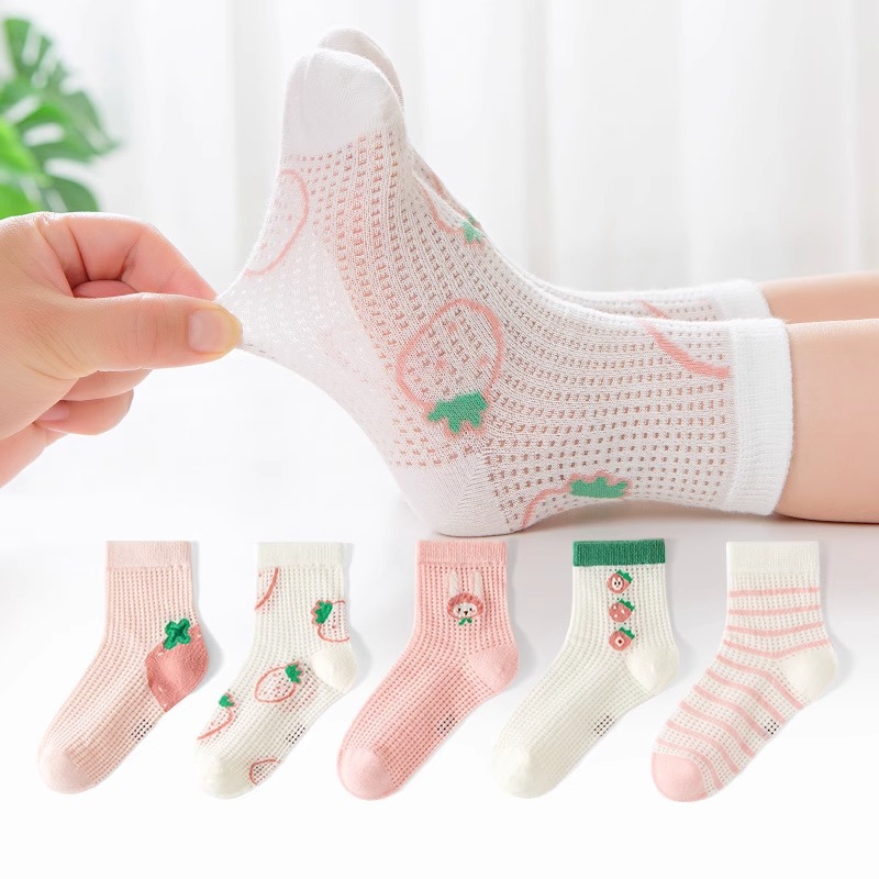 여섯 손가락 쥐 양말 도매 어린이 양말 소녀 봄과 여름 아기 소녀 메쉬 중간 튜브면 양말