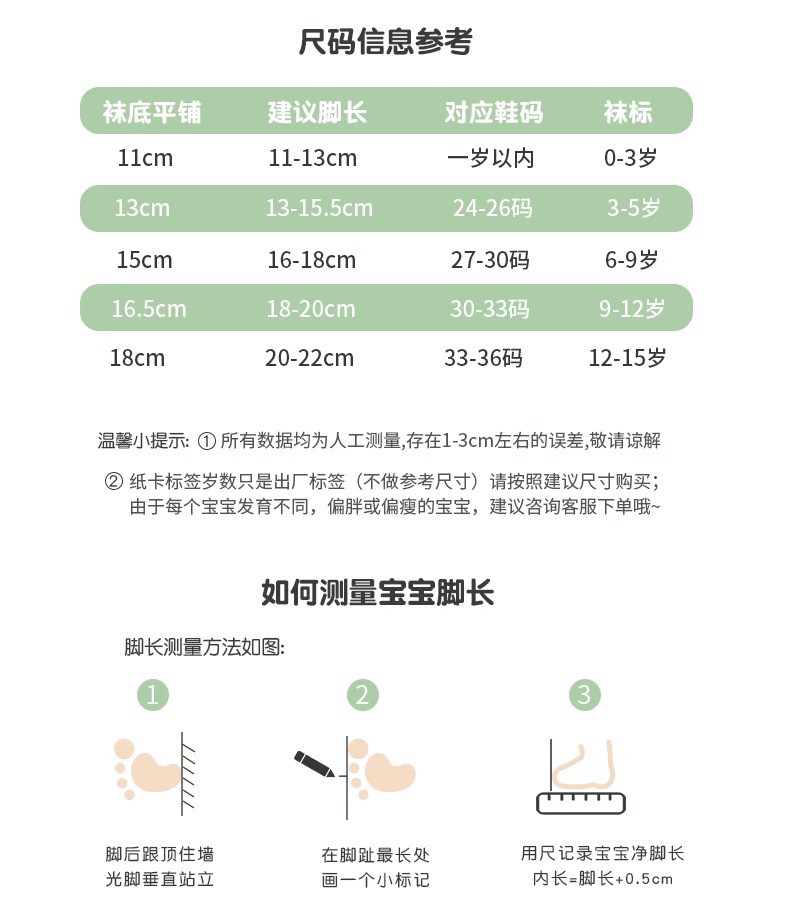• 양말 마크 0-3, 참고 신발 사이즈 18-22