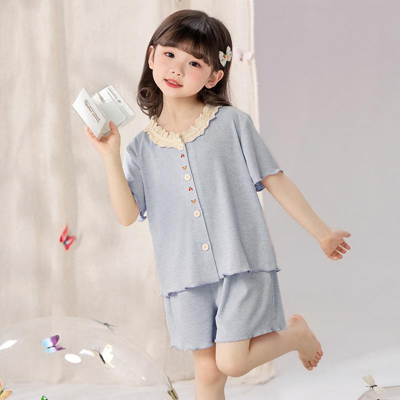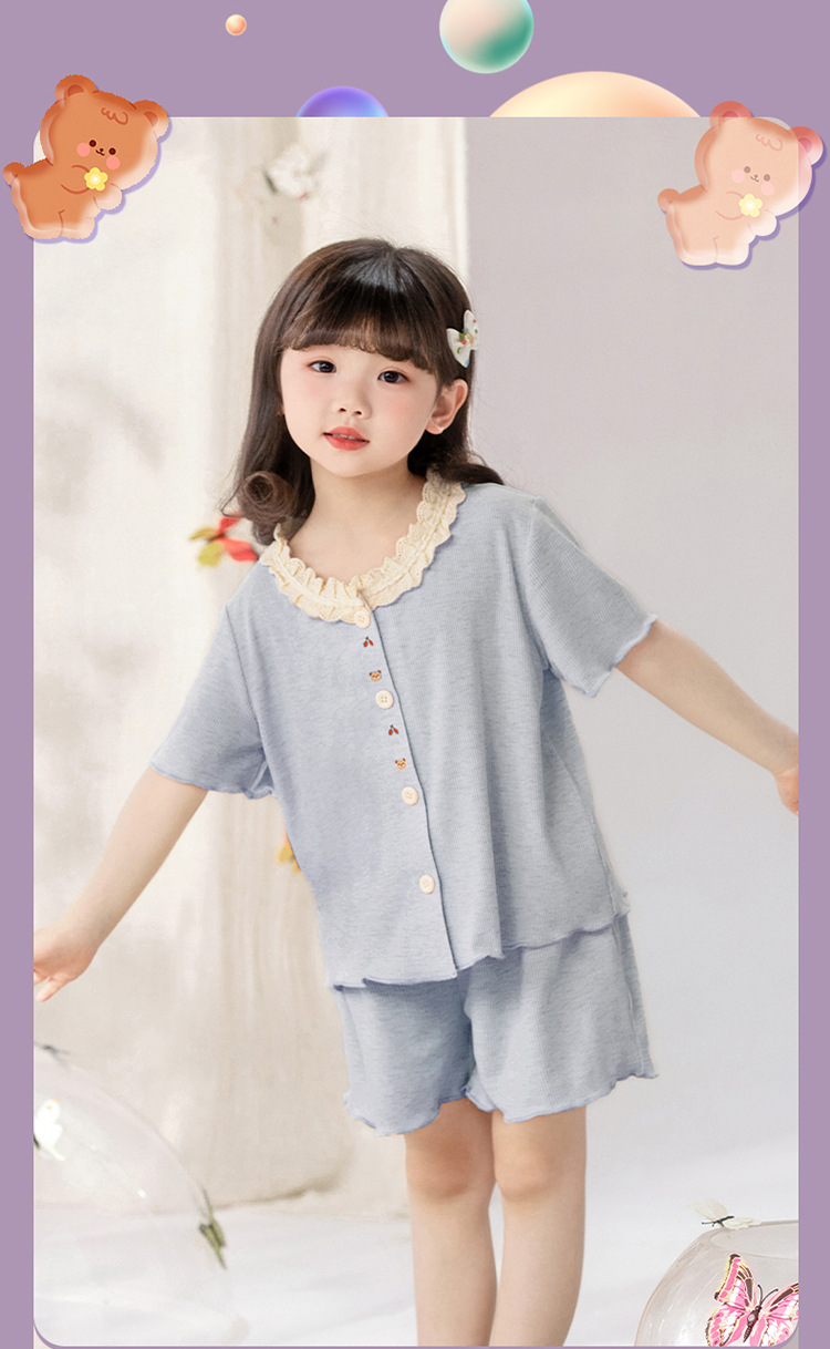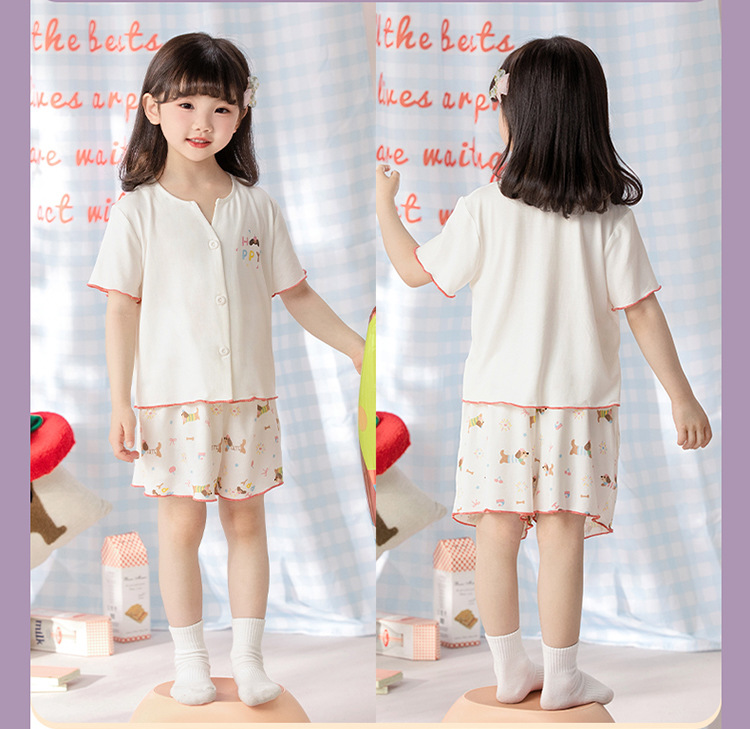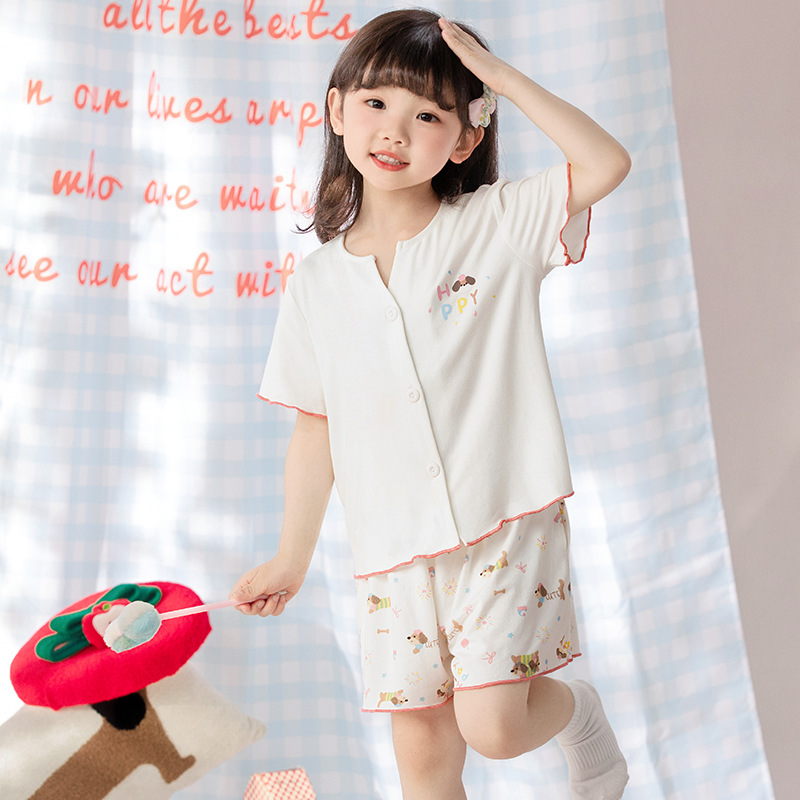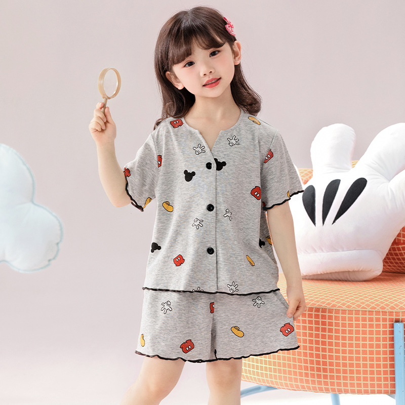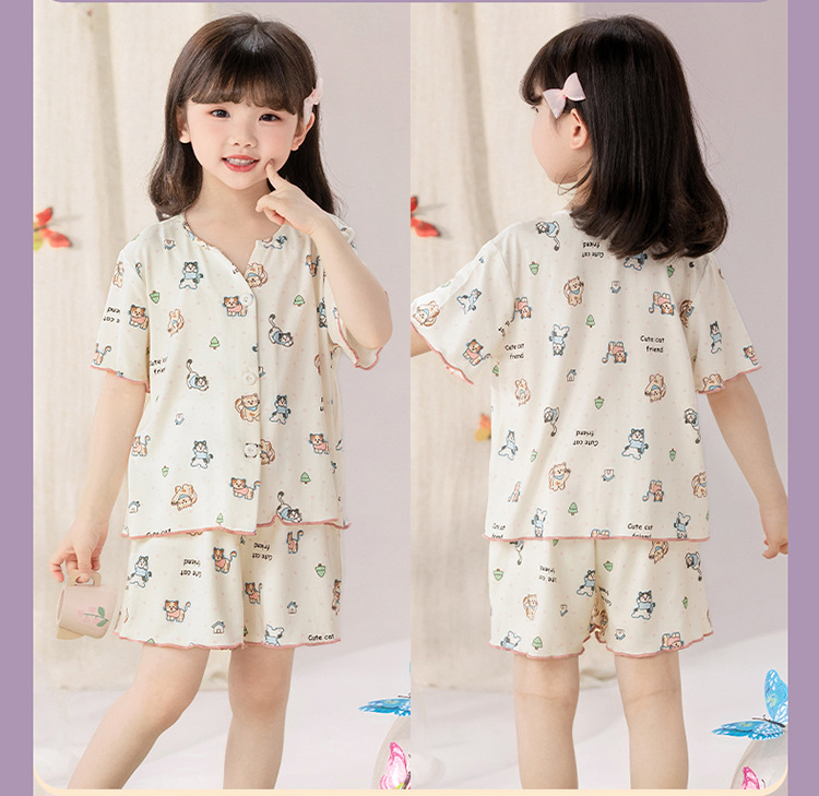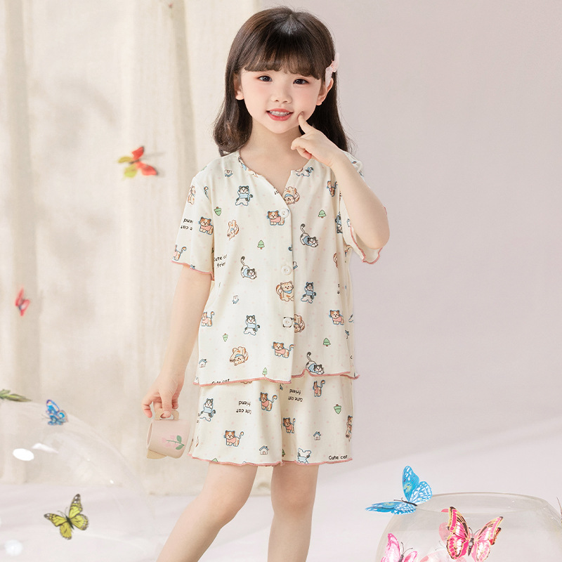 여자 잠옷 모달 반팔 카디건 귀여운 만화 어린이 가정 의류 어린 소녀 얇은 중형 및 대형 아동복스토어 가기