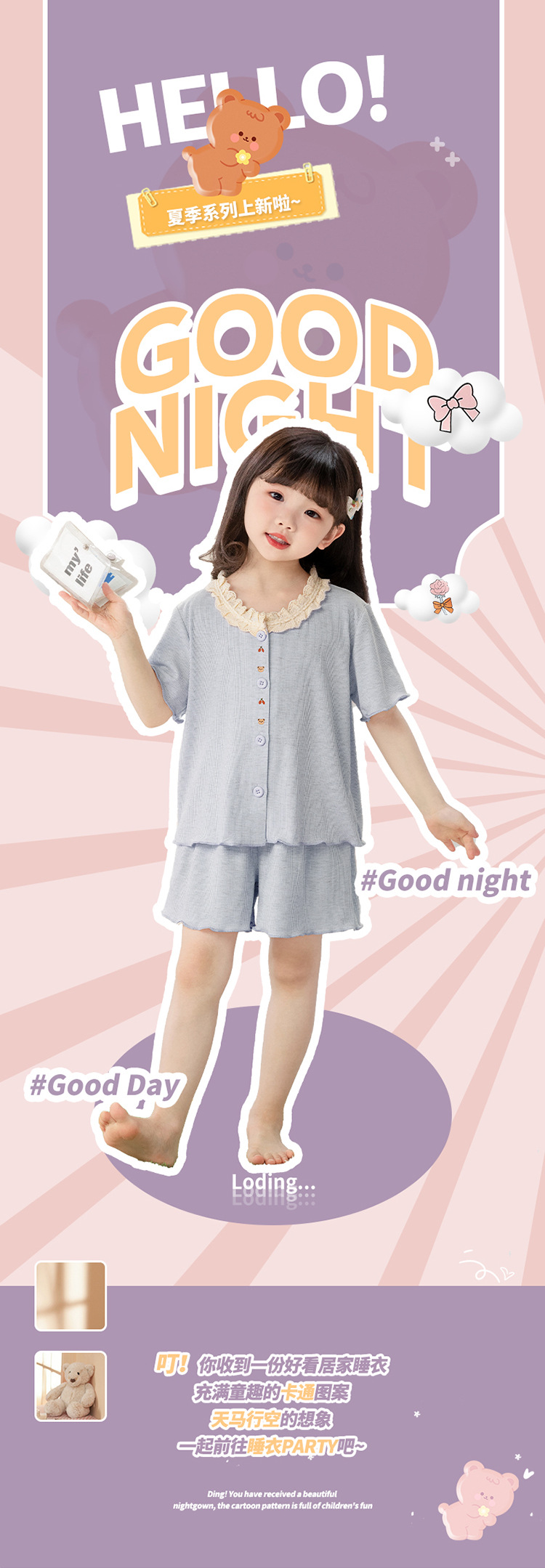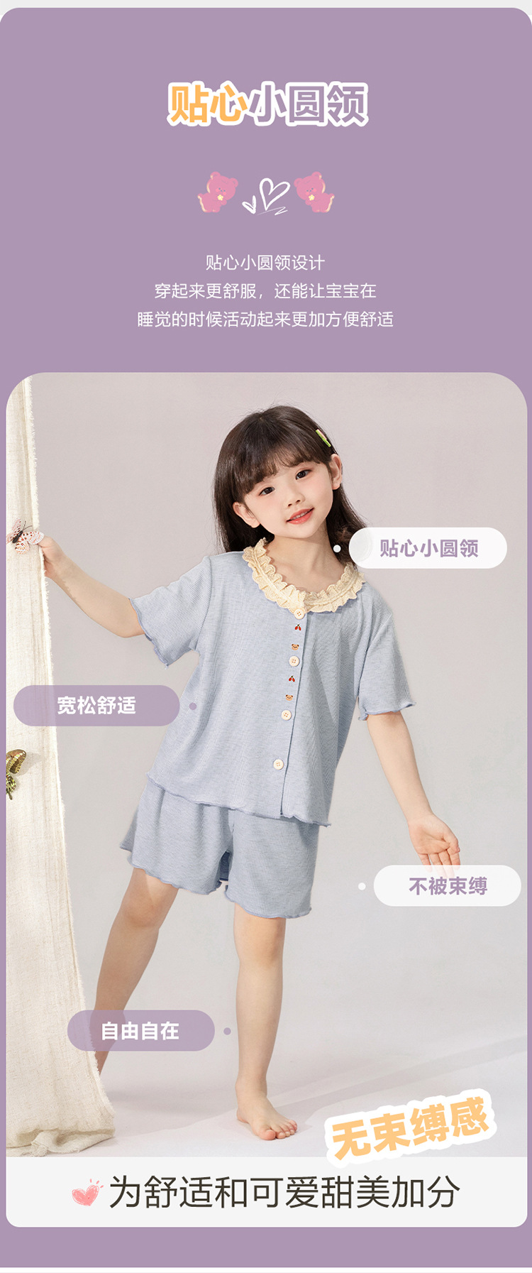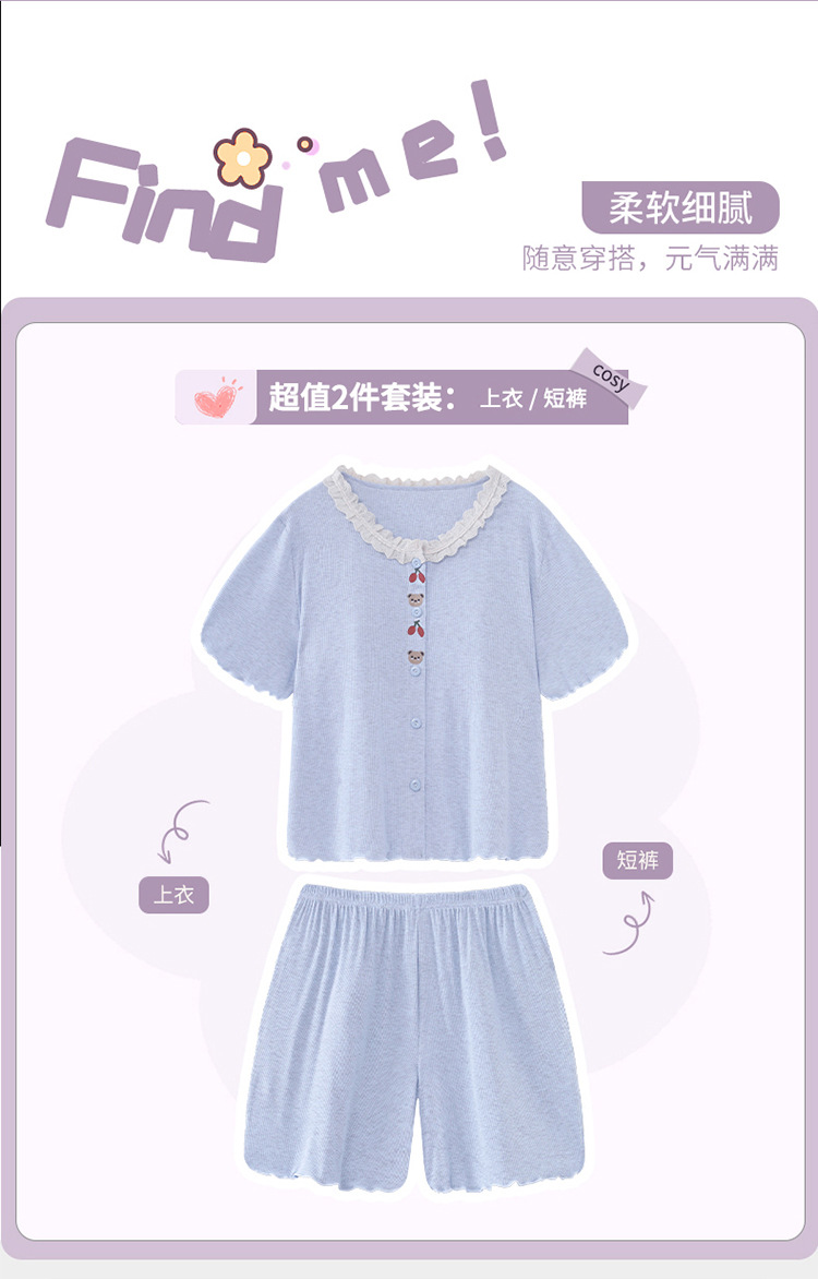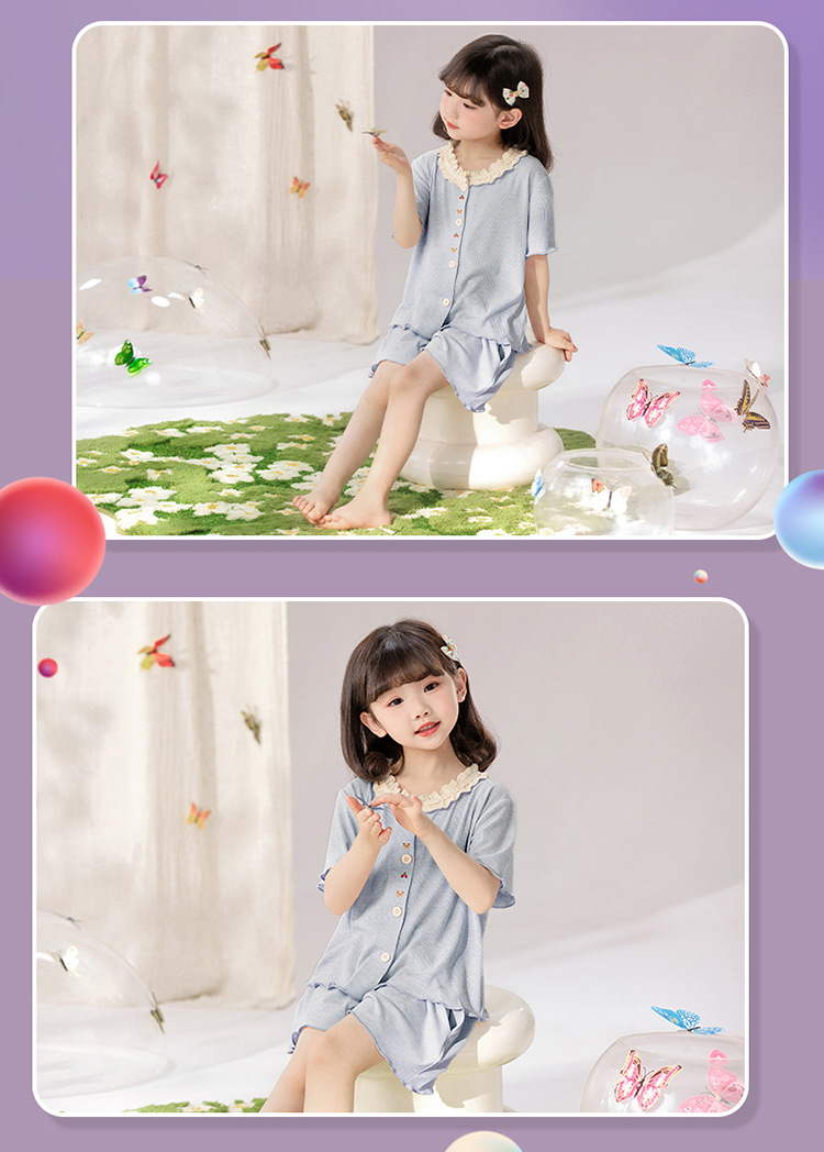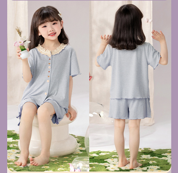 여자 잠옷 모달 반팔 카디건 귀여운 만화 어린이 가정 의류 어린 소녀 얇은 중형 및 대형 아동복스토어 가기