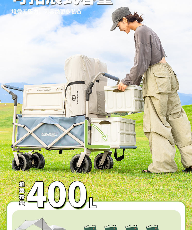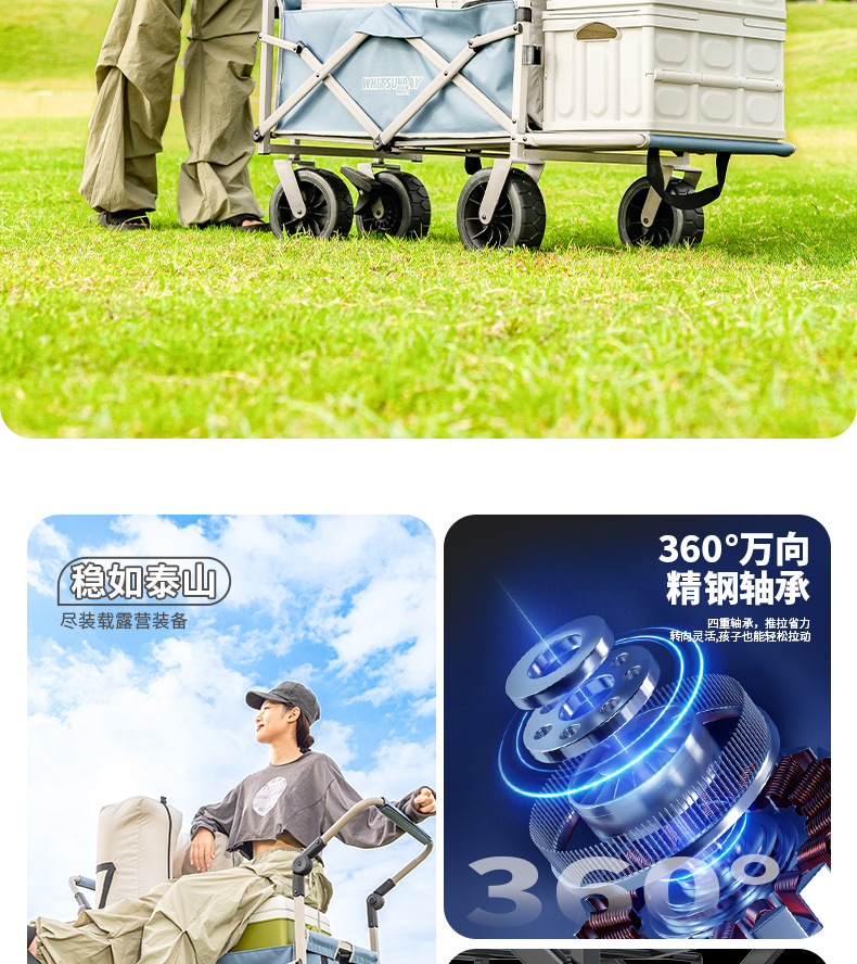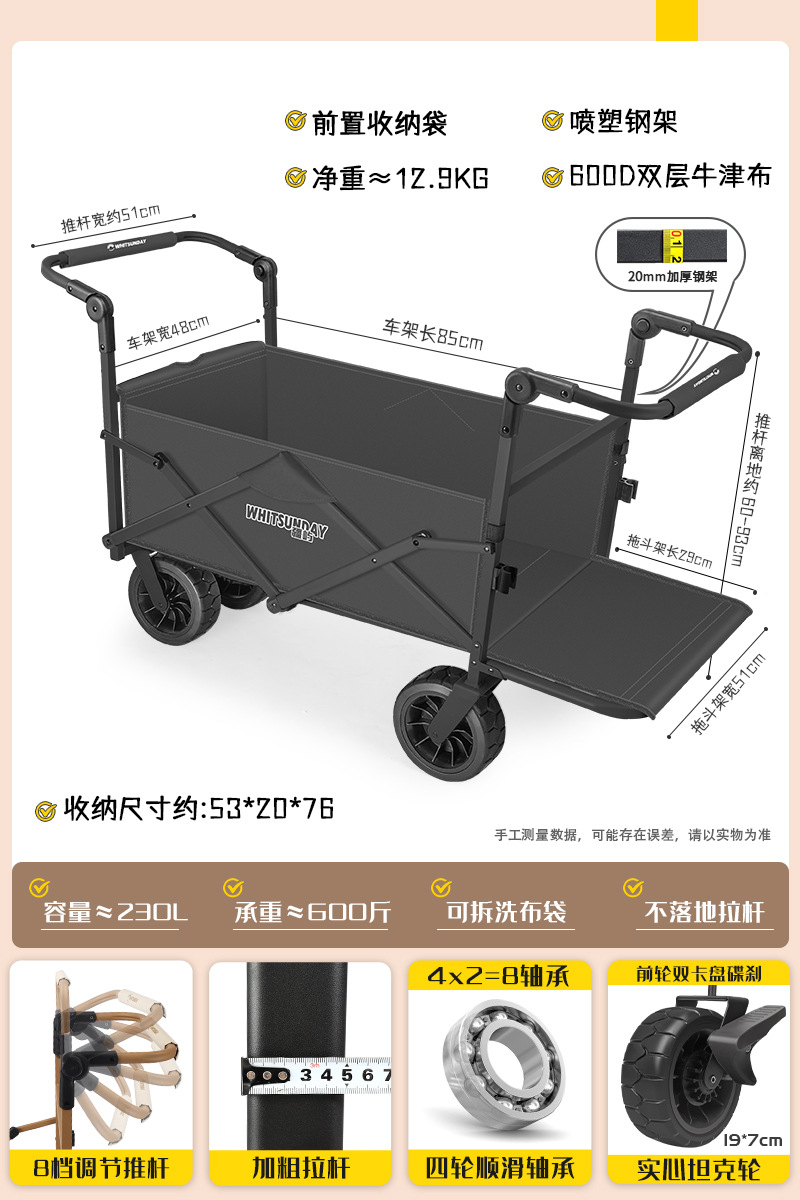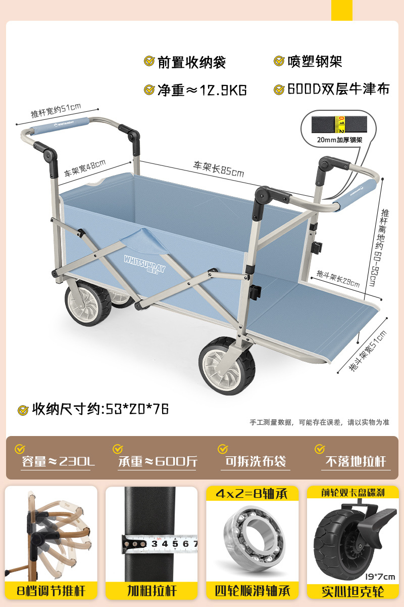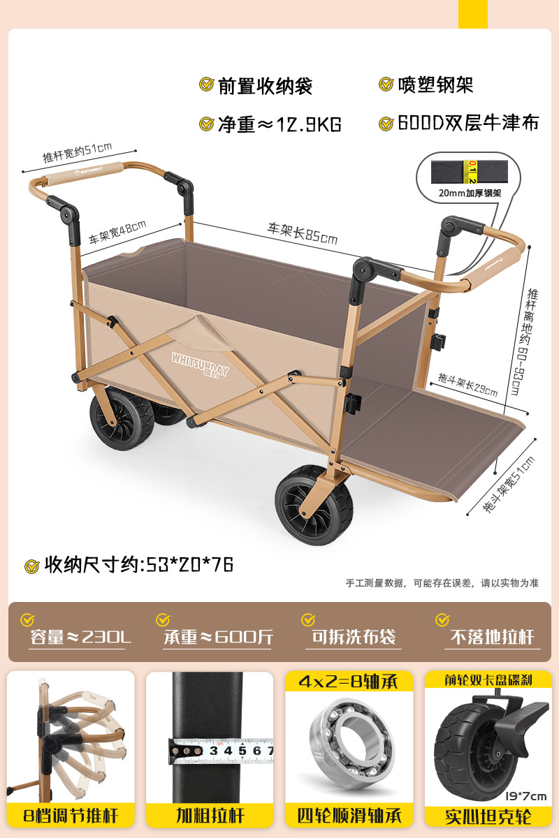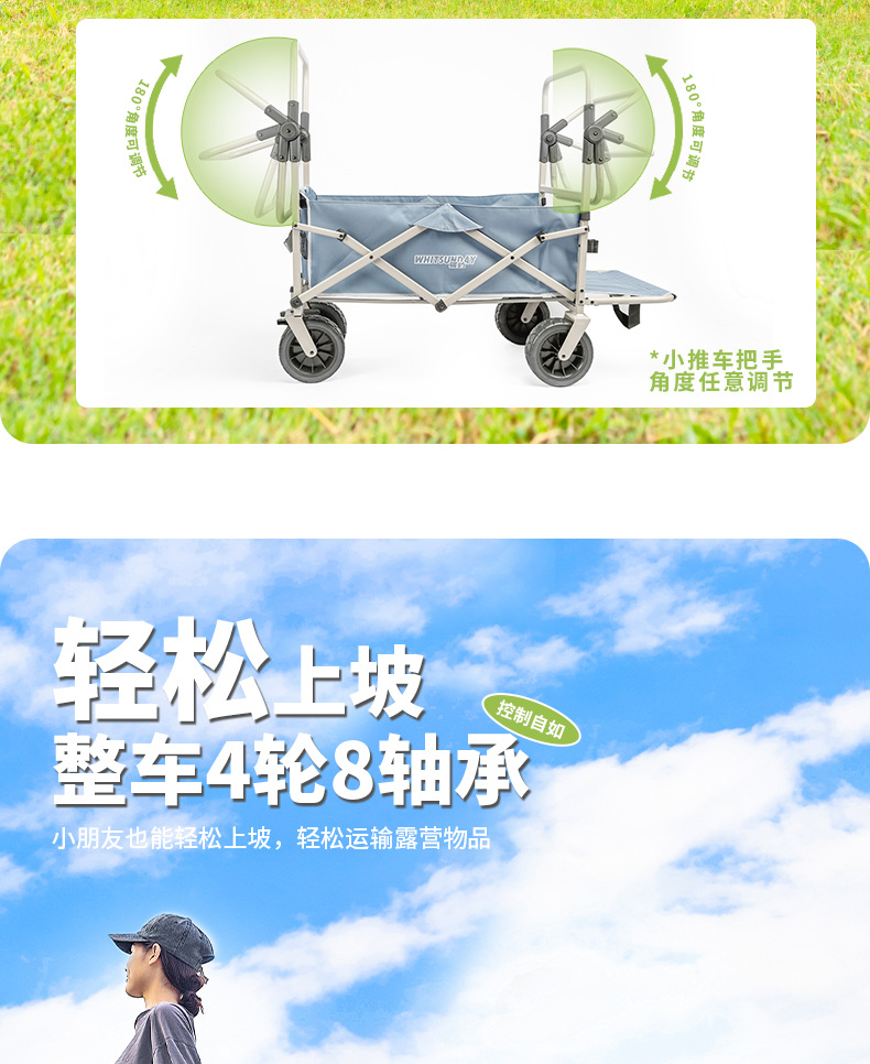 Jiangyu 야외 접이식 트롤리에는 캠핑카에 앉을 수 있고 어린이는 캠핑카에 누워서 밀고 당길 수 있습니다.스토어 가기