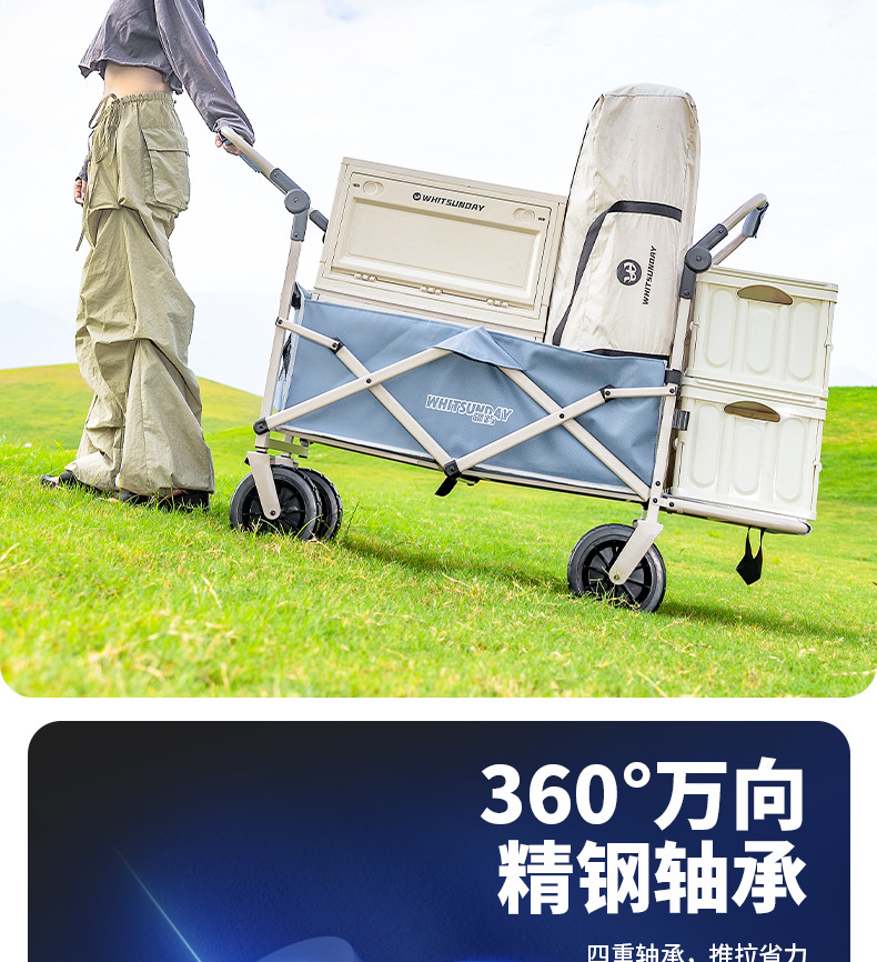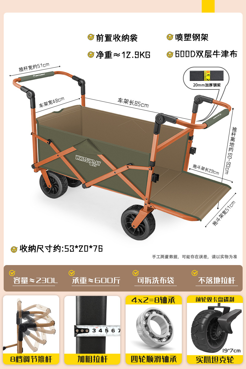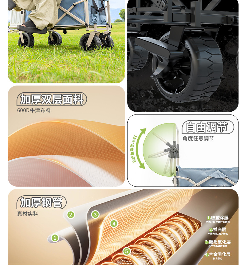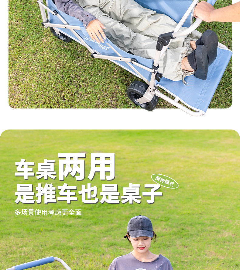 Jiangyu 야외 접이식 트롤리에는 캠핑카에 앉을 수 있고 어린이는 캠핑카에 누워서 밀고 당길 수 있습니다.