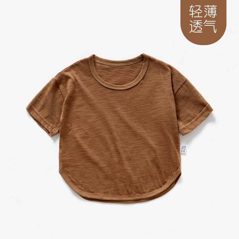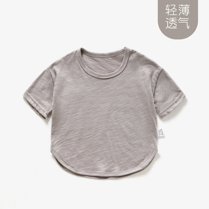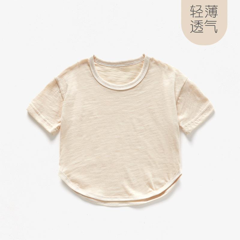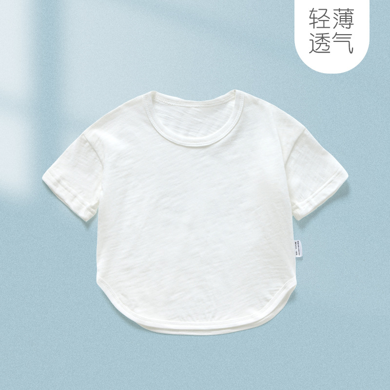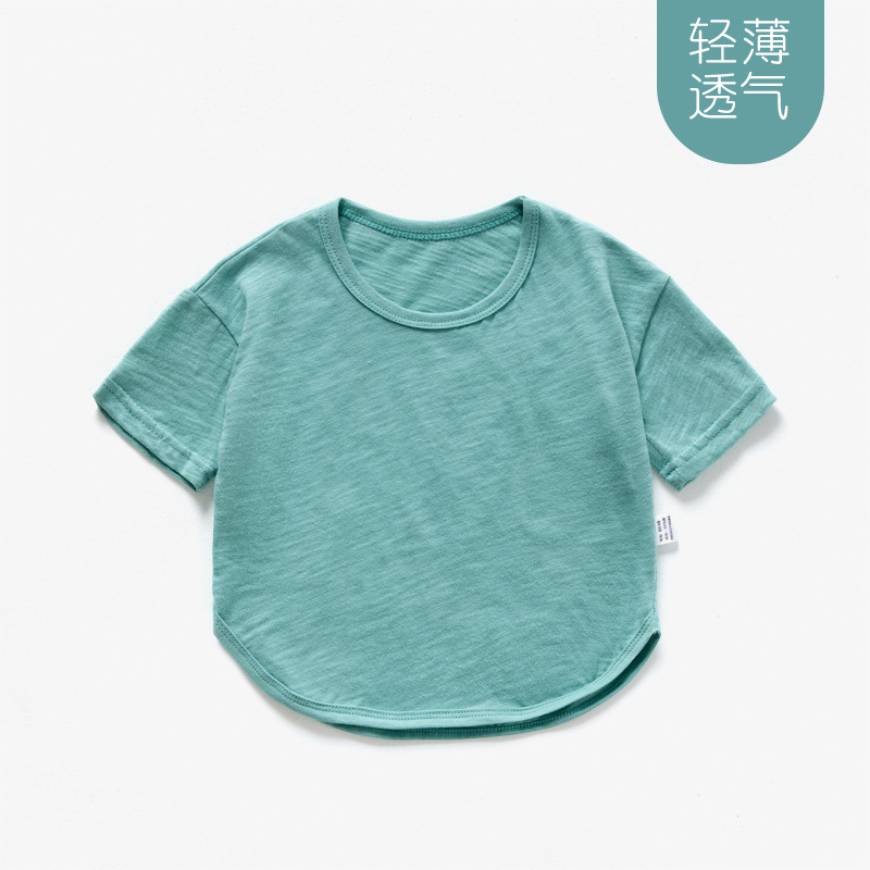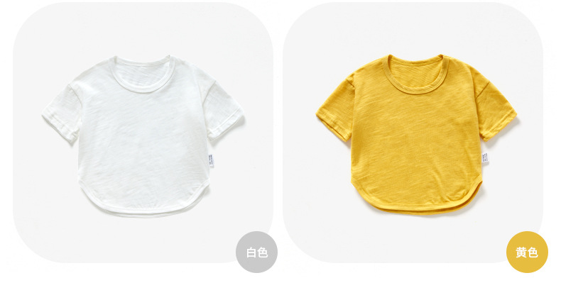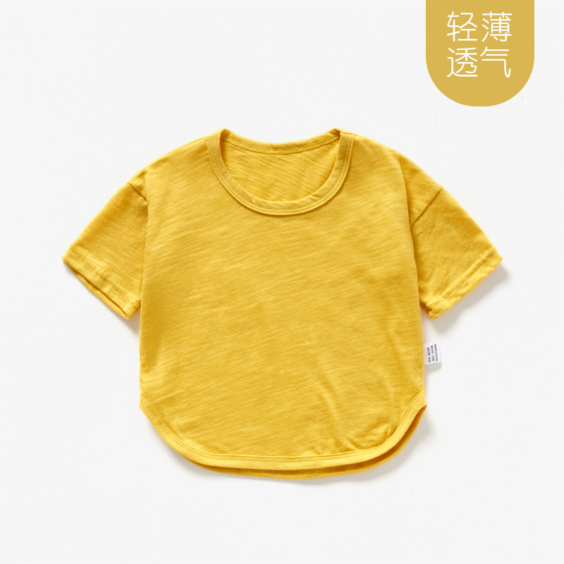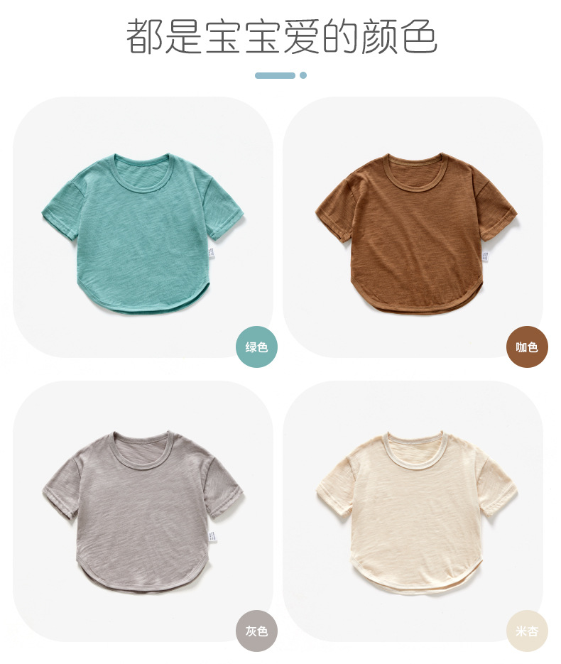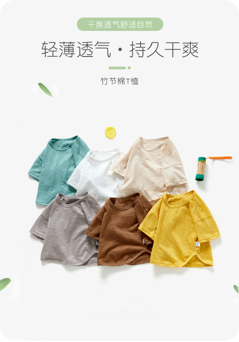 초박형 남아 여름 티셔츠, 유아용 반팔 상의, 대나무면 여아 반팔 한국식 단색 유아복 카테고리 A