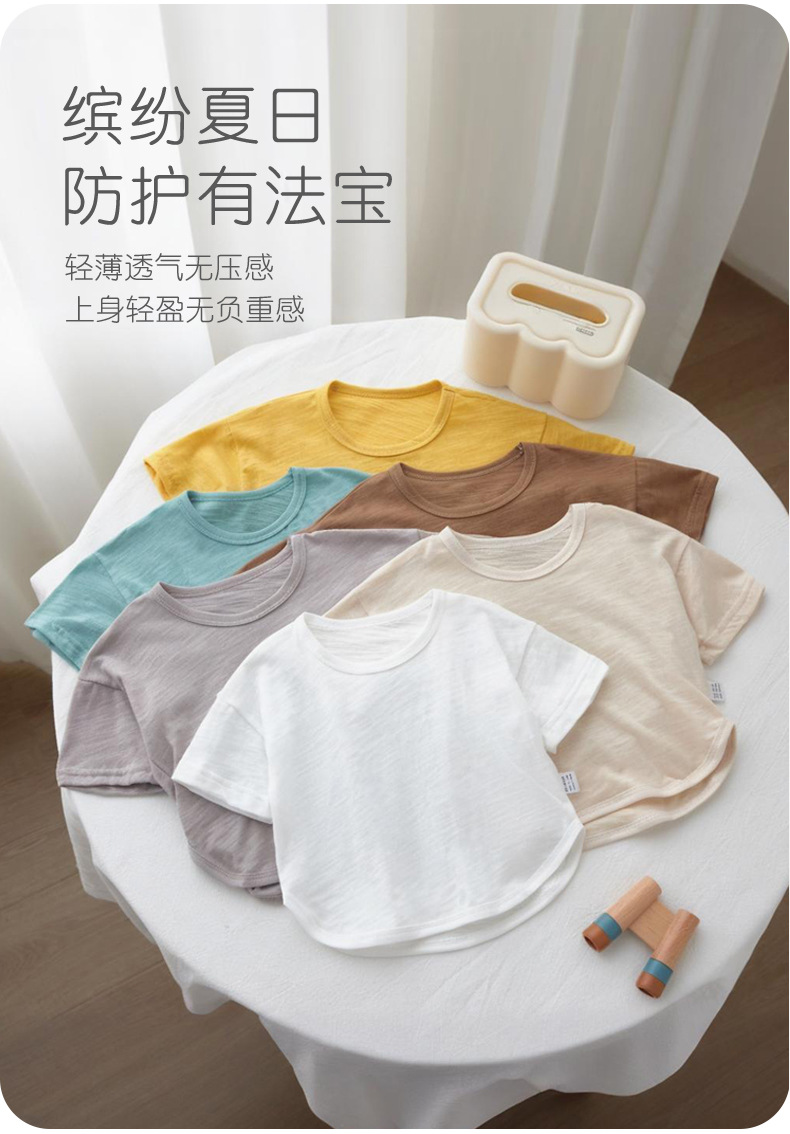 초박형 남아 여름 티셔츠, 유아용 반팔 상의, 대나무면 여아 반팔 한국식 단색 유아복 카테고리 A스토어 가기