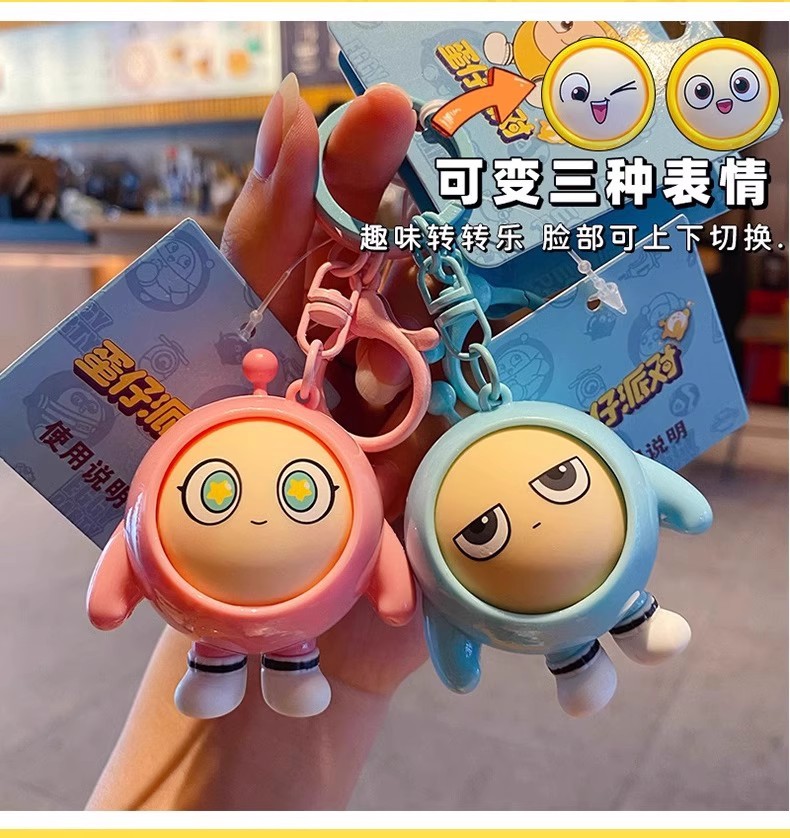 정품 만화 계란 파티 얼굴 변경 인형 키 체인 가방 작은 펜던트 커플 키 체인 교수형 작은 선물스토어 가기