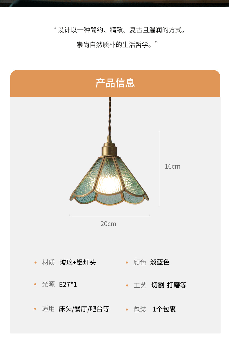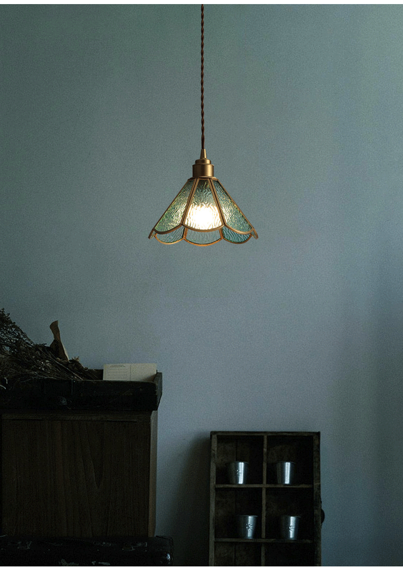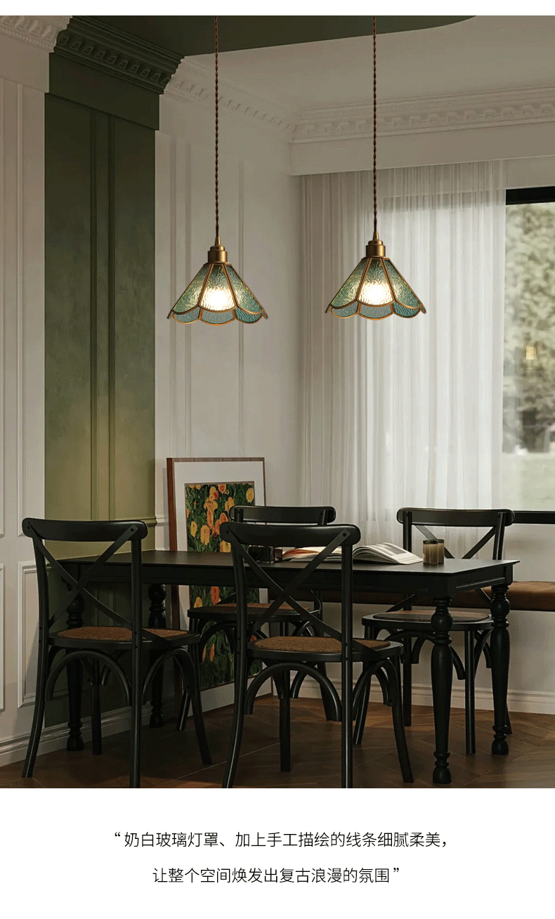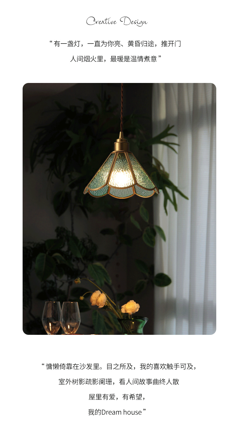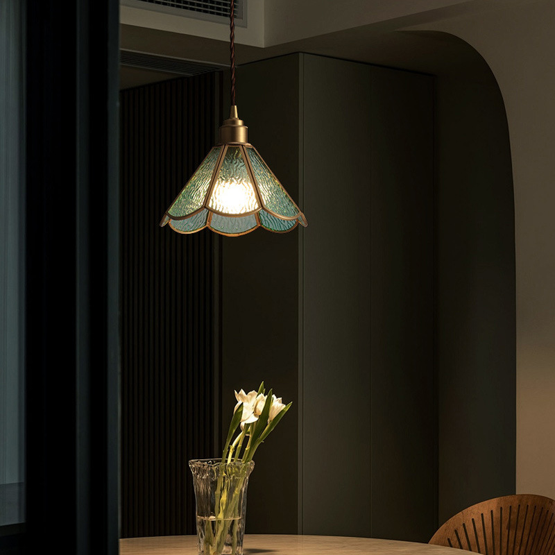 빈티지 황동 샹들리에 간단한 침실 침실 유리 램프 북유럽 통로 바 카운터 섬 테이블 중국 윈드 베이 창 램프