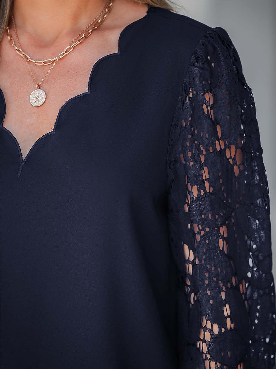 Amazon Tiktoktemu2025 새로운 유럽과 미국의 국경 간 여성 V 넥 웨이브 플라워 레이스 긴팔 셔츠스토어 가기