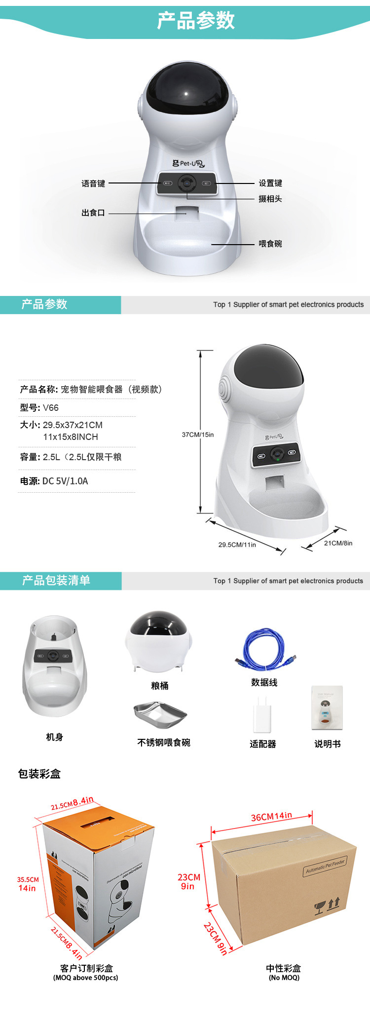 시각적 애완동물 피더 APP 원격 먹이 광각 HD 카메라 애완동물 스마트 피더스토어 가기