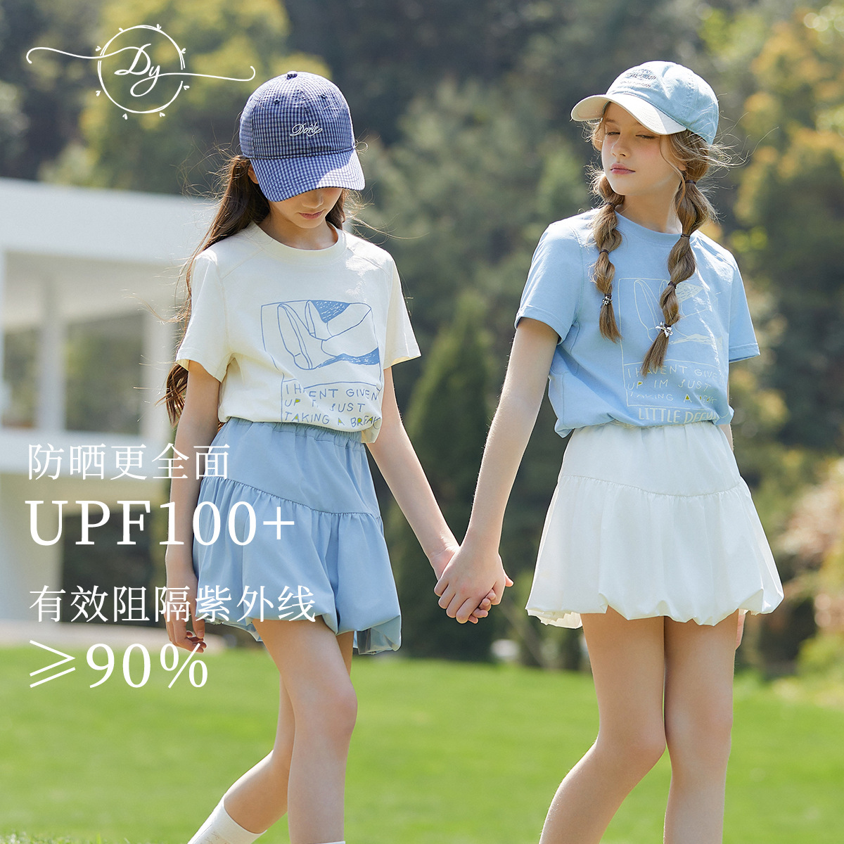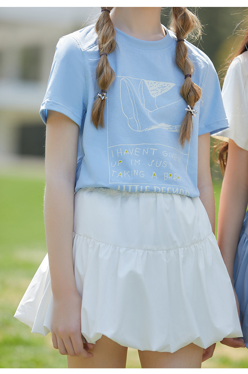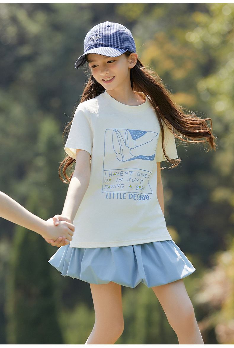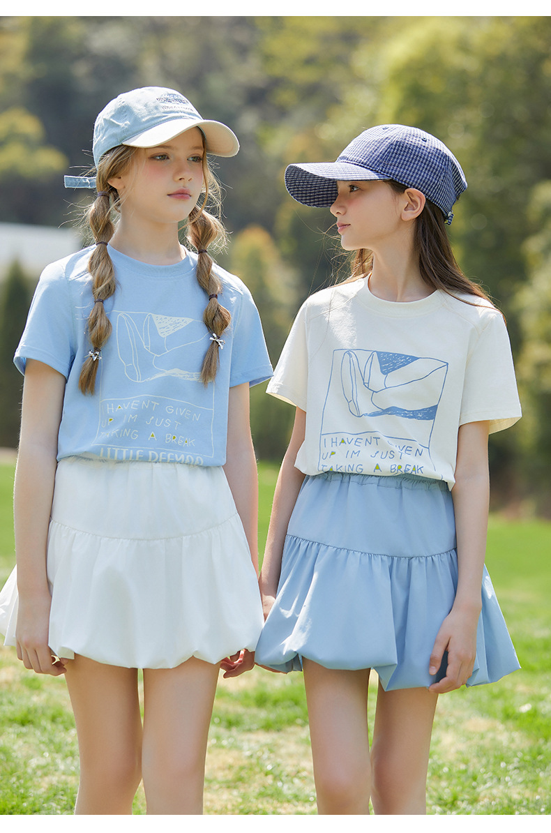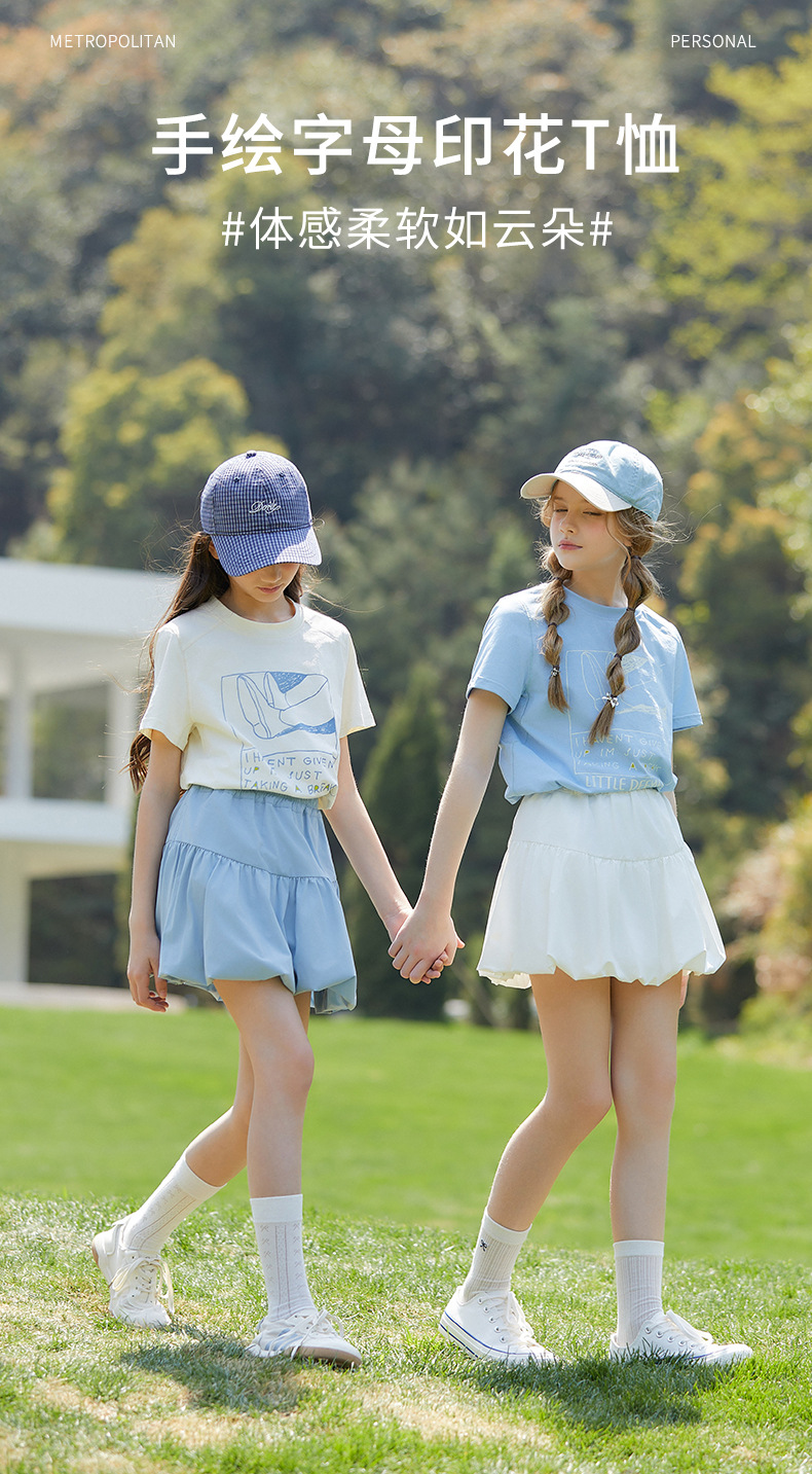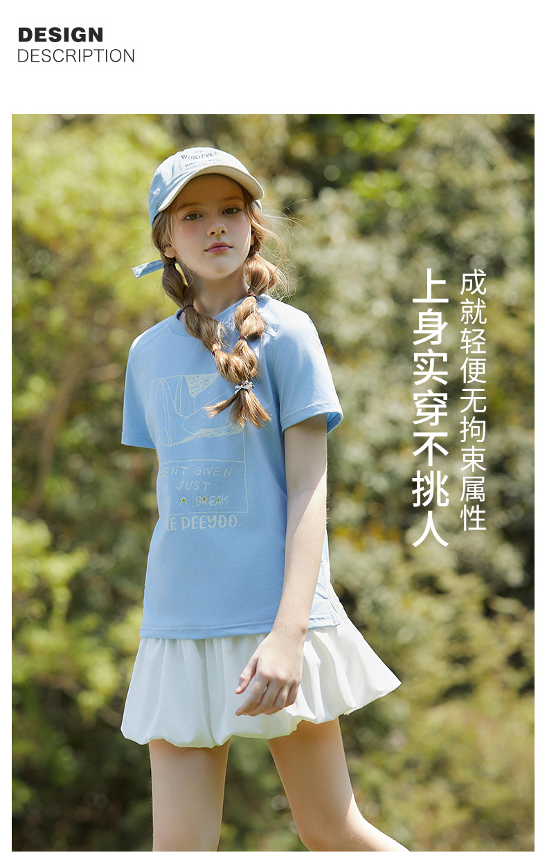 UPF100+ 여아 프린트 티셔츠 여름 자외선 차단 통기성 중대형 아동 스타일 순면 반팔 캐주얼 다용도 여름 옷스토어 가기