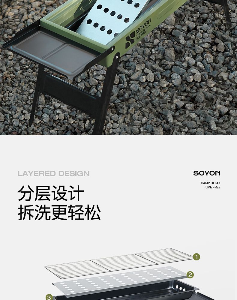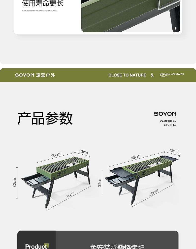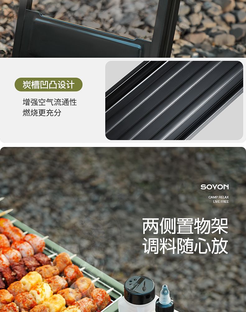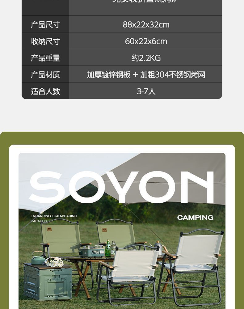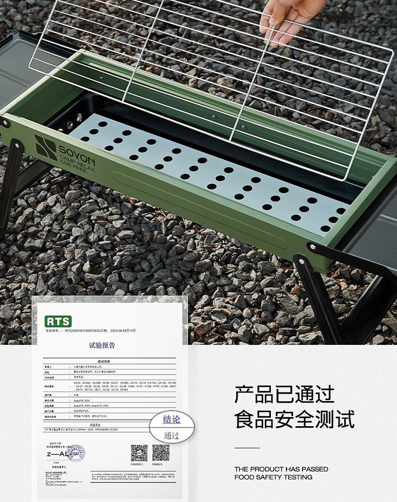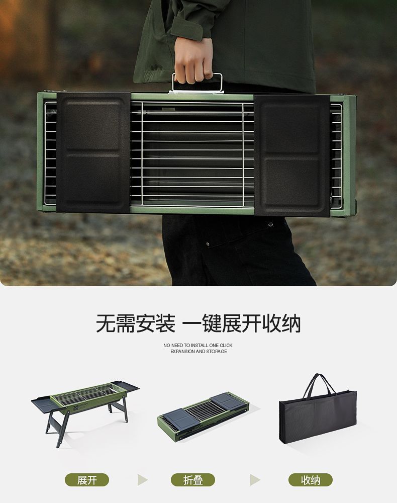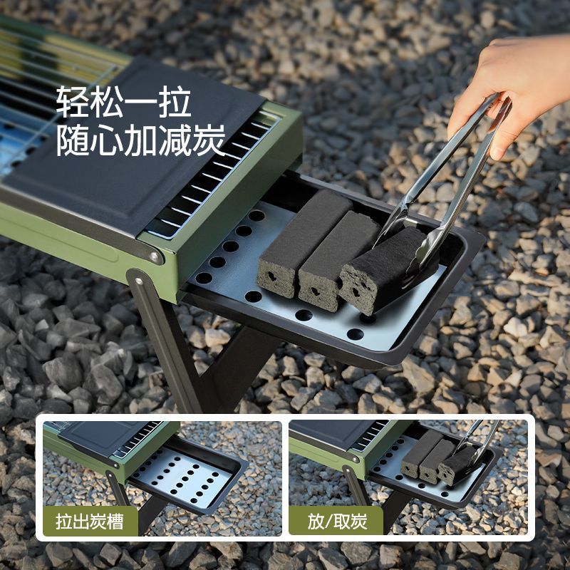 Suying 바베큐 그릴 강화 접이식 가정용 휴대용 숯 야외 디너 스토브 무연 바베큐 랙 완전한 세트