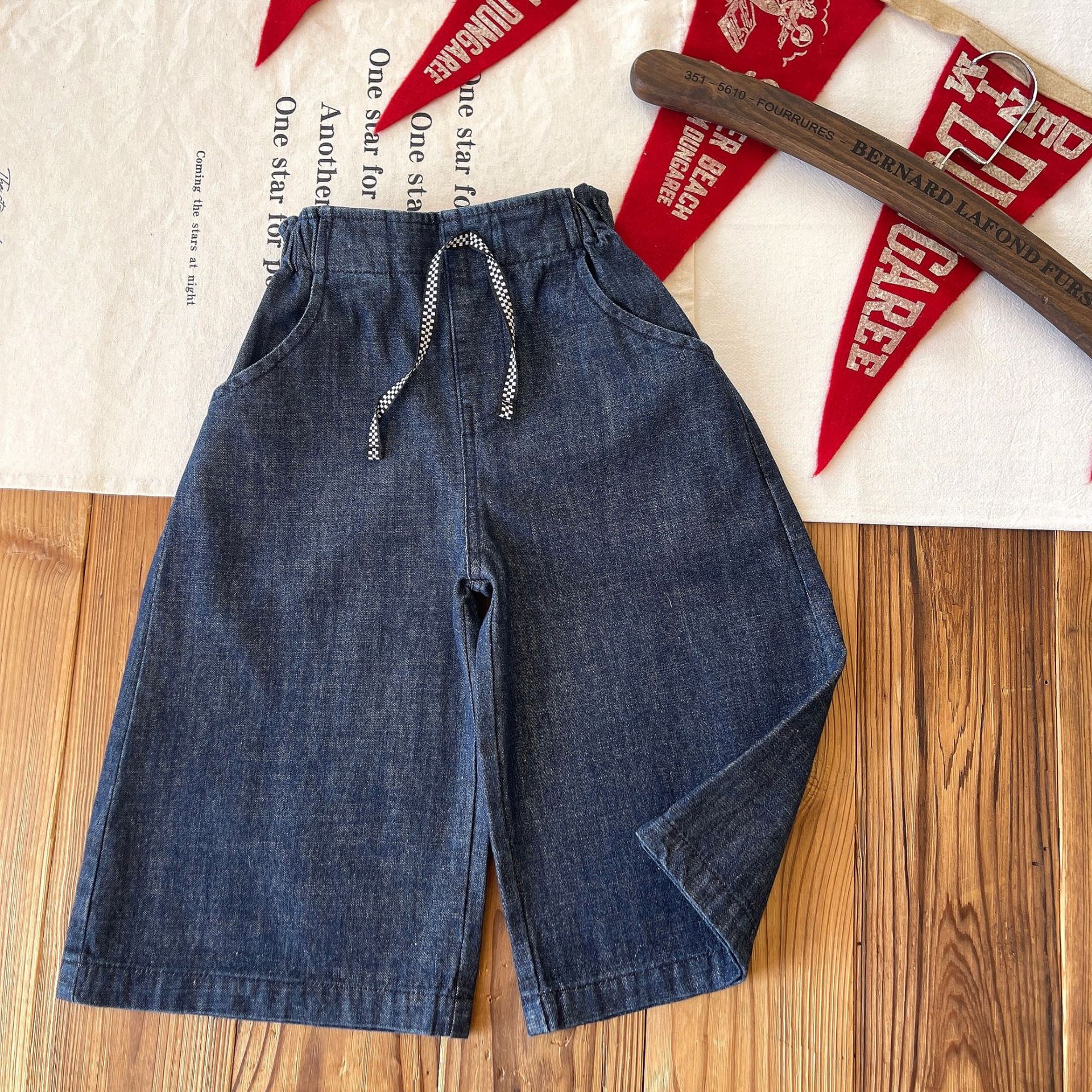 [재고 있음] 일본 중고 아동복 오리지널 컬러 와이드 레그 청바지 루즈 캐주얼 바지스토어 가기