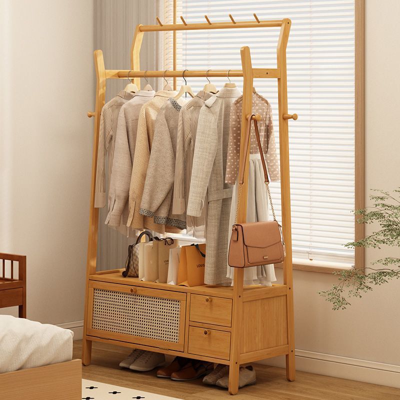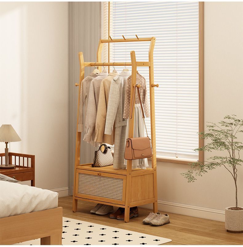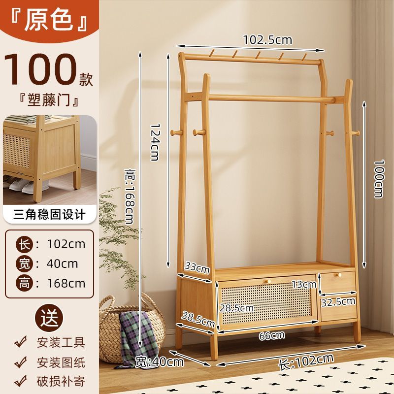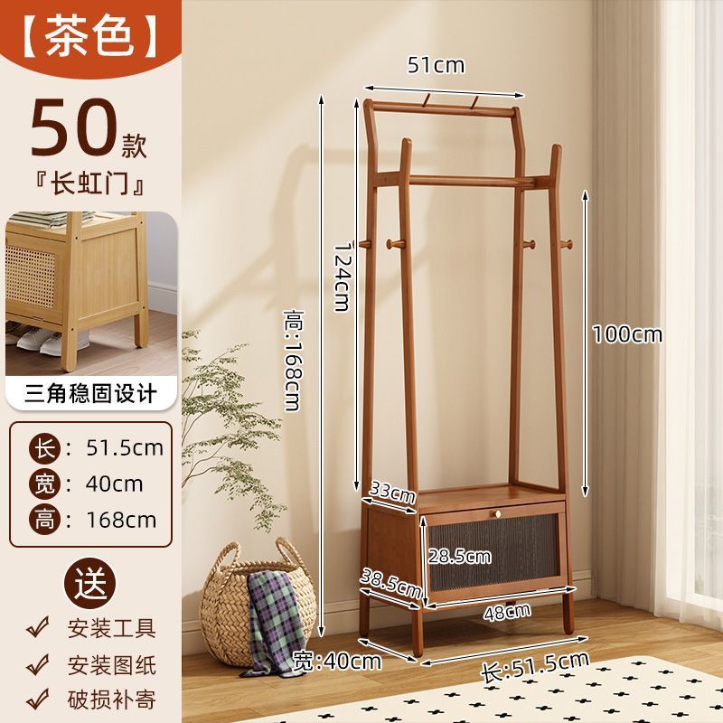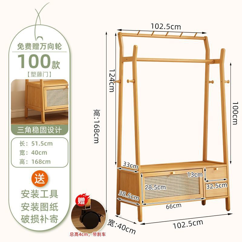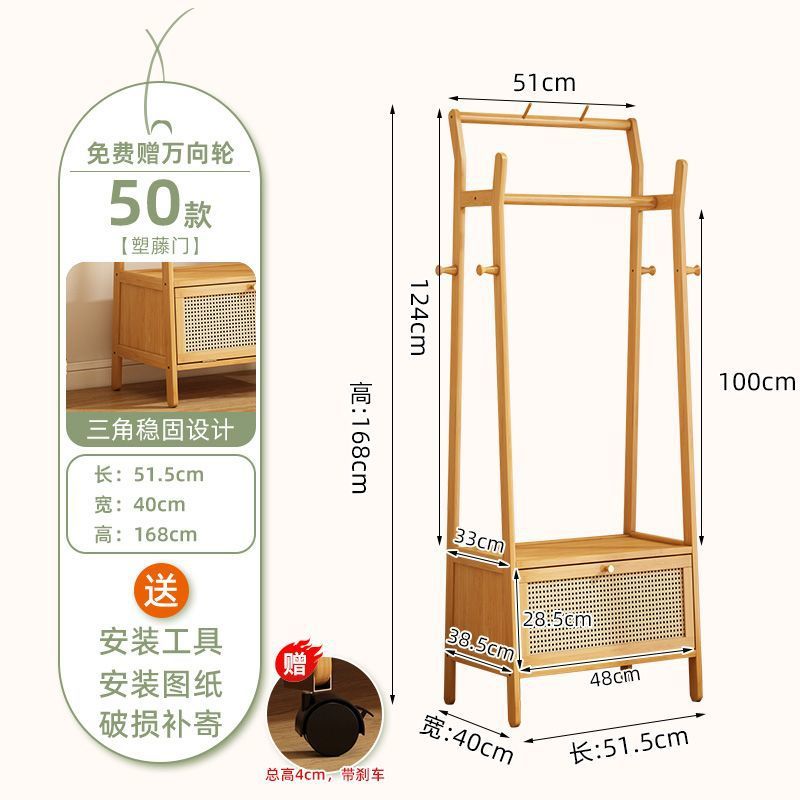 • [플로어 스탠딩 옷걸이 + 수납장] 원목 컬러 [50가지 스타일에는 무료 캐스터가 포함되어 있습니다]