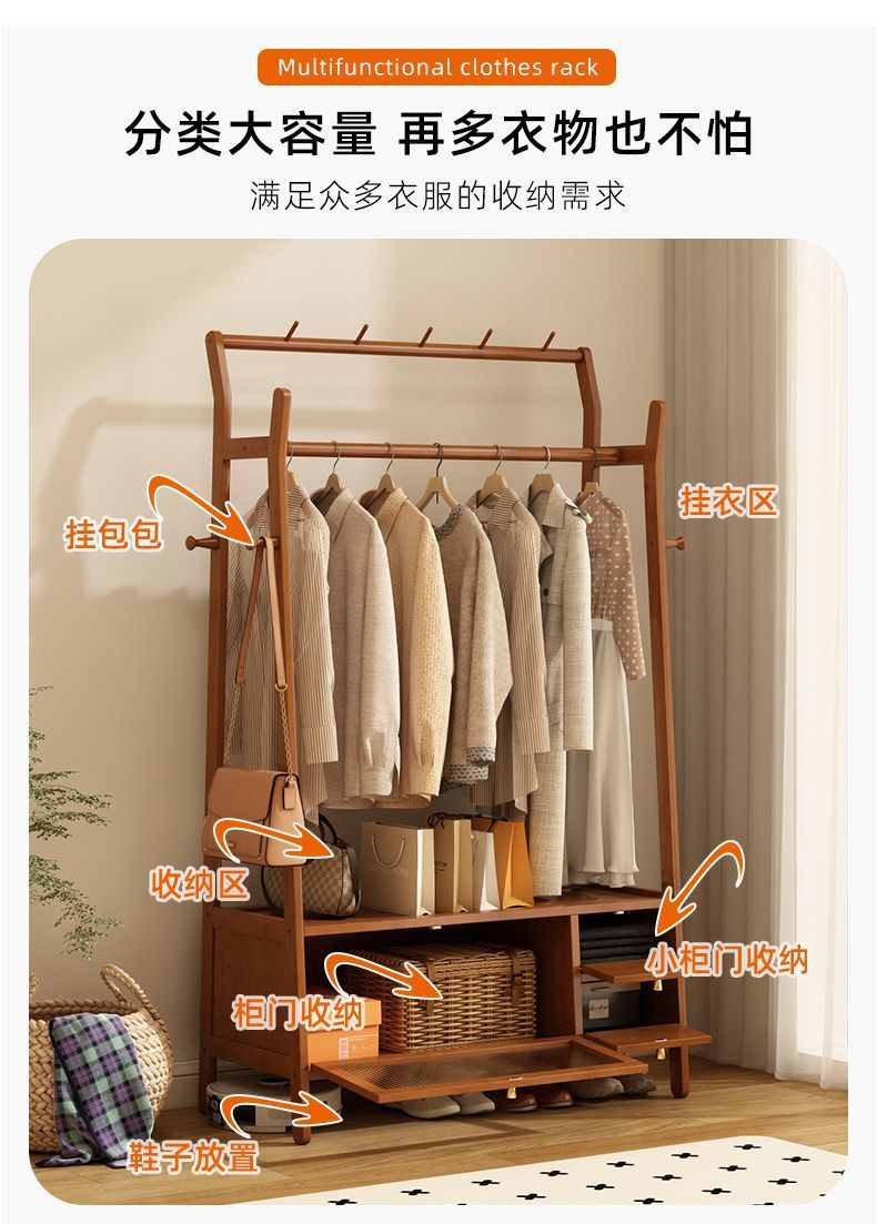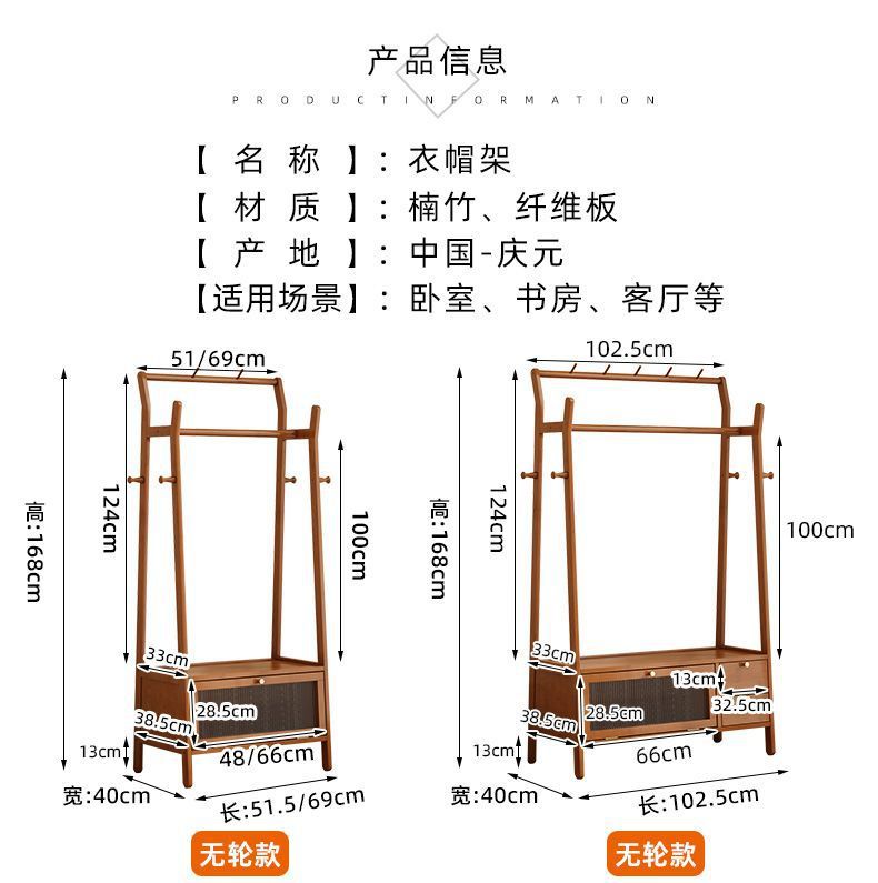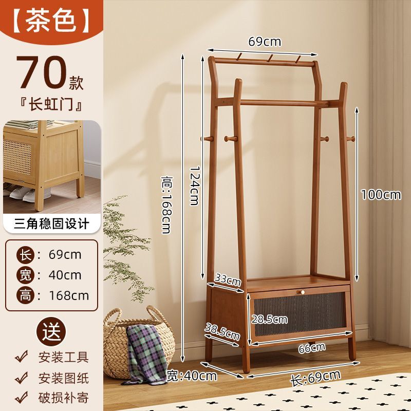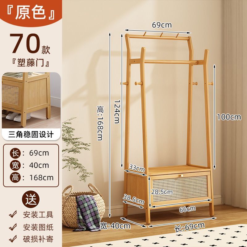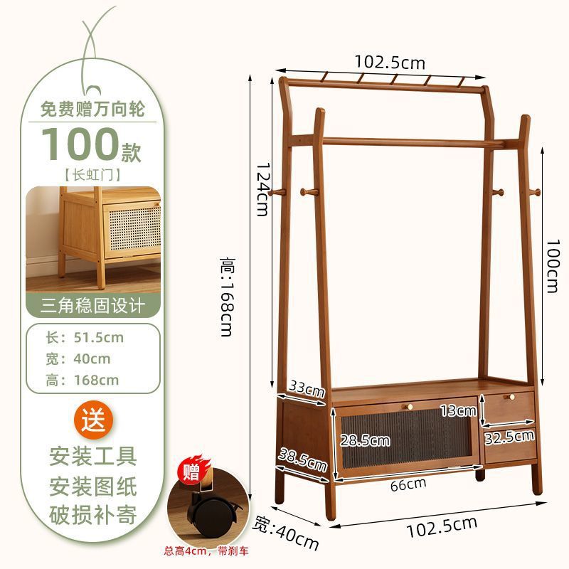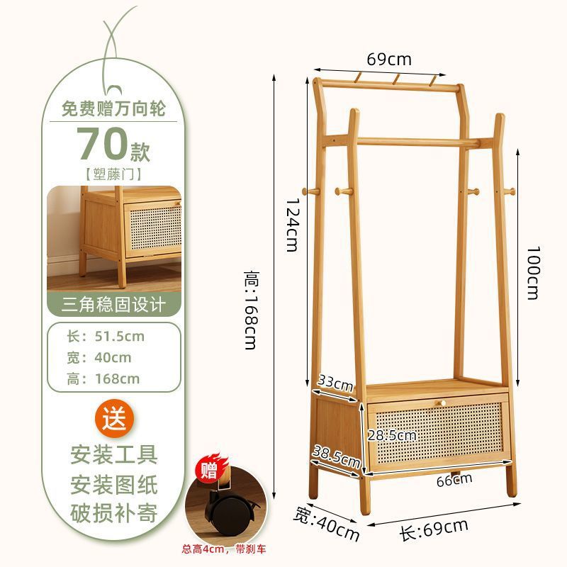 • [플로어 스탠딩 옷걸이 + 수납장] 우드 컬러 [70개 모델에는 범용 바퀴가 포함되어 있습니다]