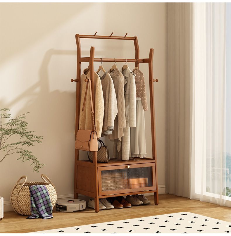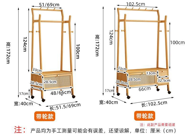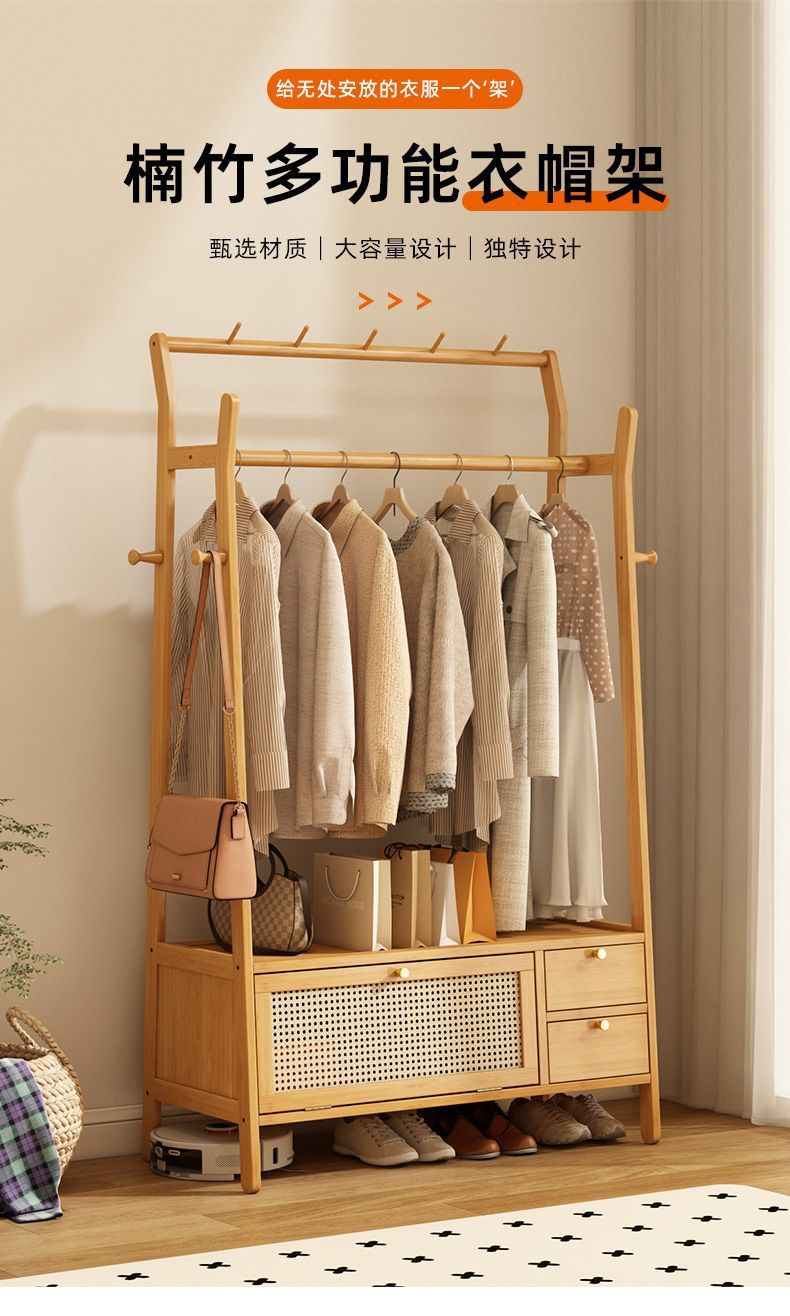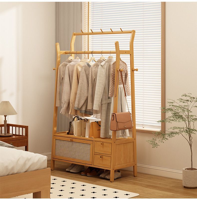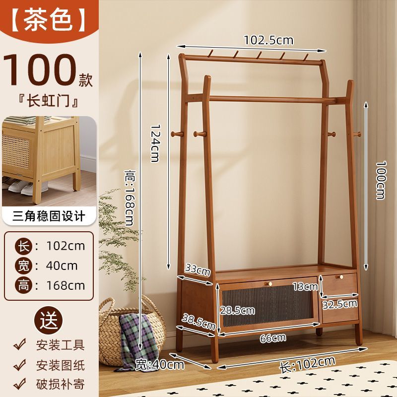 • [플로어 스탠딩 옷걸이 + 수납장] 우드 컬러 [70개 모델에는 범용 바퀴가 포함되어 있습니다]