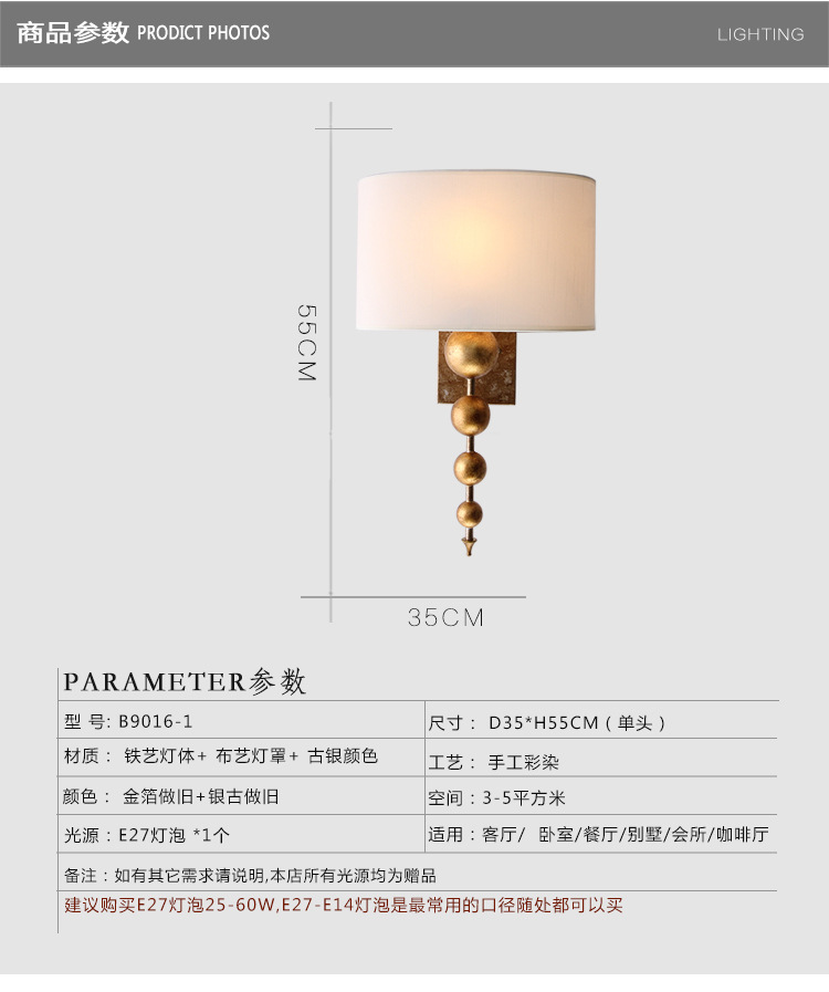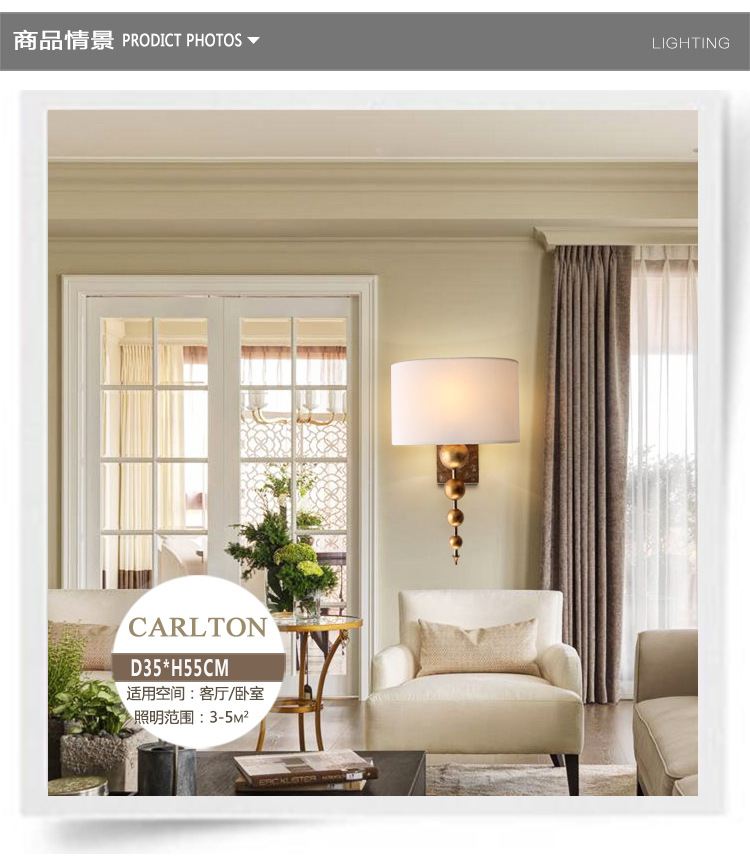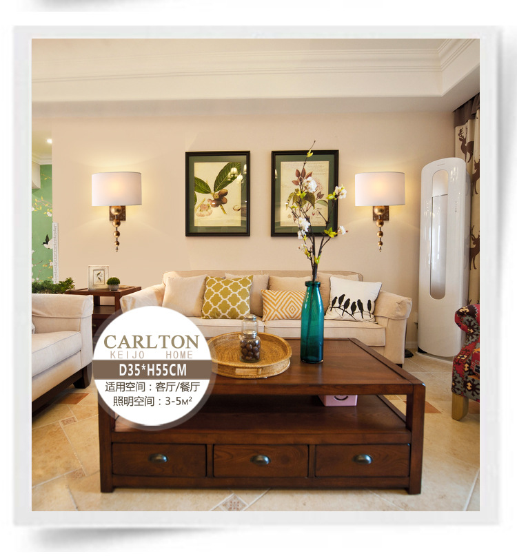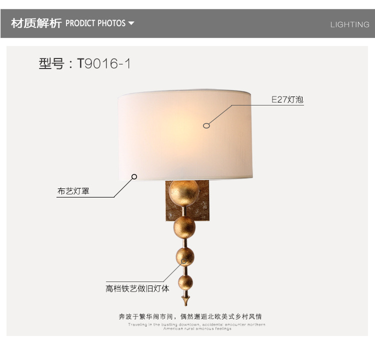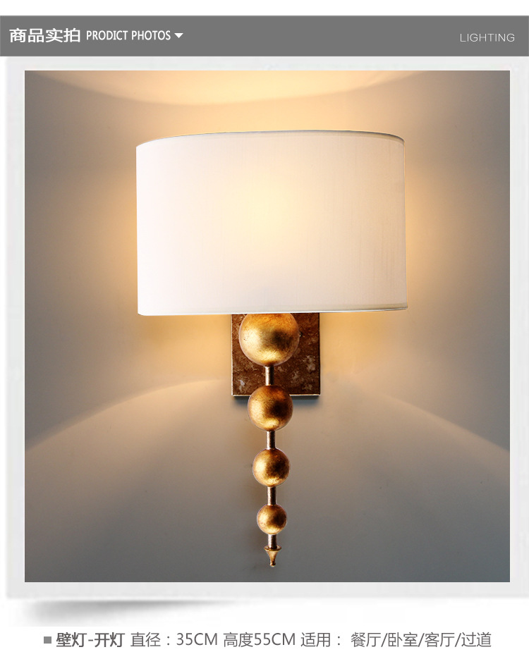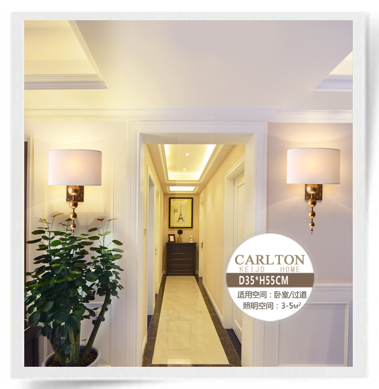 공장 도매 미국 벽 램프 침실 침대 옆 램프 간단한 통로 복고풍 연구 구리 거실 벽 램프