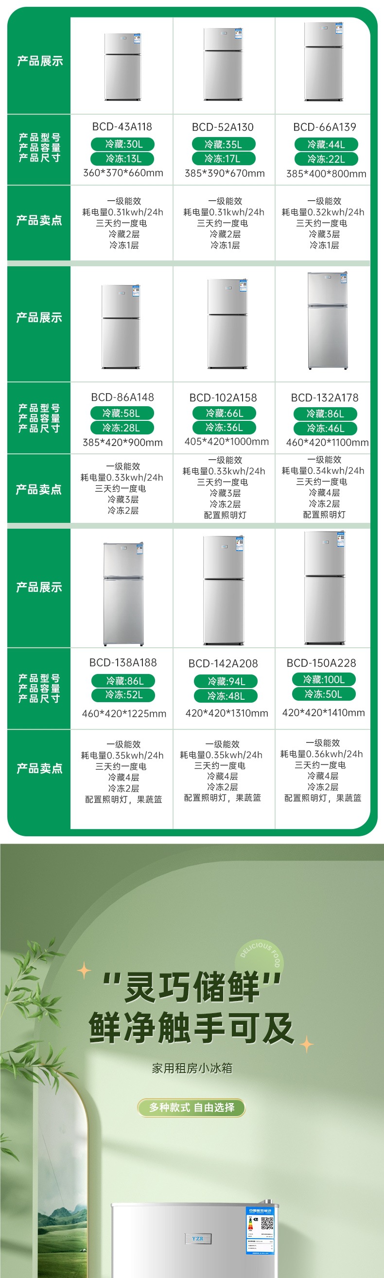 양쯔 소형 냉장고 가정용 에너지 절약형 대용량 양문형 냉장 냉동 임대 주택 1급 에너지 효율 냉장고 소형스토어 가기