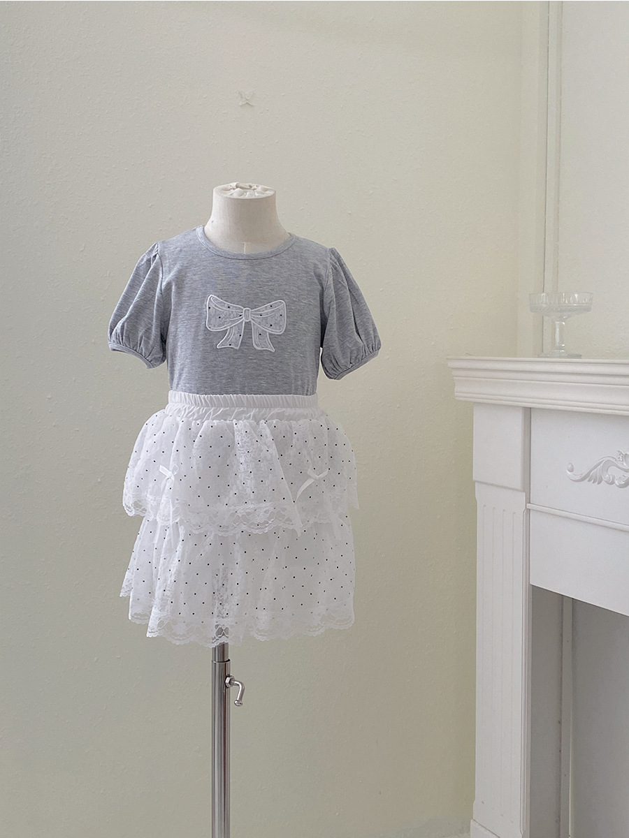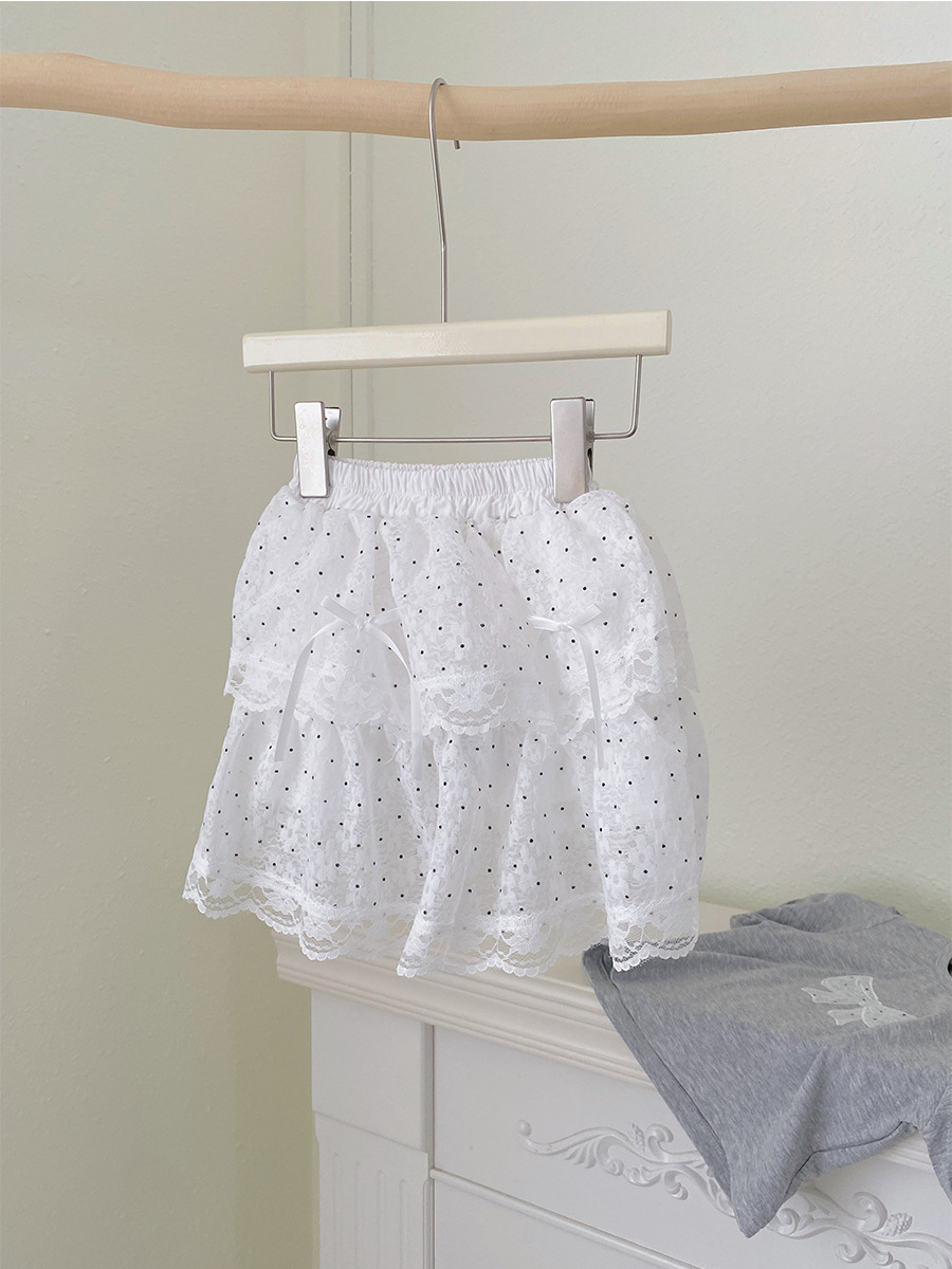 2025 새로운 여름 소녀 프랑스 복고풍 폴카 도트 스커트 레이스 스트랩 케이크 스커트 달콤한 어린이 스커트