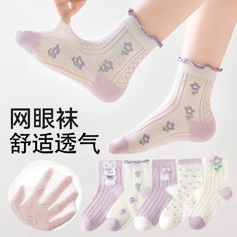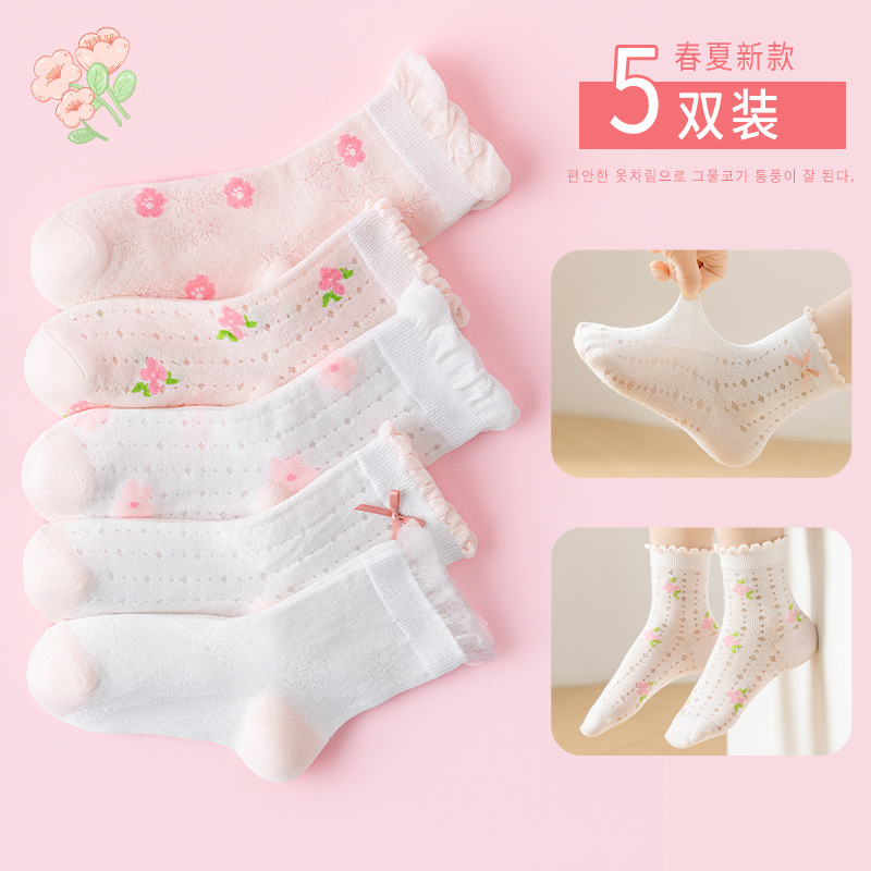 [새로운] 새로운 여름 소녀 양말 메쉬 튜브 얇은 소녀 소녀 통기성 아기 공주 레이스스토어 가기